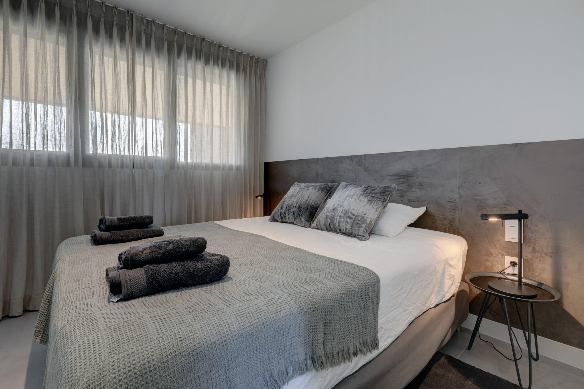 Første etasje: (Stue(TV), Kjøkken(spisebord, komfyr, kaffetrakter, mikrobølgeovn, kjøleskap med fryser), soveværelse(dobbeltseng), soveværelse(dobbeltseng), soveværelse(dobbeltseng), bad(badekar, dusj, håndvask), bad(dusj, håndvask), balkon, oppvarming, klimaanlegg) treningsrom, treningsrom(deles med andre gjester), Bubble bath(deles med andre gjester), badstue(deles med andre gjester), hage, parkering, svømmebasseng(deles med andre gjester)