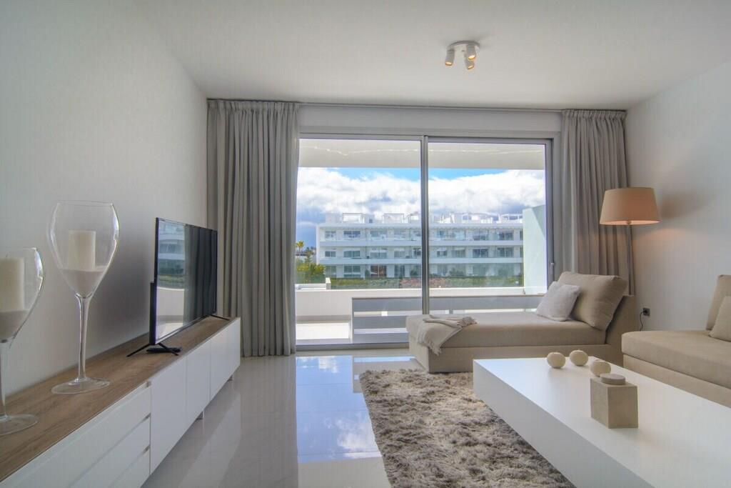 Elegantes, brandneues, geräumiges Apartment mit 4 Schlafzimmern (135m2) und Terrasse (26m2) mit Blick auf Garten und Pool, ideal für Golf-, Tennis- und Paddle-Tennis-Liebhaber. Wir begrüßen alle, die einen unvergesslichen Urlaub in Belaire neue Urbanisation mit gepflegten Gärten und ein gemeinsames Kinderbecken und Schwimmbad mit flachen und tiefen Ende (1,10 m-2,60 m) auf nur 500 Meter zu Playa el Saladillowith glatten Meer Eingang platziert wollen. ~ Innen Die Wohnung hat ein gepflegtes, elegantes Design mit Marmorfliesenböden und modernen, komfortablen Möbeln. Das geräumige Wohnzimmer hat zwei verschiedene Bereiche. Der Essbereich ist mit einem Holztisch für acht Personen und eleganten und bequemen Sesseln ausgestattet. Dieser Raum ist mit der offenen Küche verbunden, die mit eleganten Möbeln und allen notwendigen Küchengeräten ausgestattet ist. Die Sitzecke hat einen Couchtisch und bequeme Sofas, die vor einem Flachbildfernseher stehen. Dieser Bereich ist mit Teppichboden ausgelegt und bietet einen Ausgang auf die Terrasse. Das Hauptschlafzimmer verfügt über ein Doppelbett, zwei Nachttische mit Lampen und geräumige Kleiderschränke und bietet einen Ausgang zur Terrasse. Dieses Schlafzimmer verfügt über ein modernes Konzept und ein offenes Badezimmer mit Doppelwaschbecken, einer begehbaren Dusche und einer Toilette. Das zweite Schlafzimmer hat ein Doppelbett, Nachttische mit Lampen und geräumige Schränke. Das dritte und vierte Schlafzimmer haben jeweils zwei Einzelbetten, einen Nachttisch mit Lampen und große Kleiderschränke. Die drei Gästeschlafzimmer haben Zugang zu einem Familienbad mit Badewanne mit Dusche, Waschbecken und Toilette. Die Wohnung verfügt außerdem über ein Service-WC mit Spiegel und Waschbecken. ~ Terrasse Die Terrasse (26 m2) verfügt über einen Essbereich mit einem Glastisch für acht Personen und eine Sitzecke mit einem Couchtisch, einem Sofa und Sesseln. Von der Terrasse aus haben Sie einen Blick auf die brandneue Urbanisation Belaire mit ihrem gepflegten Garten und den Gemeinschaftspools. Ausstattung:Internet, TV, DVD-Player, Klimaanlage, Toaster, Backofen, Kaffeemaschine, Bügeleisen, Geschirrspüler, Vitrokeramik, Kühlschrank, Gefrierschrank, Waschmaschine. Räume:4 Schlafzimmer, 2 Bäder, 1 Service-WC, großes Wohnzimmer mit Ess- und Sitzecke, 1 Küche. Möblierung:Doppelbetten (2), Einzelbetten (4), Sofas, Terrassentisch (8), Esstisch (8). Alle Schlafzimmer haben Kleiderschränke. Sonstiges:Bettwäsche, Handtücher und 1 Tiefgaragenstellplatz inklusive. Draußen:Terrasse, Gemeinschaftspool, Gemeinschaftsgarten, Tiefgarage, Parkplatz auf der Straße.