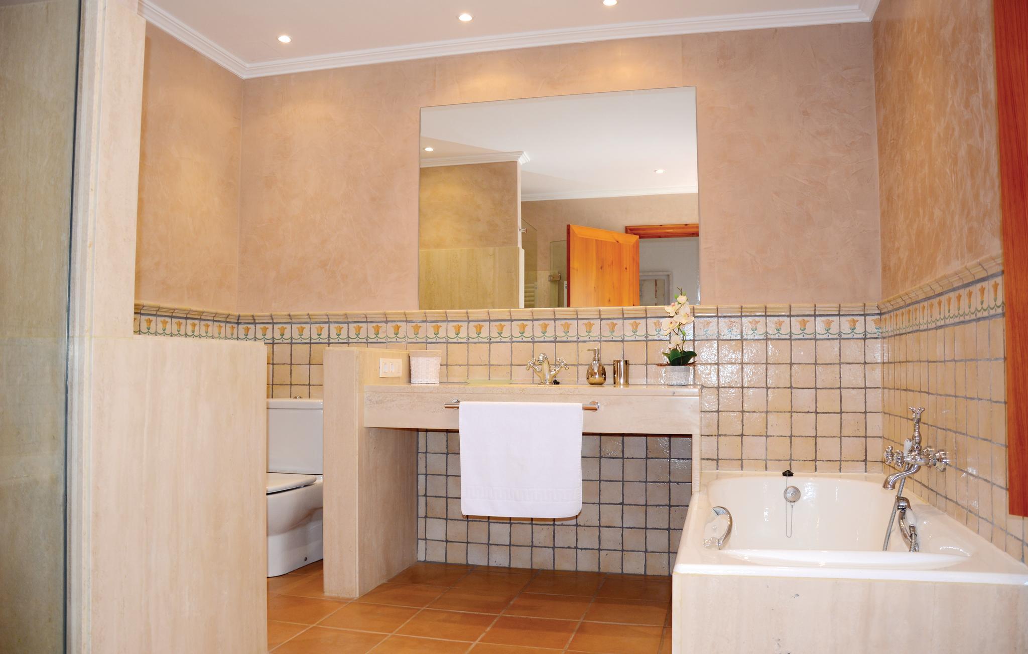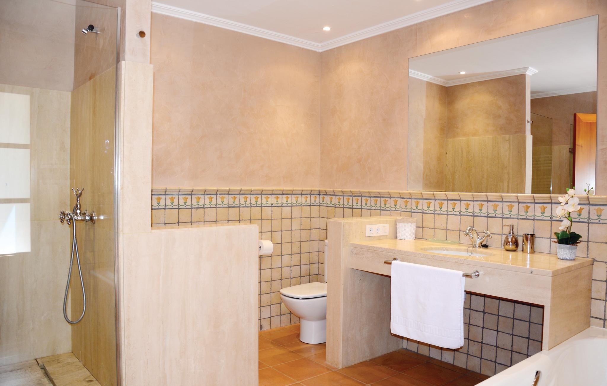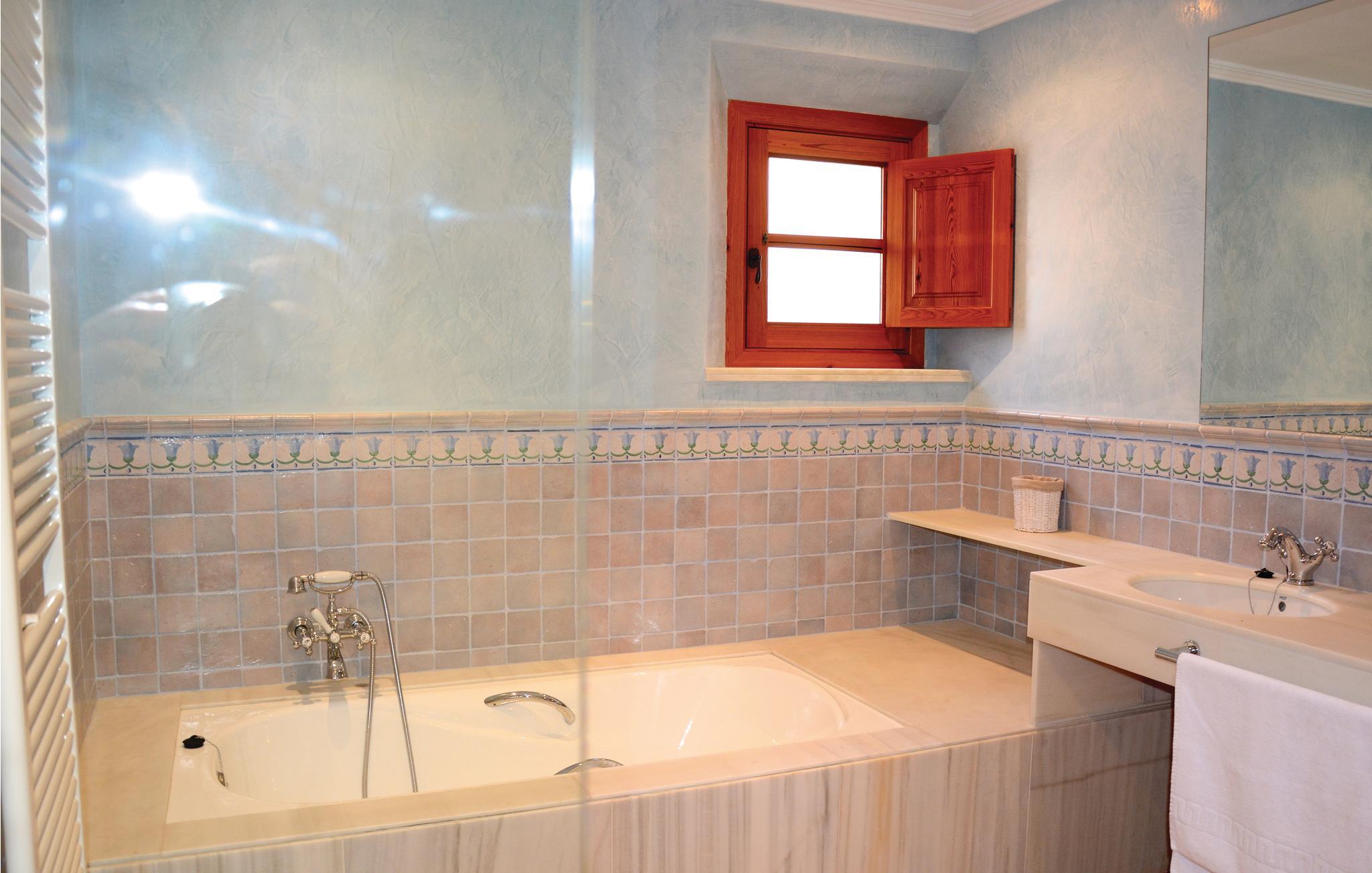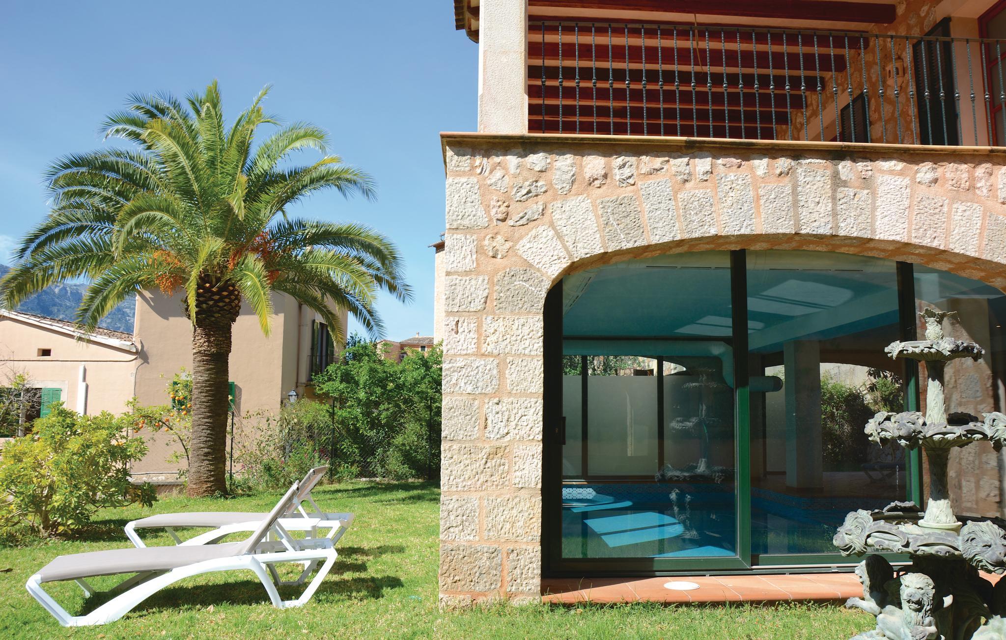 Du bor i 3 elegante etasjer som er forbundet med heis. I nederste etasje finner du et soverom, innendørsbassenget og hagen med en velstelt plen. De store skyvedørene til bassenget kan åpnes. Innendørsbassenget er oppvarmet til 28 grader året rundt, og kostnaden er inkludert. Alle de 4 romslige soverommene har eget bad. Ytterligere et praktisk bad med separat dusj og WC ligger i første etasje ved bassenget. Peisen er kun dekorativ. Elektrisitet er inkludert. Grupper (unntatt familier og par over 30 år) på forespørsel og mot særskilt depositum. Lisensnummer: 16760/2015