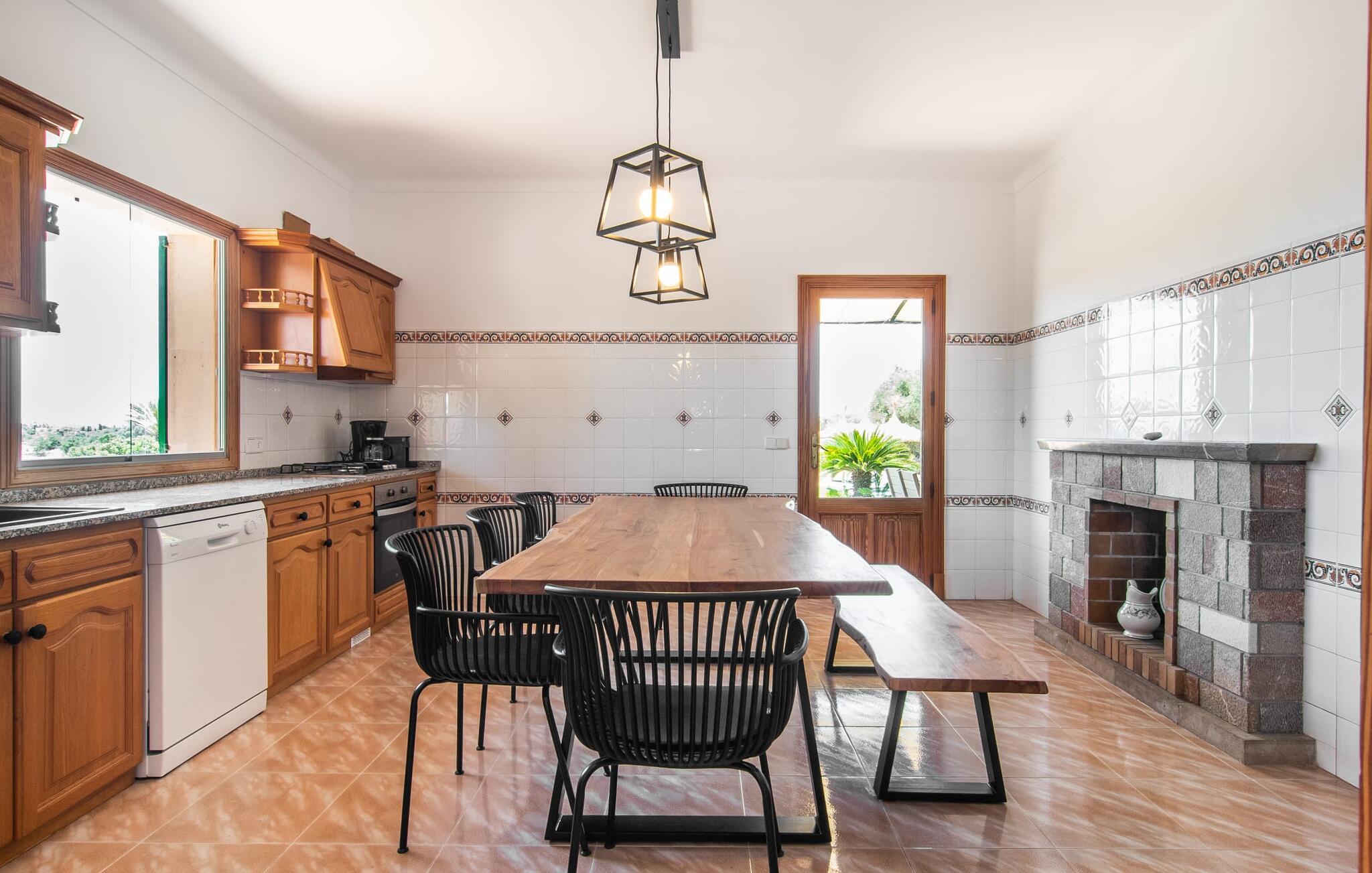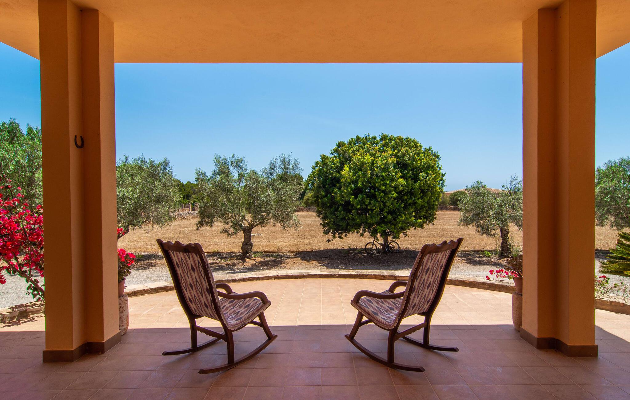 Hvis du setter pris på nesten uberørt og mangfoldig natur, men ikke vil gå glipp av en strandferie, er den familievennlige bondegården Hort de Can Rafalet det rette stedet for deg. På eiendommen, som er omgitt av middelhavsflora, vil du oppleve absolutt ro. Her er det grønt så langt øyet kan se, med de imponerende saltmarkene og megastranden Es Trenc ikke langt unna. Ferieboligen har rikelig med uteplass, blant annet et flott mosaikkbelagt basseng med tilstøtende solterrasse. Her er det ingen naboer som kan forstyrre deg, og du er helt uten innsyn. Nyt kvelden på terrassen i skyggen av Toldo med en romslig spiseplass. Enten du står opp tidlig eller sent, inviterer den runde, delvis overbygde verandaen foran huset med tradisjonelle gyngestoler deg til å nyte det koselige og innbydende feriehuset sør på Mallorca i fulle drag og la blikket vandre.