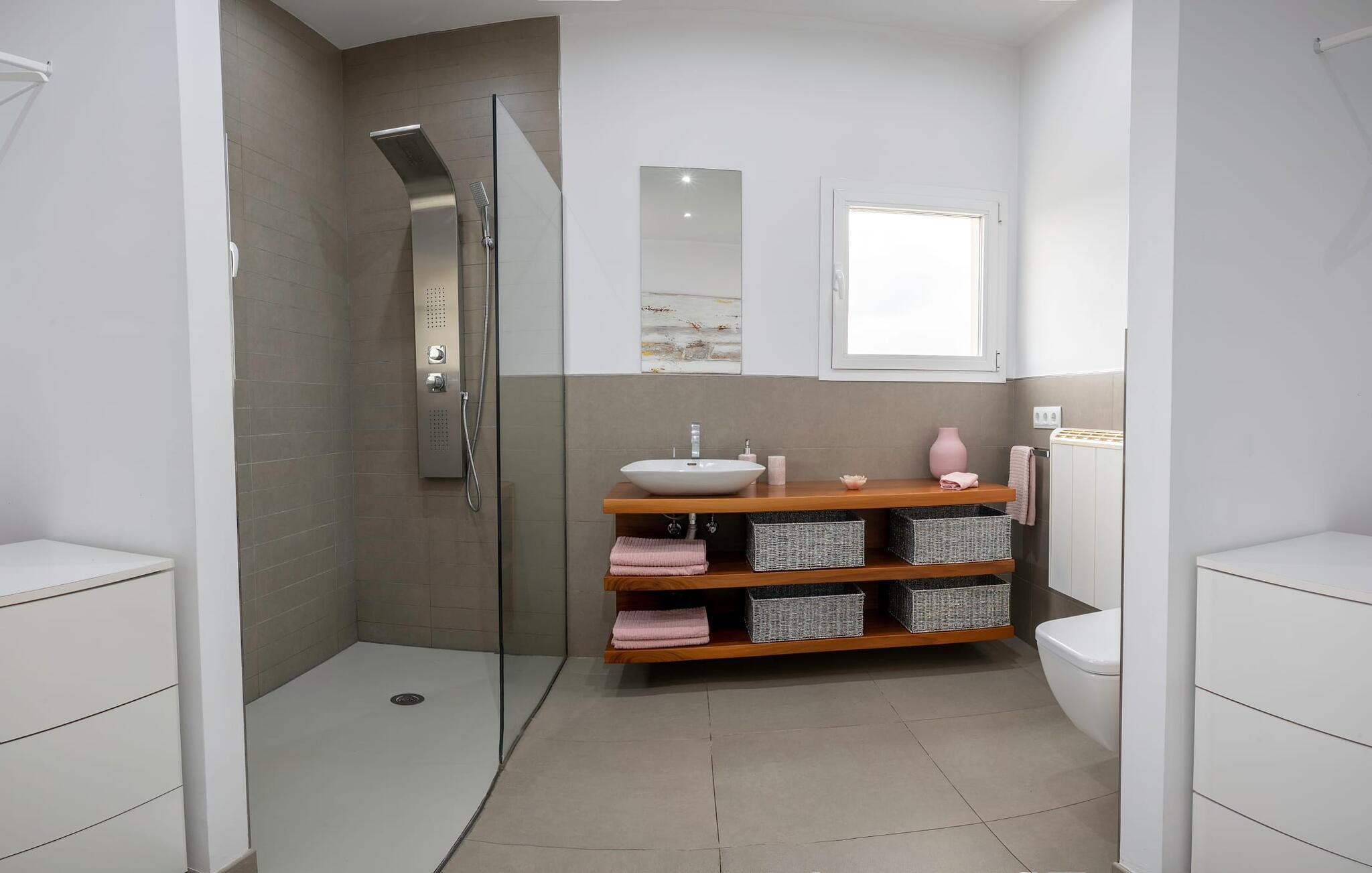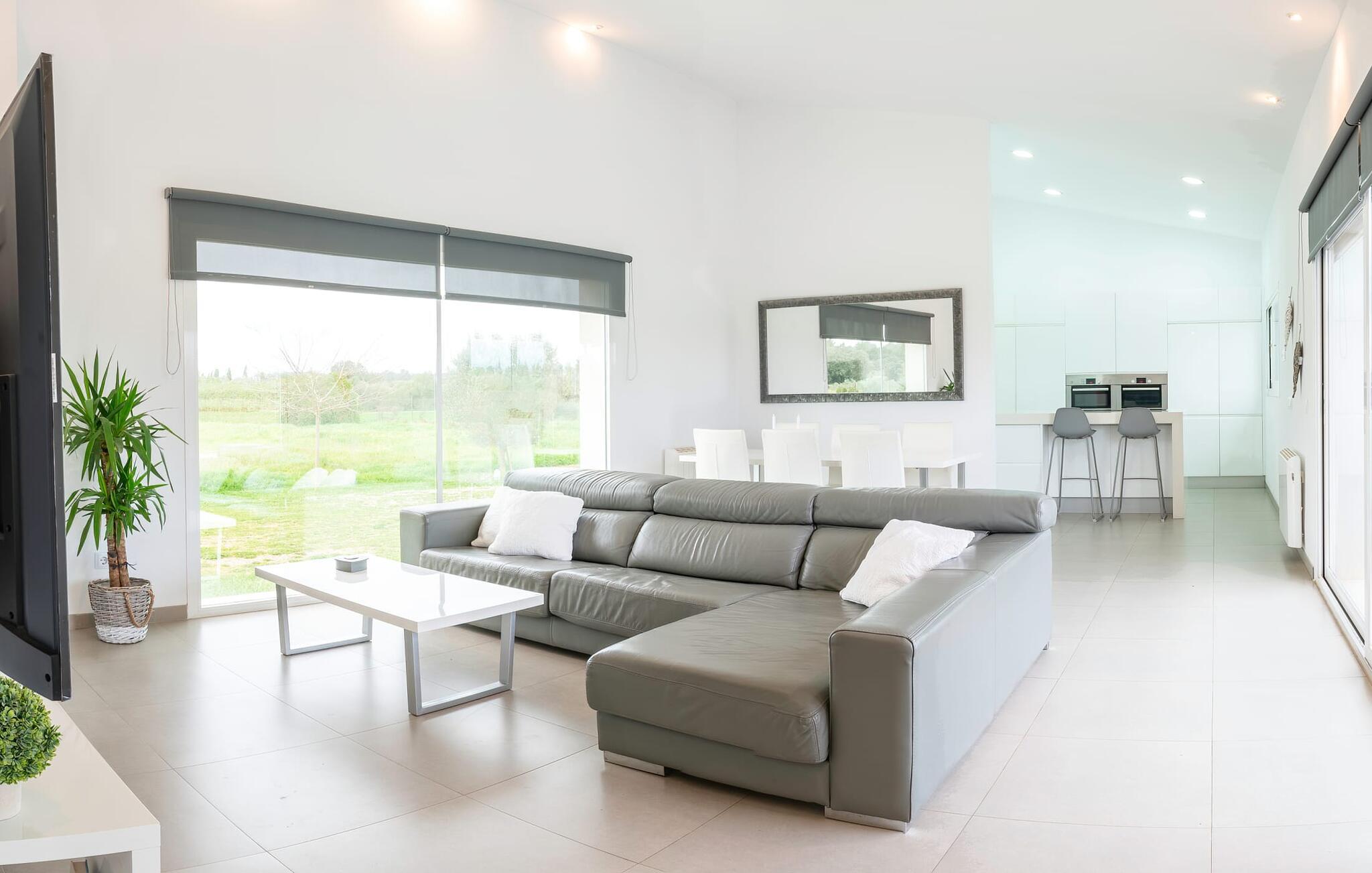 Takket være beliggenheten midt på øya er det et perfekt utgangspunkt for en rekke utflukter i området rundt og utenfor. I Sencelles arrangeres det hver onsdag formiddag et bondens marked på Placa Nova, der du kan kjøpe ferske lokale råvarer og komme i kontakt med den mallorkinske livsstilen. Inca (ca. 7 km unna), den tredje største byen på øya, byr også på shoppingmuligheter i den livlige gågaten. I nordøst tiltrekker den varierte kystregionen rundt Alcúdiabukten seg besøkende med sine mange vakre strender. Mot sør kan du beundre fasilitetene og tilbudene på bystrendene i nærheten av Palma. Turgåere finner mange vakre stier i de nærliggende Tramuntanafjellene. Den lyse og moderne Villa Integra ligger bare 4 km nordøst for den rolige landsbyen Sencelles, og er et ideelt utgangspunkt for å utforske Mallorcas mange fasetter. I landsbyen kan du gjøre dine daglige innkjøp, og bondemarkedet på Placa Nova med sine ferske råvarer er spesielt fristende. Det er bare rundt 30 minutter til øyas hovedstad Palma, der du har mange shoppingmuligheter. Den samme avstanden tar deg til sandstrendene på sør- og nordkysten av øya.