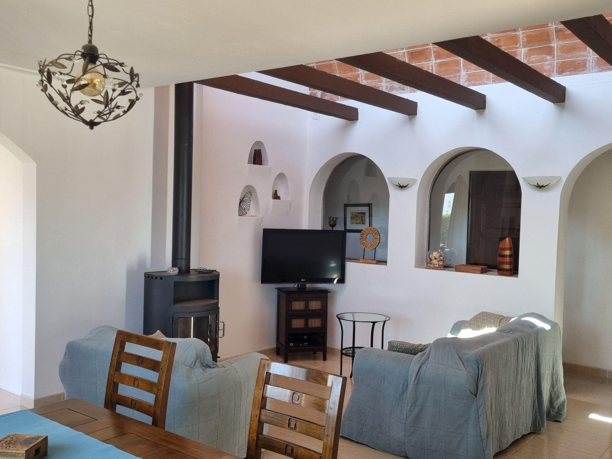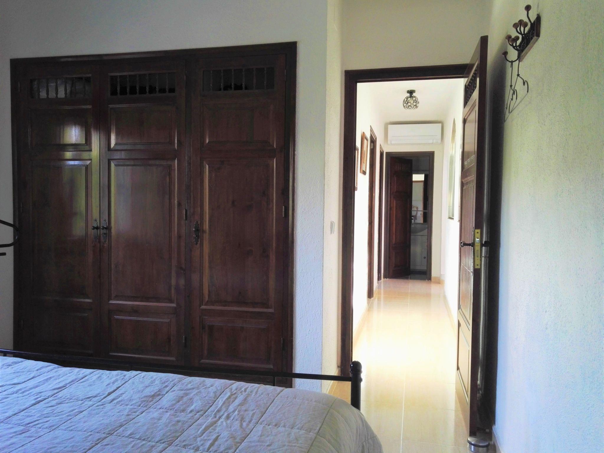 The house consists of a large living/dining room with direct access to the kitchen and exit to the main terrace, three north-facing double bedrooms with fitted wardrobes, a bathroom with WC and bathtub, a bathroom with WC and shower and a garage, which is used as a storage room. The extensively equipped kitchen leaves nothing to be desired and has a ceramic hob with oven, fridge with large freezer compartment, dishwasher, microwave, coffee machine, Senseo coffee machine, milk frother, kettle, toaster, blender, etc. There is air conditioning in the living area and in the hallway to the bedrooms. A wood-burning stove and electric heaters are available for the colder months of the year. For entertainment, we have provided free Wi-Fi, a TV and a Bluetooth box. A high chair and a travel cot can be used for small children. In the spacious former garage room there is a washing machine, tumble dryer, iron and a further fridge, as well as a practical wardrobe with shoe rack to keep the living areas tidy. There is also a charging station for electric cars, which is connected to our solar system and can be used by prior arrangement with us (please note: additional costs are charged according to consumption, you must bring your own type 2 charging cable).