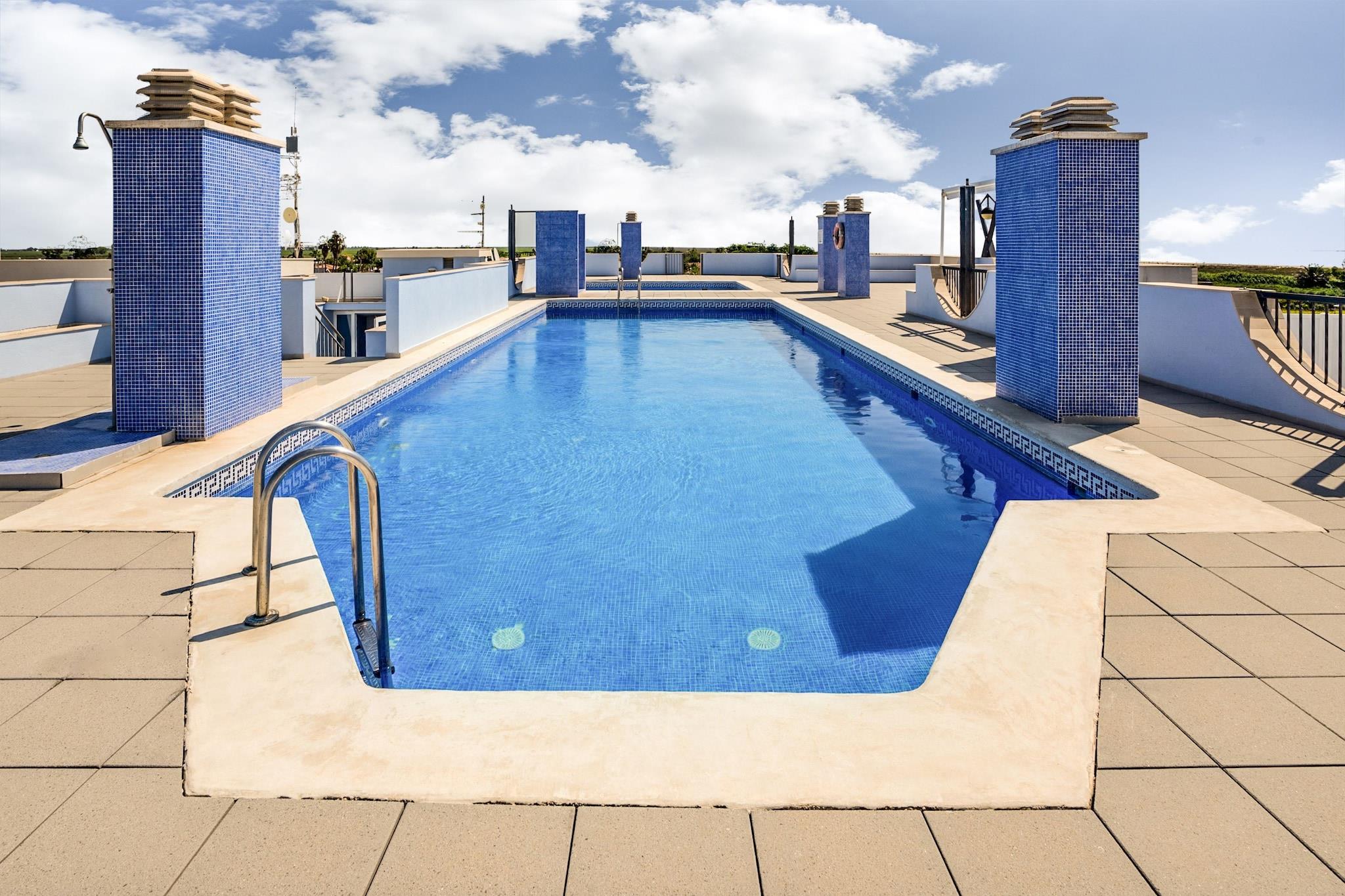 Denne komfortable leiligheten med felles svømmebasseng ligger i den mindre turistlige urbaniseringen LEucaliptus, midt i et naturreservat ca. 8 km fra Amposta. Du kan nyte et rolig kystområde på stranden, med havet bare 100 meter unna. Leiligheten ligger i første etasje (heis) av et nybygd leilighetskompleks (2008). Den delte takterrassen har en vakker utsikt over området og vannet. Gjestene kan gjøre ubegrenset bruk av felles svømmebasseng og solterrasse på taket (tilgjengelig via en trapp). Området rundt ferieboligen er ideelt for fotturer og naturelskere. Delta del Ebro nasjonalpark ligger i nærheten, hvor du kan fiske og kano. Els Muntells ligger 3 km unna, med ulike butikker, små barer og restauranter. Bare ca 10 km fra leiligheten finner du stranden og fiskerlandsbyen St. Carles de la Ràpita med sin vakre havn.