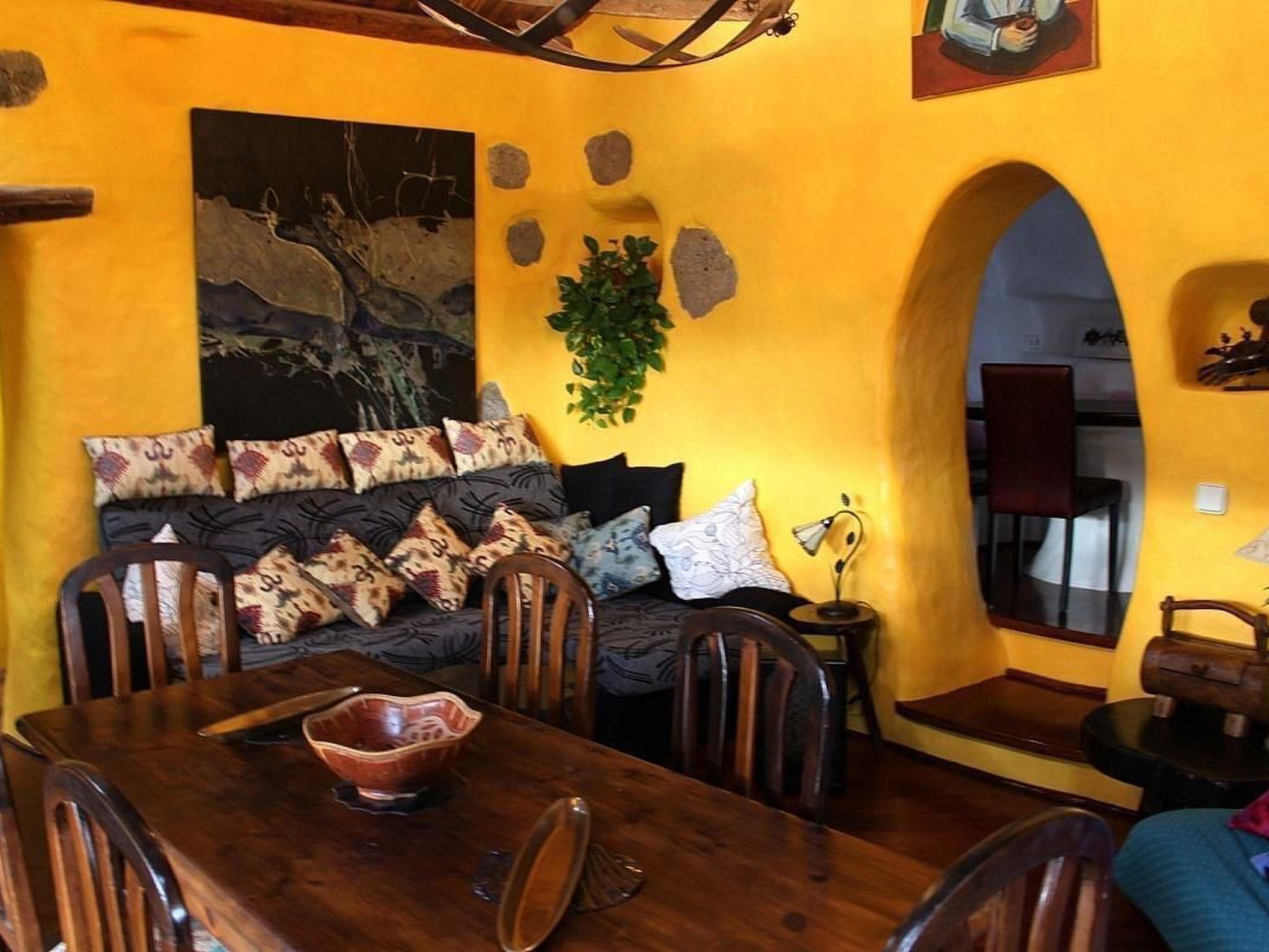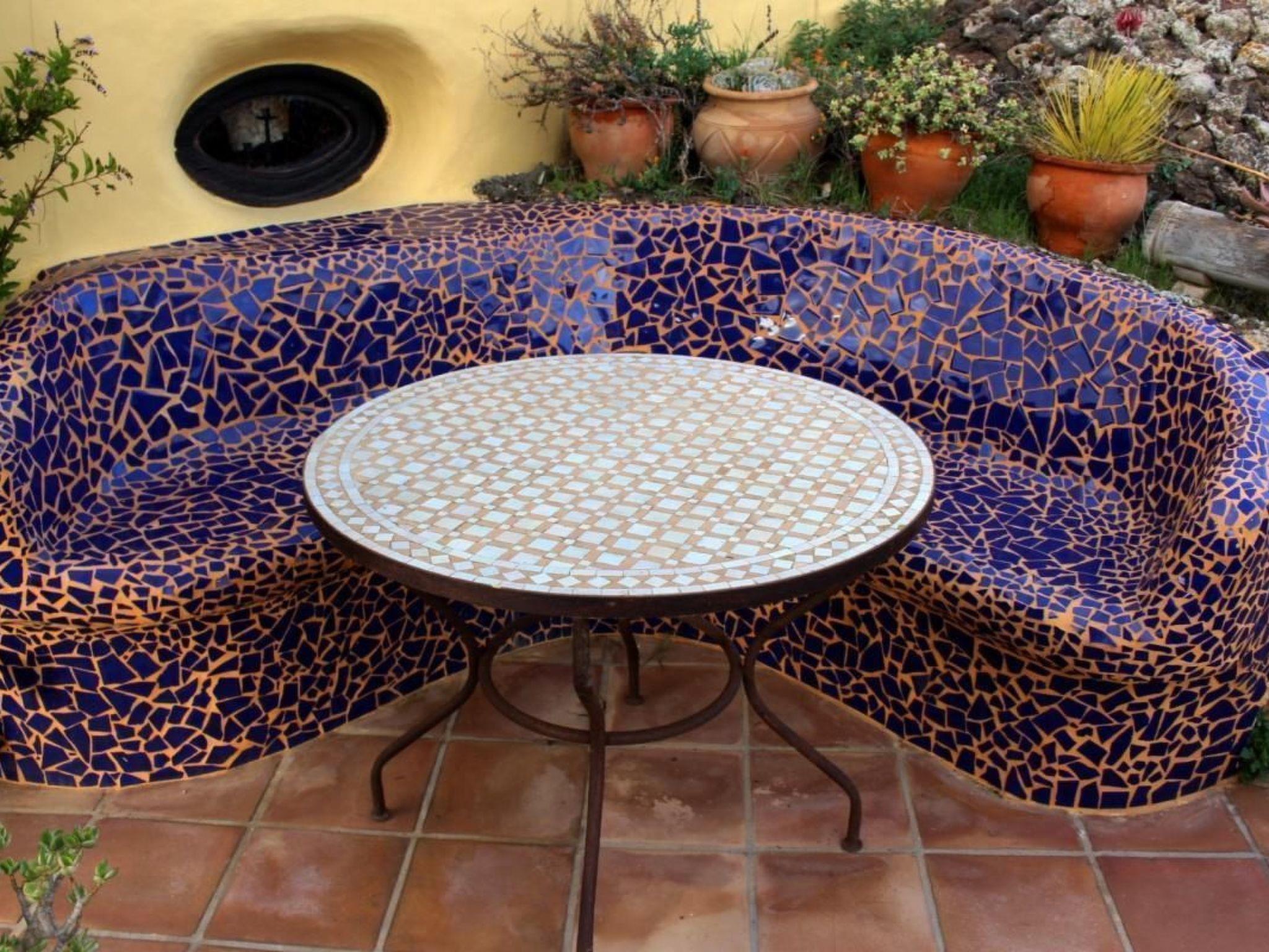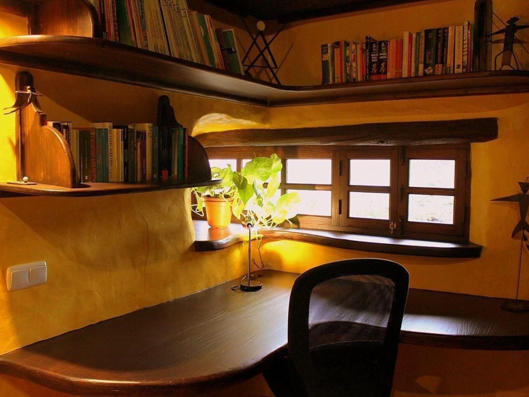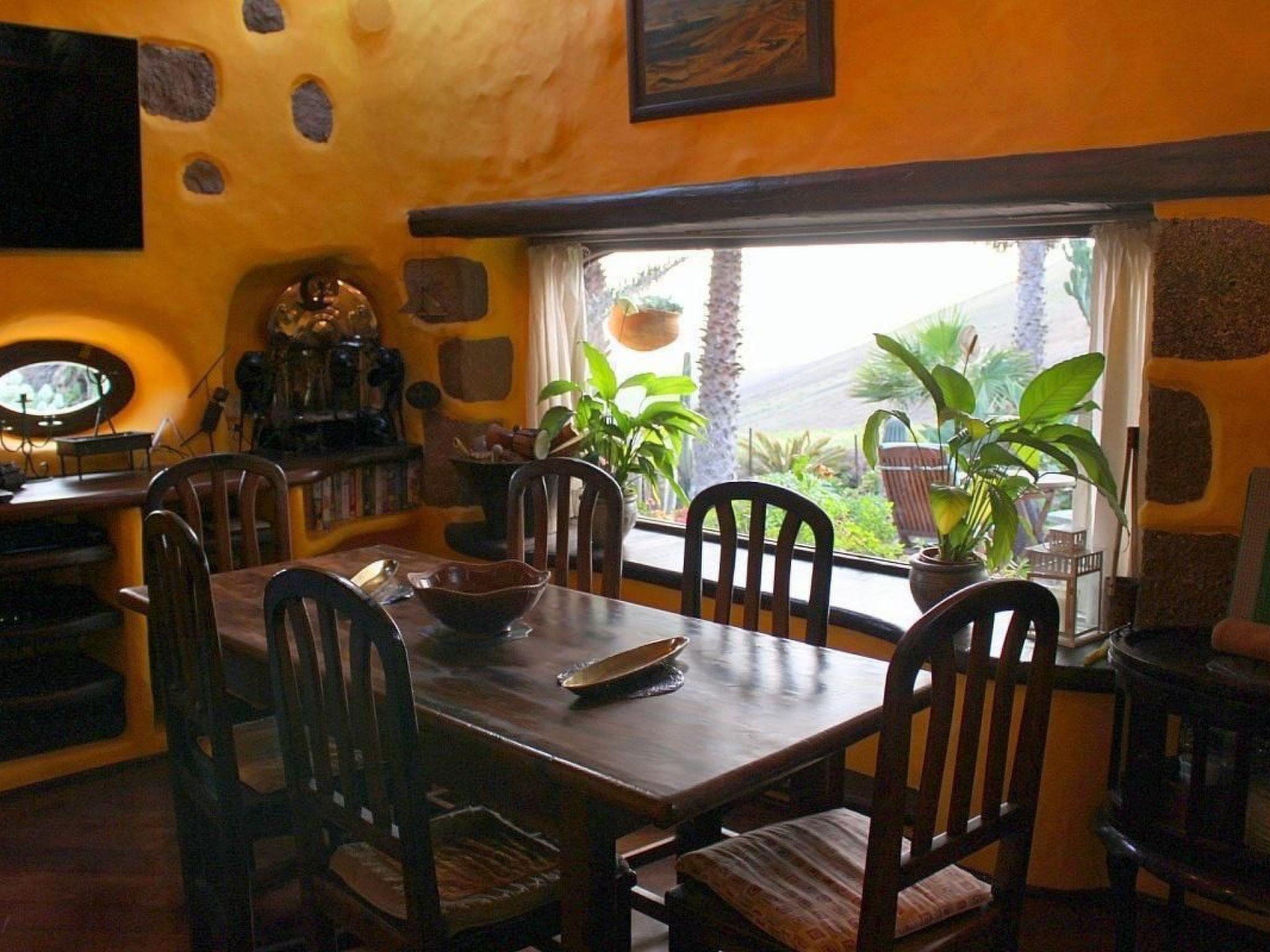 This is the 160m² main house of the finca, which was completely renovated in 2014. The house has a total of three bedrooms, two of which have their own bathroom (en suite). One of the bathrooms is equipped with a bathtub. The dimensions of the beds are as follows: one double bed (2.00m x 2.00m), the other double beds are 1.50m and 1.60m wide and each 2.00m long. The central point of the house is the large lounge (living area) with a cosy sofa, a flat-screen TV hanging on the wall and the adjoining dining room. The fully equipped kitchen with ceramic hob, oven, dishwasher and a further lounge with adjoining study or playroom round off the interior. The washing machine is located in the wash house and is for communal use.