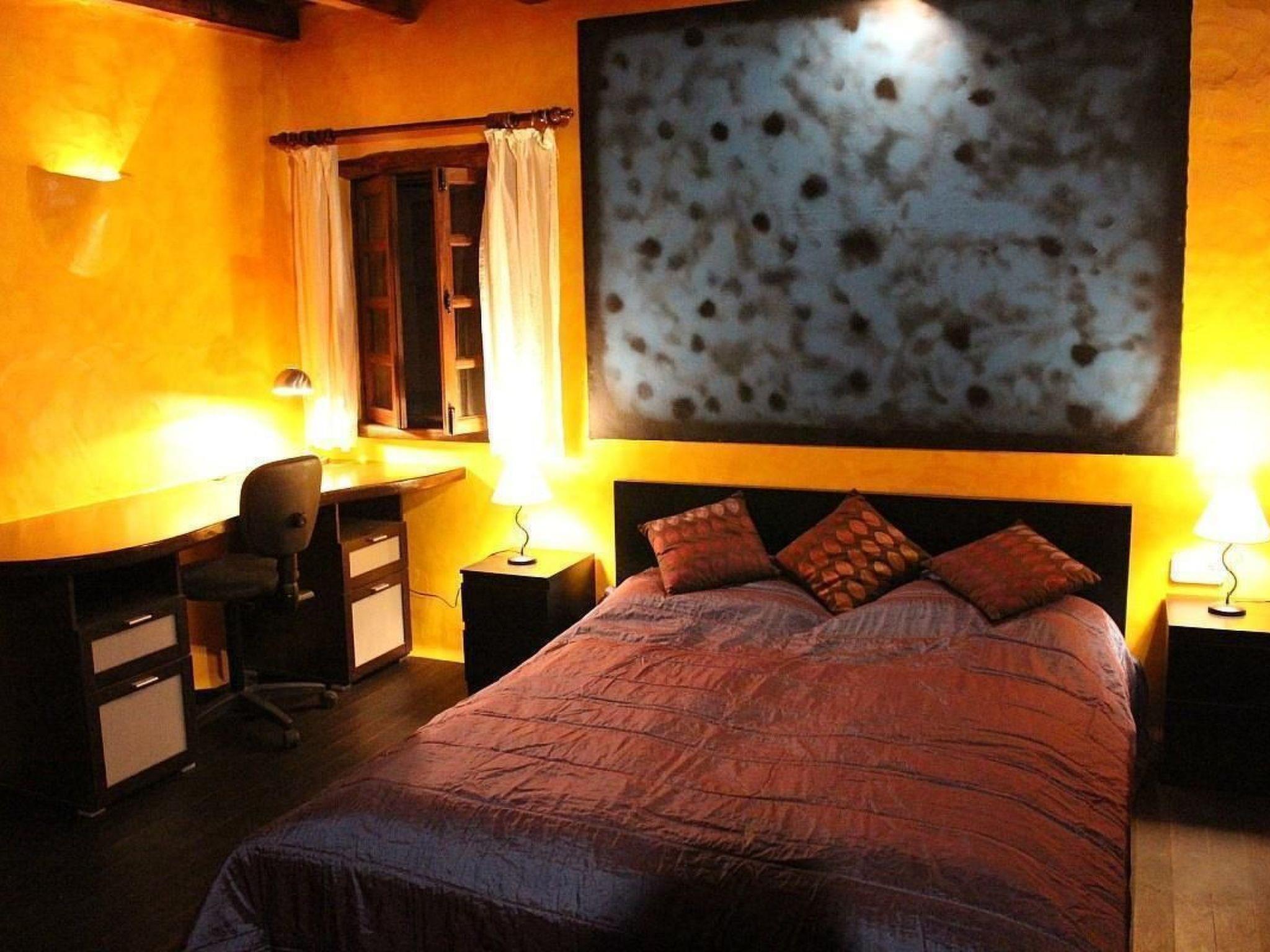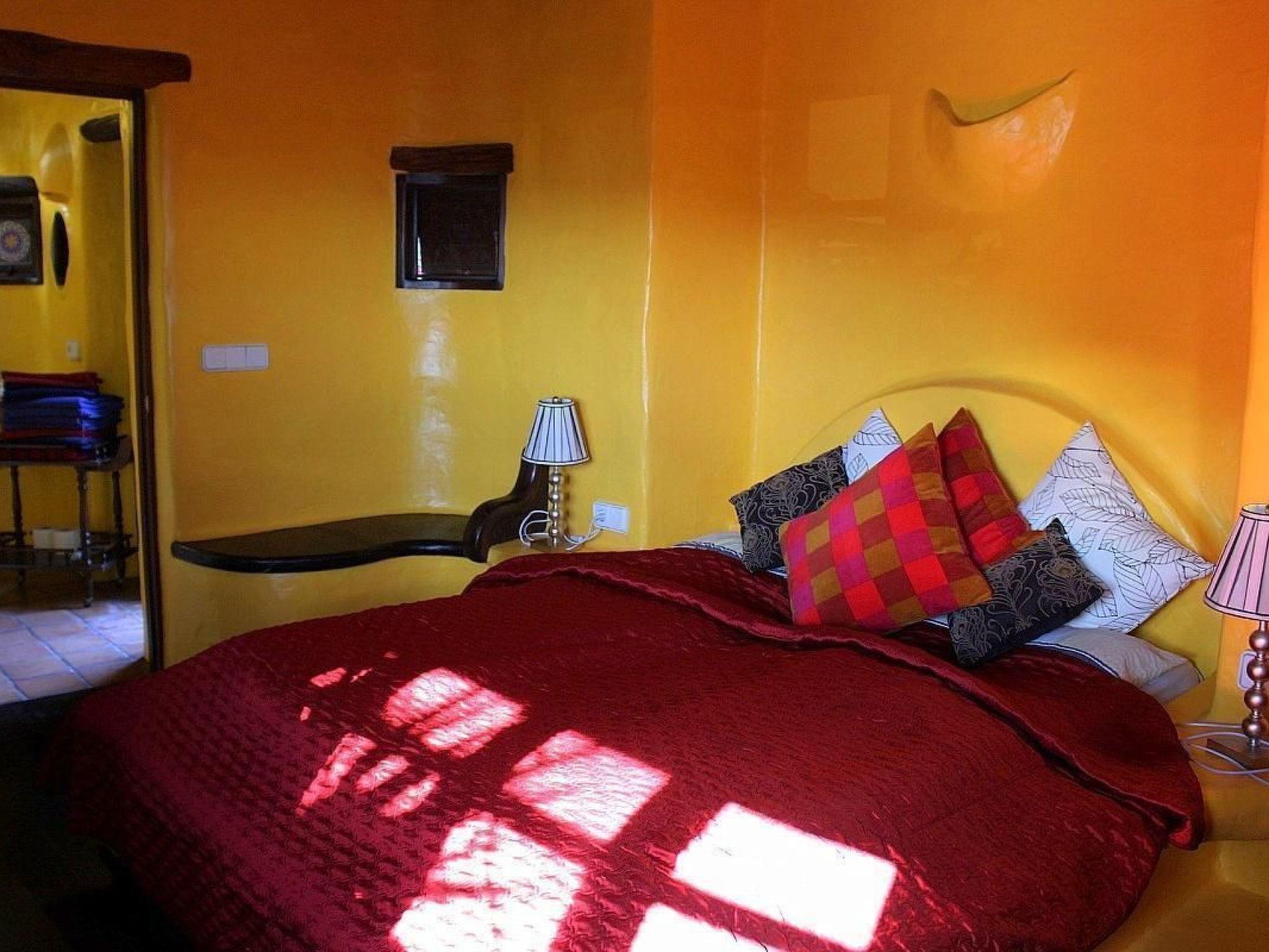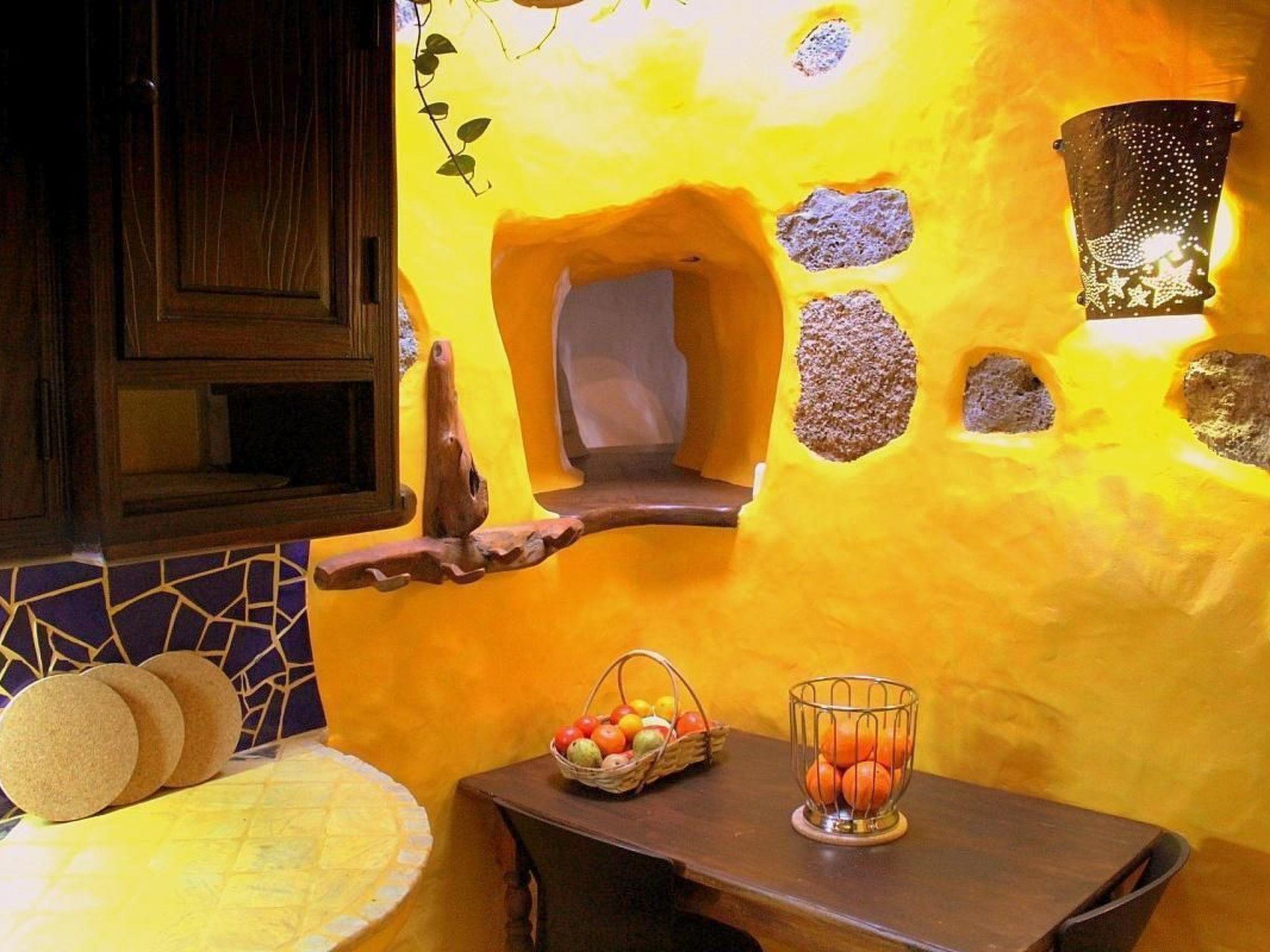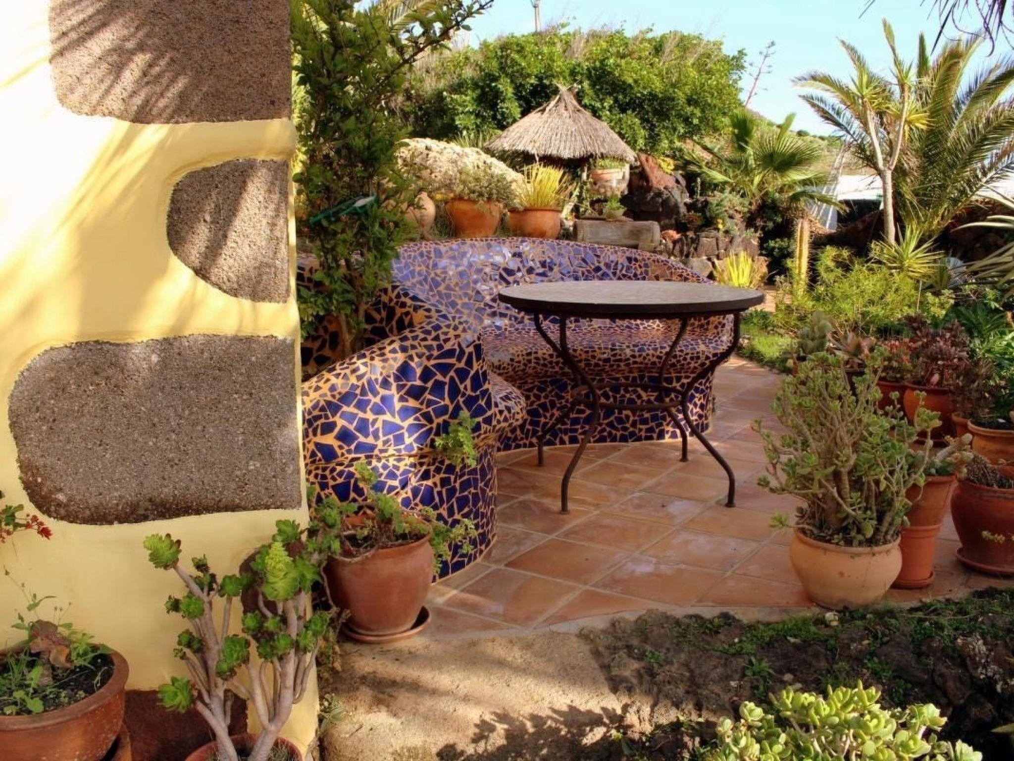 This is the 160m² main house of the finca, which was completely renovated in 2014. The house has a total of three bedrooms, two of which have their own bathroom (en suite). One of the bathrooms is equipped with a bathtub. The dimensions of the beds are as follows: one double bed (2.00m x 2.00m), the other double beds are 1.50m and 1.60m wide and each 2.00m long. The central point of the house is the large lounge (living area) with a cosy sofa, a flat-screen TV hanging on the wall and the adjoining dining room. The fully equipped kitchen with ceramic hob, oven, dishwasher and a further lounge with adjoining study or playroom round off the interior. The washing machine is located in the wash house and is for communal use.