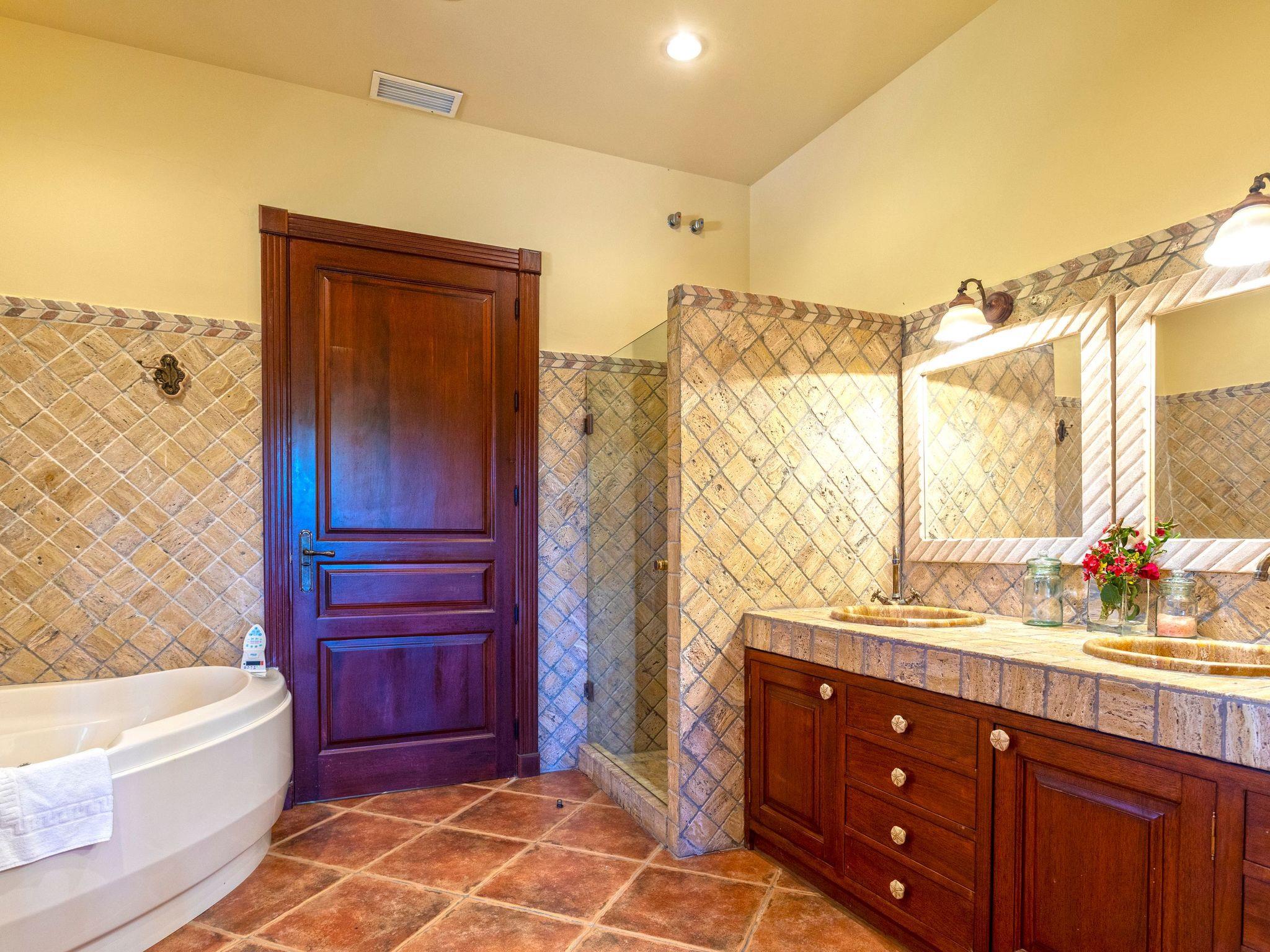 The exterior of the house is equally impressive, with a large lawned area next to a private outdoor swimming pool where you can enjoy the sun on the sun loungers under the umbrellas. The barbecue area and outdoor tables invite you to enjoy alfresco meals, while the large porch is the ideal place to relax, with beautiful views of the garden and creating the perfect atmosphere to enjoy the surroundings.