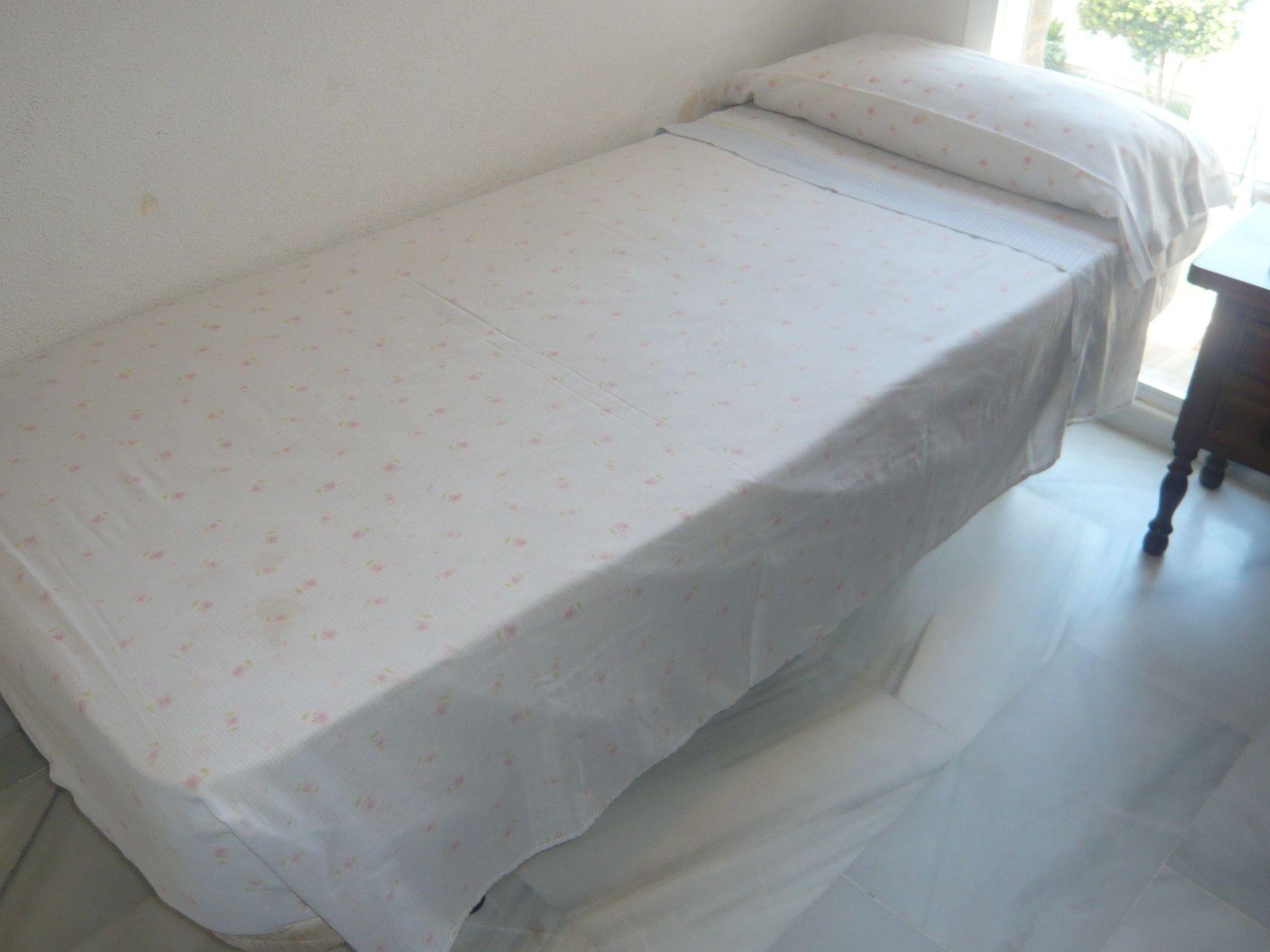 Flat no. 42, DIRECTLY on the BEACH !!! 100% sea view !!! DIRECTLY on the BEACH !!! 100% sea view !!! Sea noise included !!! APARTMENT in absolutely quiet DREAM LOCATION, away from any traffic, but centrally located, pools, tennis, sunbathing lawns, kilometre-long sandy beach right on the doorstep, approx. 10 metres away complete infrastructure, simply everything available. NOT A HIGH-RISE FLAT!!! SEA VIEW from the flat and from the terrace! Beach flat fully furnished and well maintained, 1 terrace approx. 12 m² off the living room, with seating, table and parasol 1 kitchen, large fridge with freezer, Zerrann hob, oven, dishwasher microwave, toaster, electric coffee machine and " espresso" Spanish, kettle, hand blender 1 bedroom with two beds 2.00m x 0.90m for 2-pers. 1 bedroom with one bed 1,90m x 0,80m for 1-pers. 1 sofa convertible to bunk bed for 2-pers. 1 living room with sofa bed (2)-pers. 1 TV, 1 radio, 1 alarm clock (on request) 1 bathroom with washbasin, toilet, shower, small hairdryer on request. Radiant heater above the door, washing machine, clothes horse & laundry basket, . Ironing board & simple iron (on request), mop with bucket and broom with shovel 1 SAFE in the parents' bedroom. In winter with electric radiators in the living room & master bedroom, as well as in the children's room.