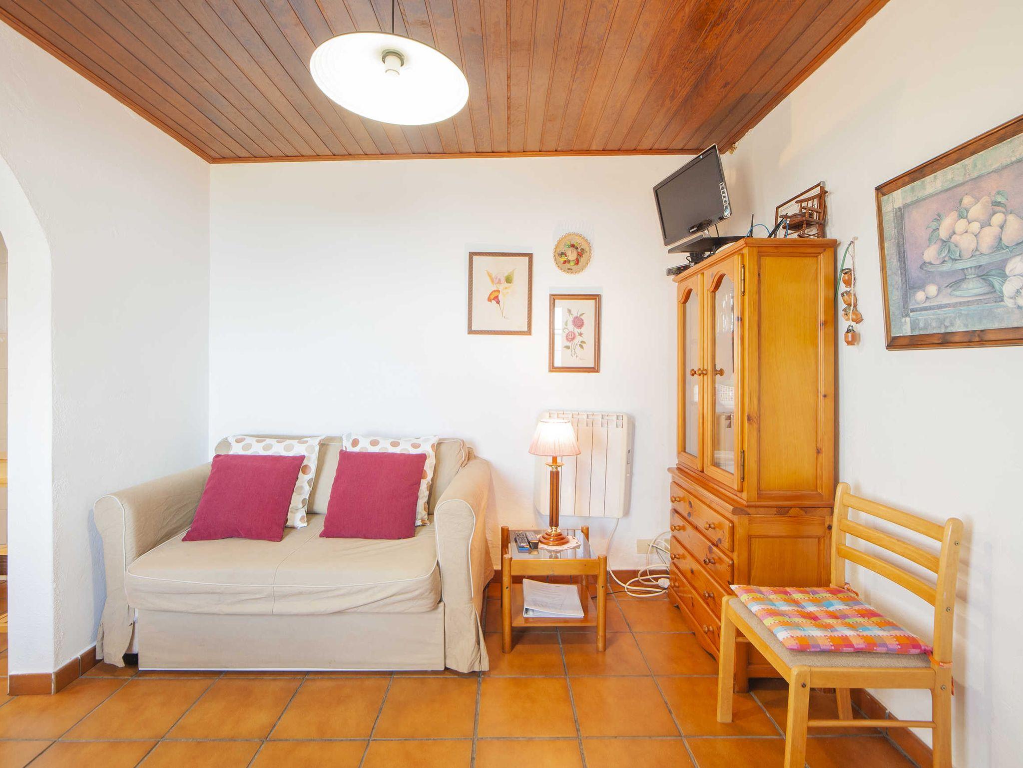 Der kombinierte Wohn-/Essbereich ist mit der Küche durch einen großen Bogen verbunden. Der Esstisch mit 4 Stühlen steht direkt am Fenster mit Blick ins Grüne. Das kleine Sofa kann als Schlafcouch genutzt werden. Ein Fernseher mit Flachbildschirm, Radio, CD und MP3 stehen zur Verfügung.