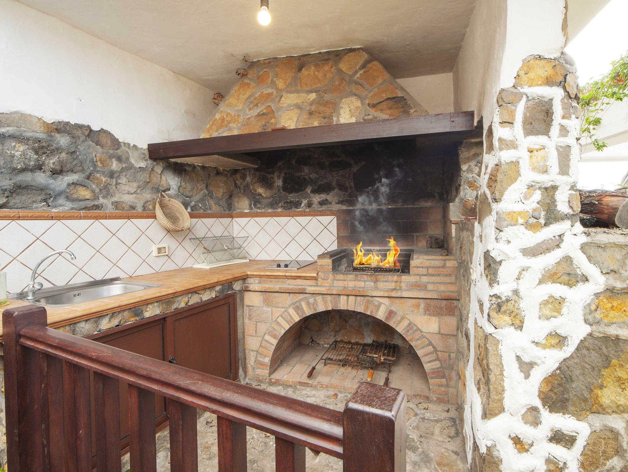 Im Außenbereich befindet sich ein großer Grill mit zwei Cerankochfeldern und Aussenspüle. Ein paar Treppen führen von dort zu einer in einer offenen Höhle gelegenen Bodega. Auch im Sommer herrscht hier ein angenehmes Klima. Wunderschöne Farne geben diesem sehr beliebten Ort Leben.