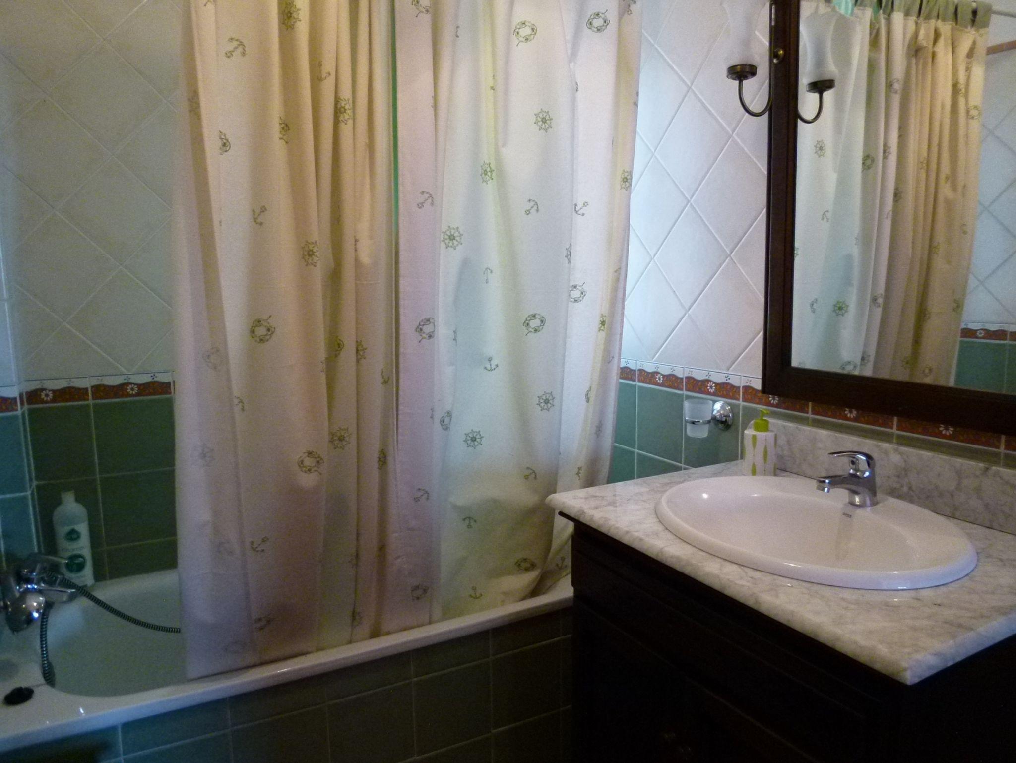 Im separaten Apartment gibt es ein Doppelbett (1,50x2,00m) und ein Einzelbett. Warme Decken für die kühlere Jahreszeit sind vorhanden. Die Küche im kleinen Apartment ist ebenfalls komplett ausgestattet. Das Bad ist mit Dusche, Waschbecken und WC ausgestattet. Für jeden Wohnungsteil steht eine Waschmaschine zur Verfügung.