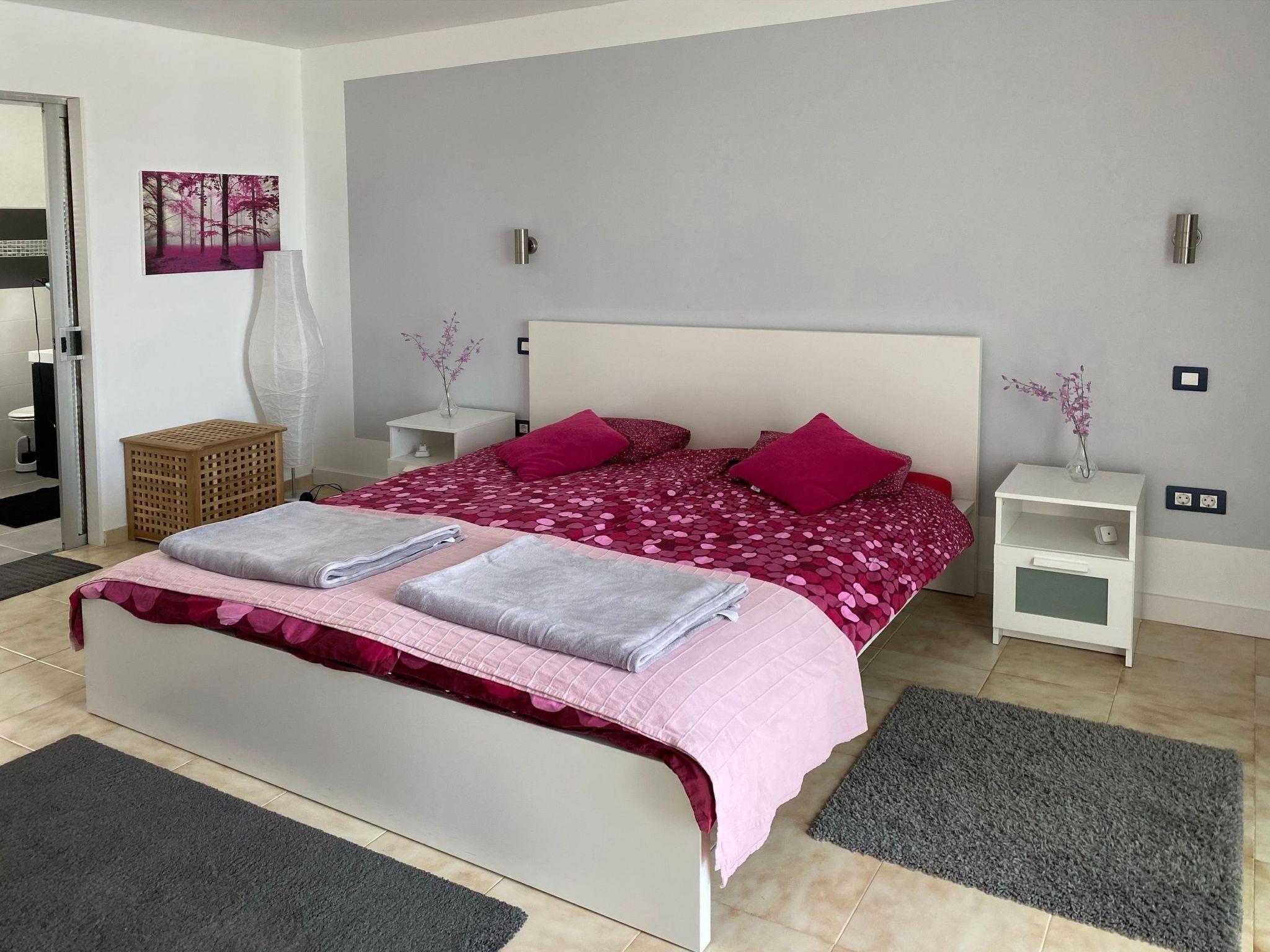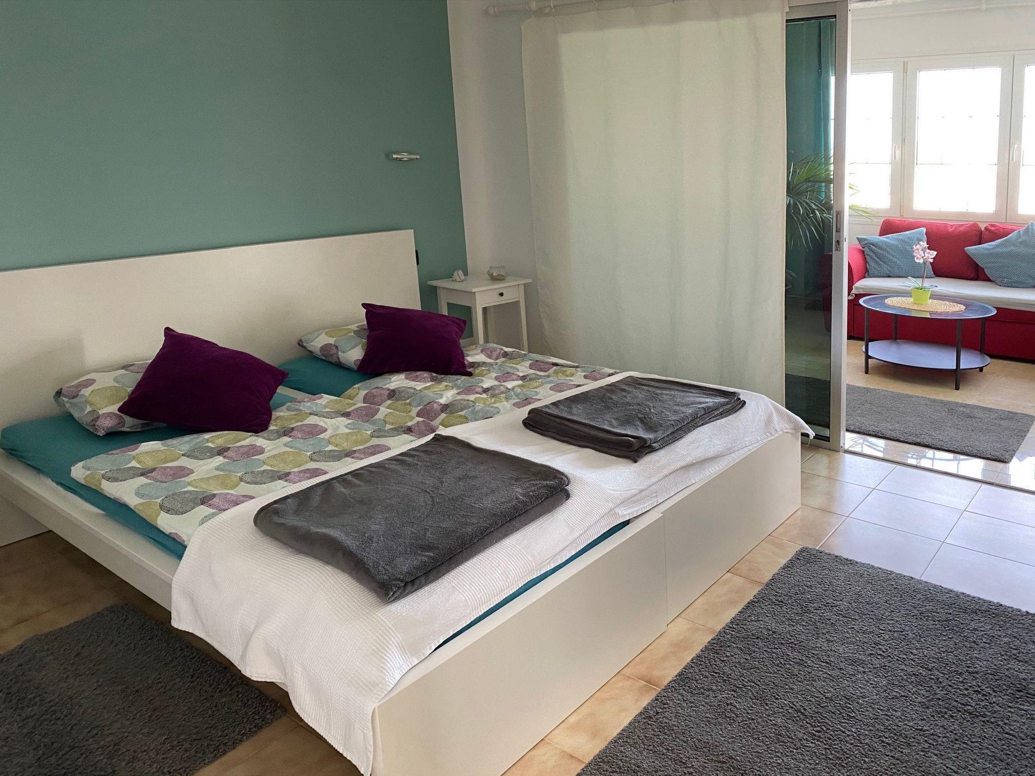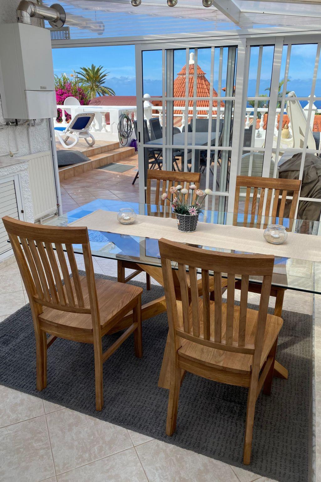 The holiday home is located in the quiet urbanisation of La Palmita at an altitude of approx. 180 m. The urbanisation is located in the rural coastal area, the town centres of La Victoria and St. Ursula with good infrastructure and many shopping facilities can be reached quickly by car. The quick connection to the motorway is another pleasant advantage. Although the motorway is not far away, it is absolutely inaudible. Due to the low altitude, you can enjoy very pleasant temperatures here all year round. Marvellous sunsets, as well as the snow-covered Teide in winter, can be enjoyed from the terrace.