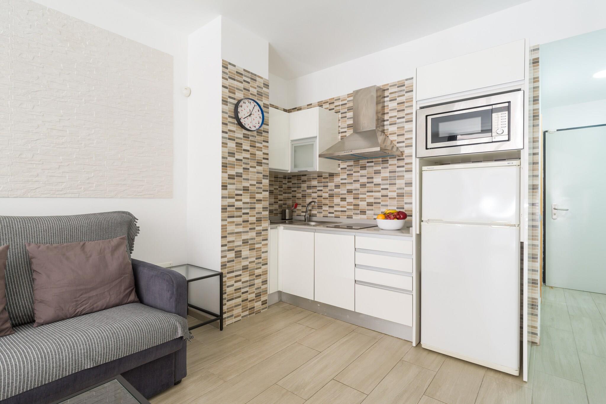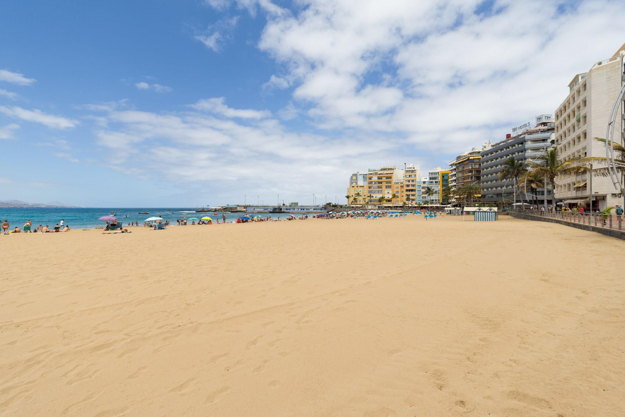Våkn opp til lyden av bølger og havutsikt i dette lyse 1-roms tilfluktsstedet som ligger rett på den gylne sanden i Playa de Las Canteras. Med 30 m² med gjennomtenkt utformet plass, er dette huset ved vannkanten ideelt for to gjester som søker en fredelig flukt med alt det essensielle for hånden. Gå utenfor og du er bare noen øyeblikk unna å bade, sole deg eller nyte et måltid på en av de lokale strandpromenadene som "O Sole Mio." Innvendig tilbyr leiligheten en lys, komfortabel atmosfære med alt du trenger for et avslappende opphold. Stuen har flatskjerm-TV, Wi-Fi, radio og en privat balkong som er perfekt for å nippe til morgenkaffen eller slappe av med utsikt over solnedgangen. Det fullt utstyrte kjøkkenet med åpen planløsning har en glasskeramisk platetopp, kjøleskap, mikrobølgeovn, kaffetrakter, brødrister, vannkoker, juicer og et komplett sett med kjøkkenutstyr for matlaging og bespisning. Leiligheten ligger i et sjarmerende og godt forbundet område, innen gangavstand til supermarkeder, restauranter og offentlig transport, med busstasjonen Santa Catalina kun 500 meter unna. Enten du planlegger en romantisk ferie eller et avsidesliggende arbeidstilfluktssted, vil du ha en perfekt beliggenhet i nærheten av naturperler som El Confital og Las Palmeras Golf, samtidig som du er bare 26 km fra Gran Canaria lufthavn. Dette er ditt koselige gjemmested ved sjøen – enkelt, rolig og uforglemmelig.