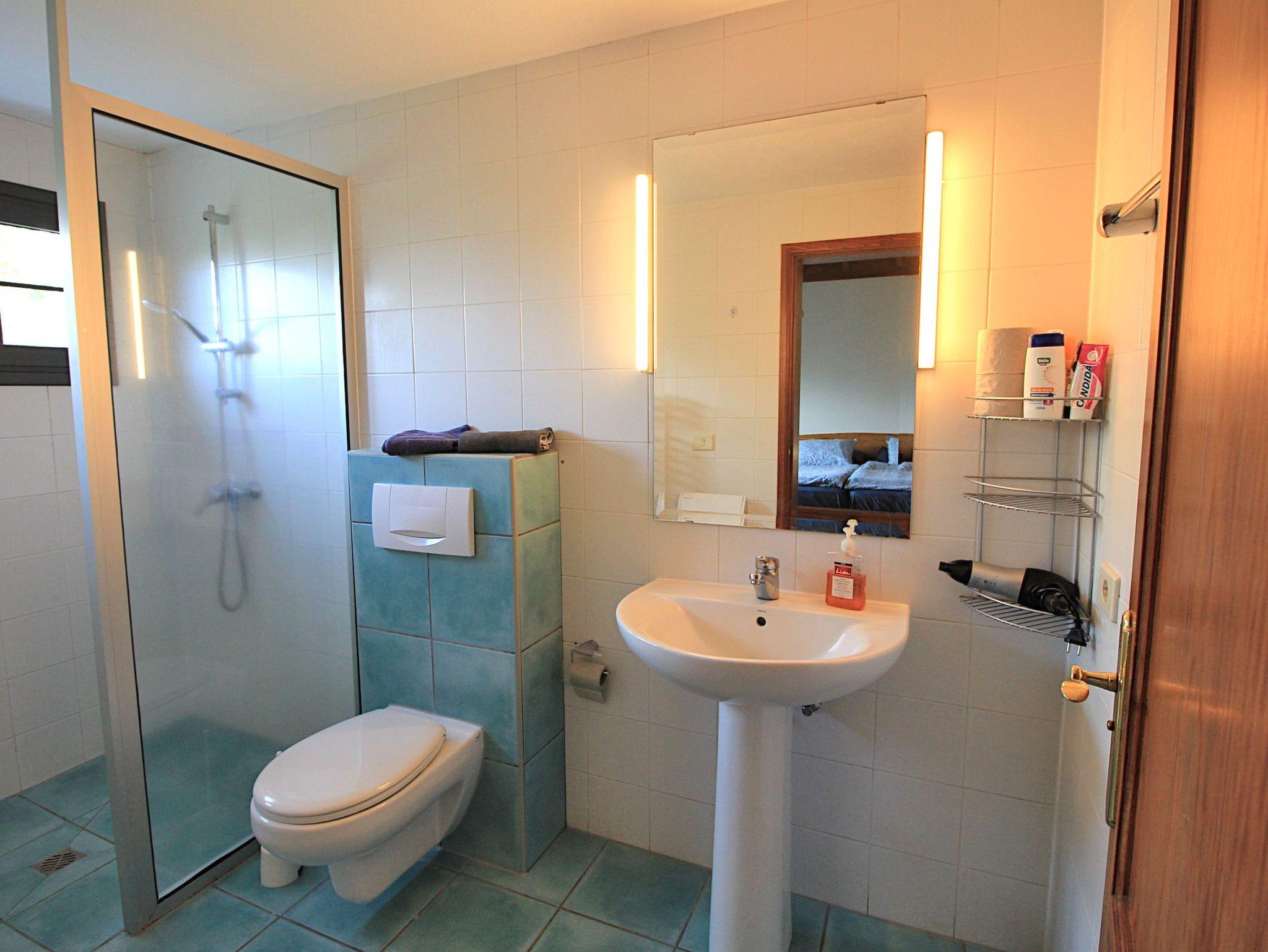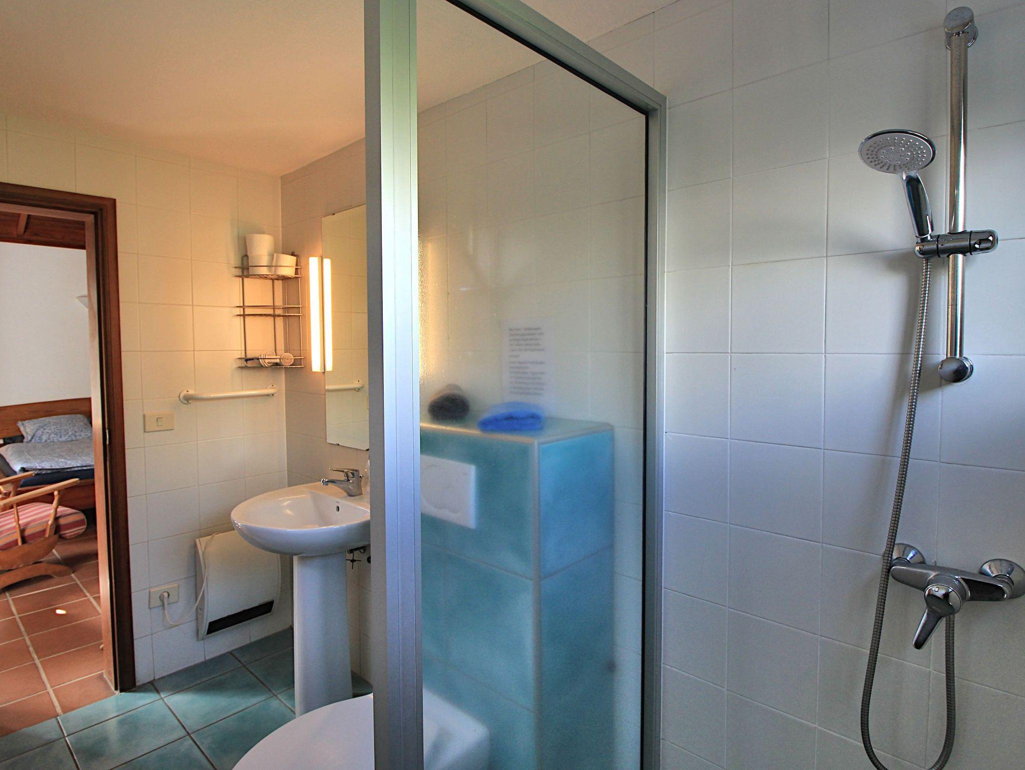 • 1 SZ mit zwei zusammengeschobenen Einzelbetten (0,90 x 2,00 m), offenem Schrank und Badezimmer ensuite mit ebenerdiger Dusche, Heizung (Zeitschaltuhr), Föhn