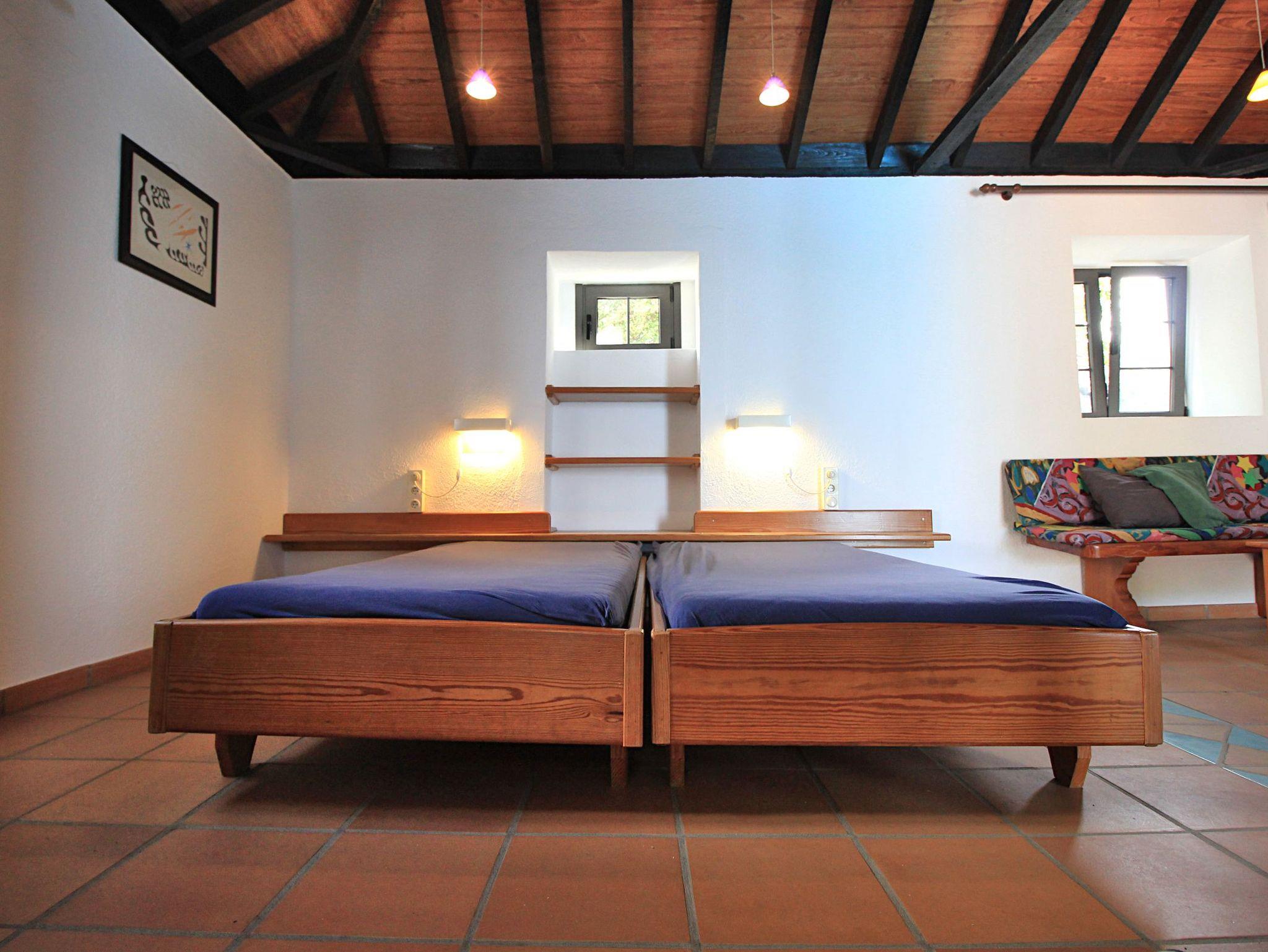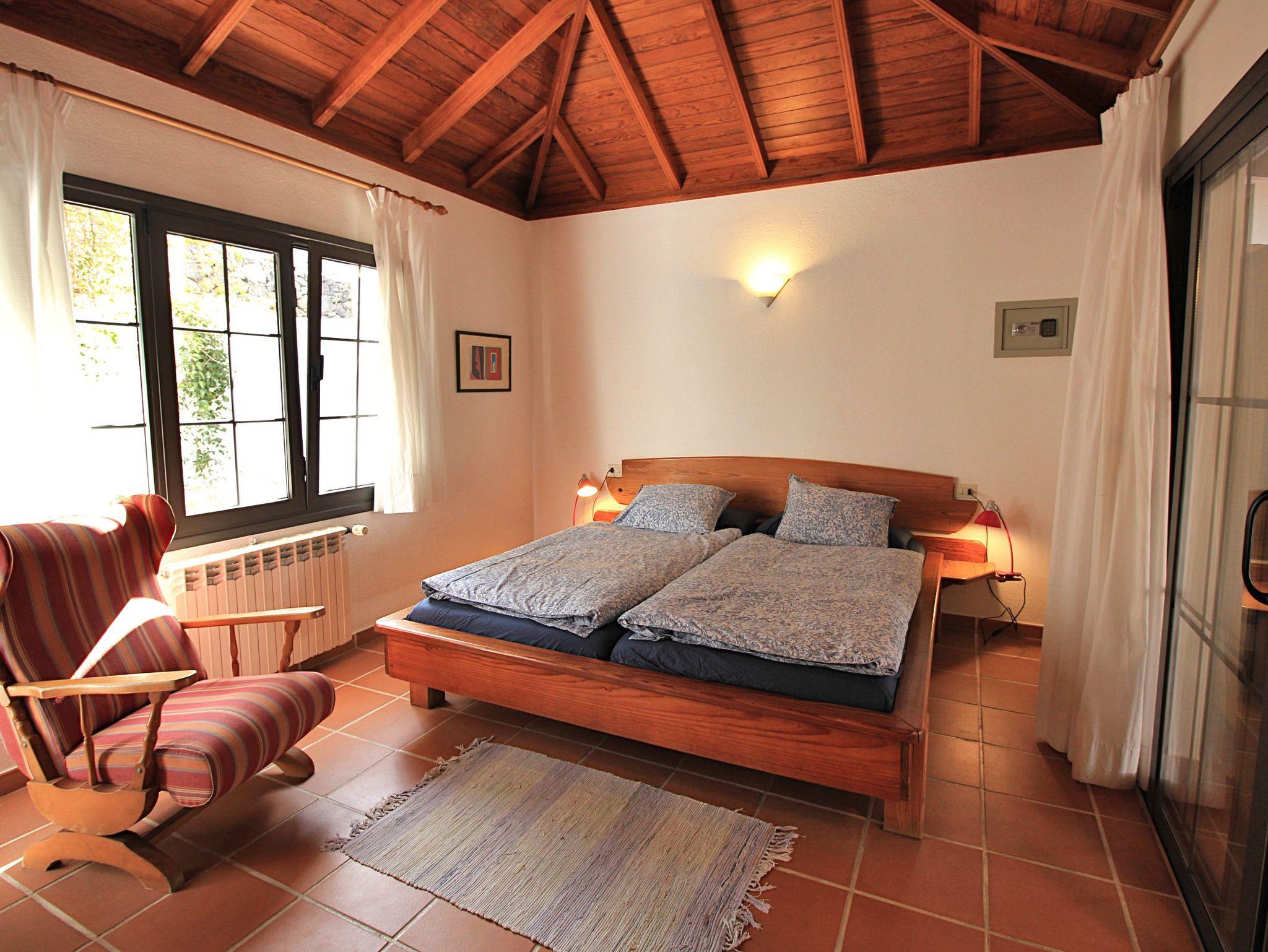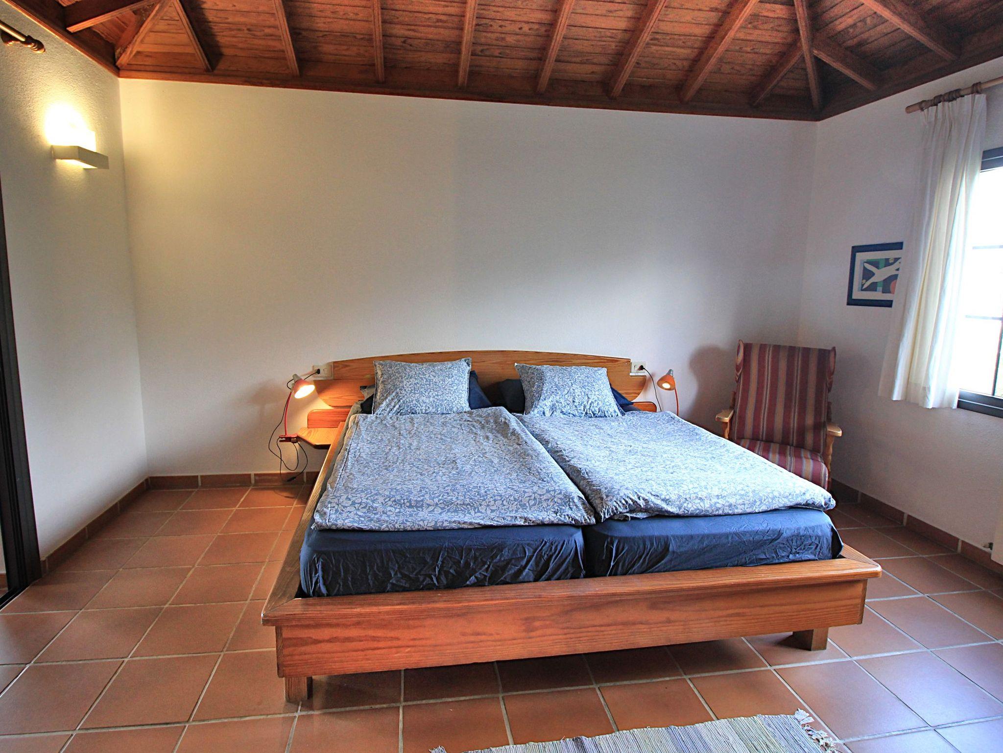 Sie haben ebenfalls kanarische Holzdächer. Ein weiteres Schlafzimmer befindet sich innerhalb des Gebäudes und ist über eine Treppe hinauf erreichbar, der vierte Schlafraum ist separat über die Terrasse zugänglich.