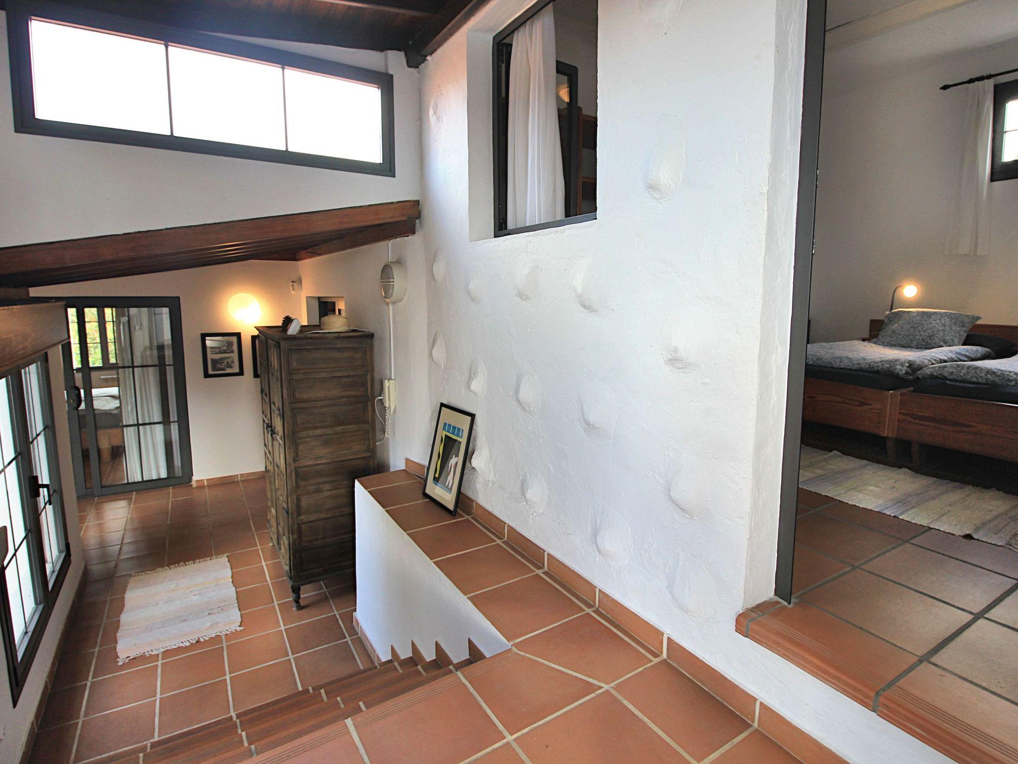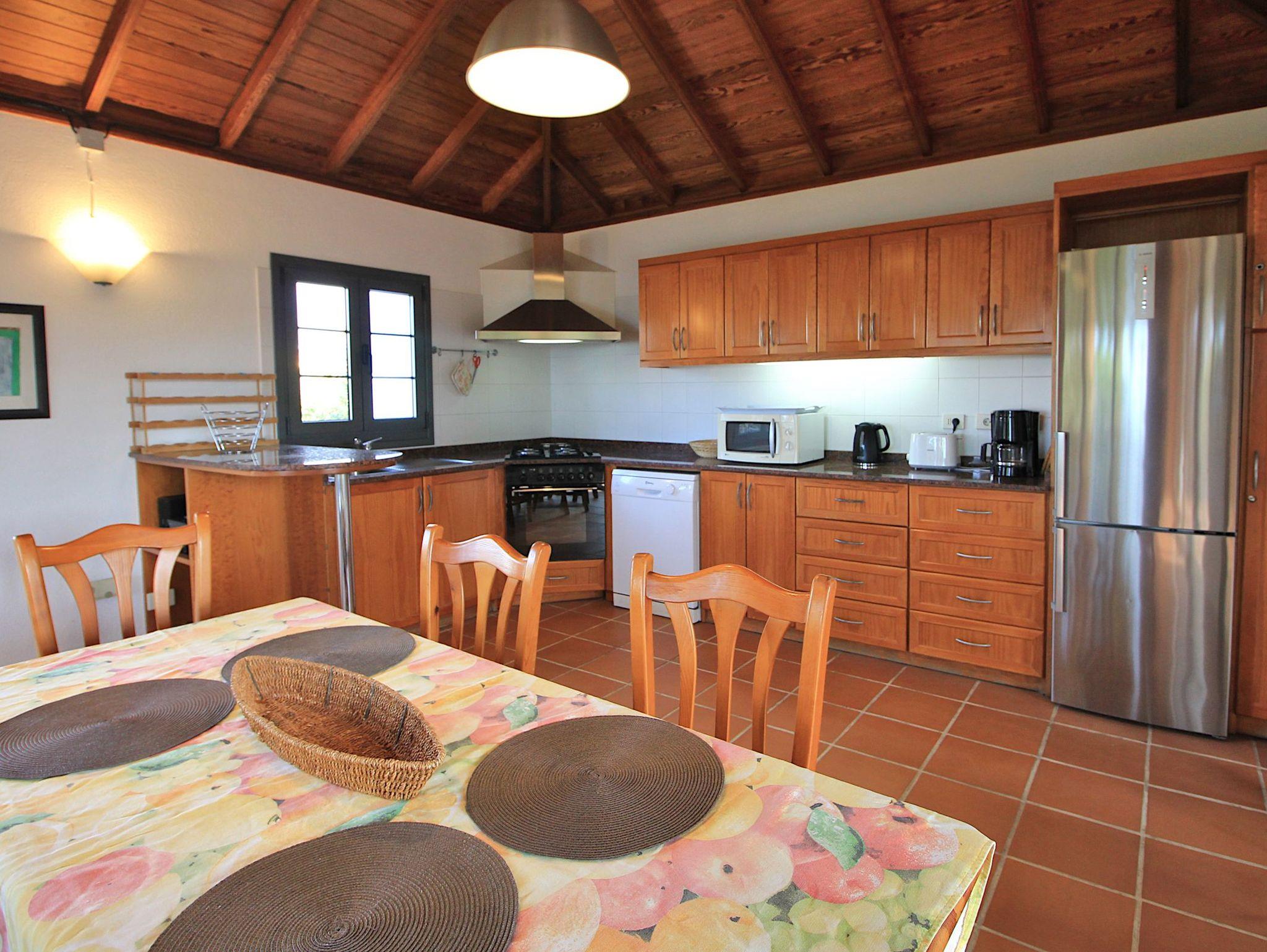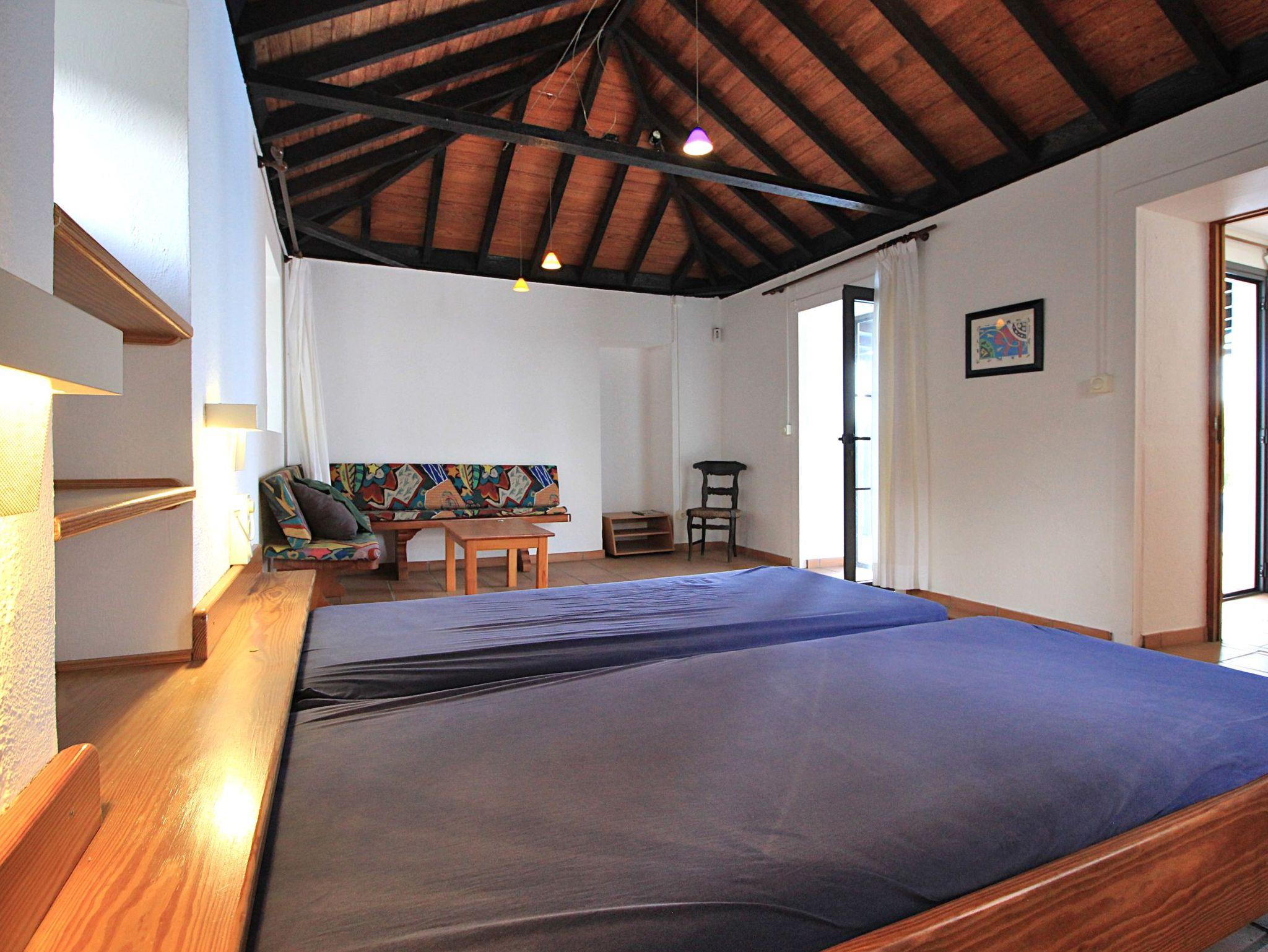 Sie haben ebenfalls kanarische Holzdächer. Ein weiteres Schlafzimmer befindet sich innerhalb des Gebäudes und ist über eine Treppe hinauf erreichbar, der vierte Schlafraum ist separat über die Terrasse zugänglich.