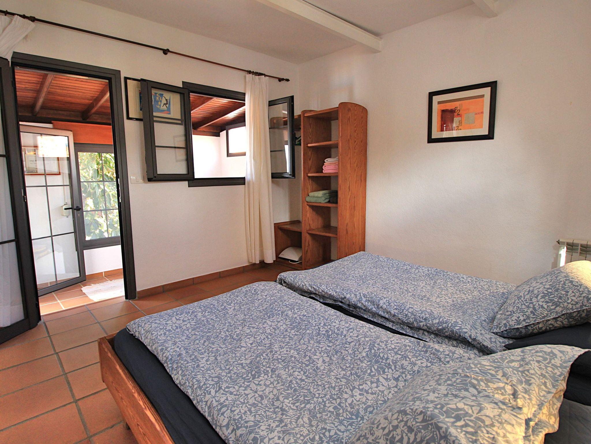 Die Schlafzimmer sind mit offenen Schränken, Ablagen und Betten aus Vollholz möbliert. Glastüren (mit Vorhängen) sorgen in den Zimmern für zusätzliche Helligkeit.