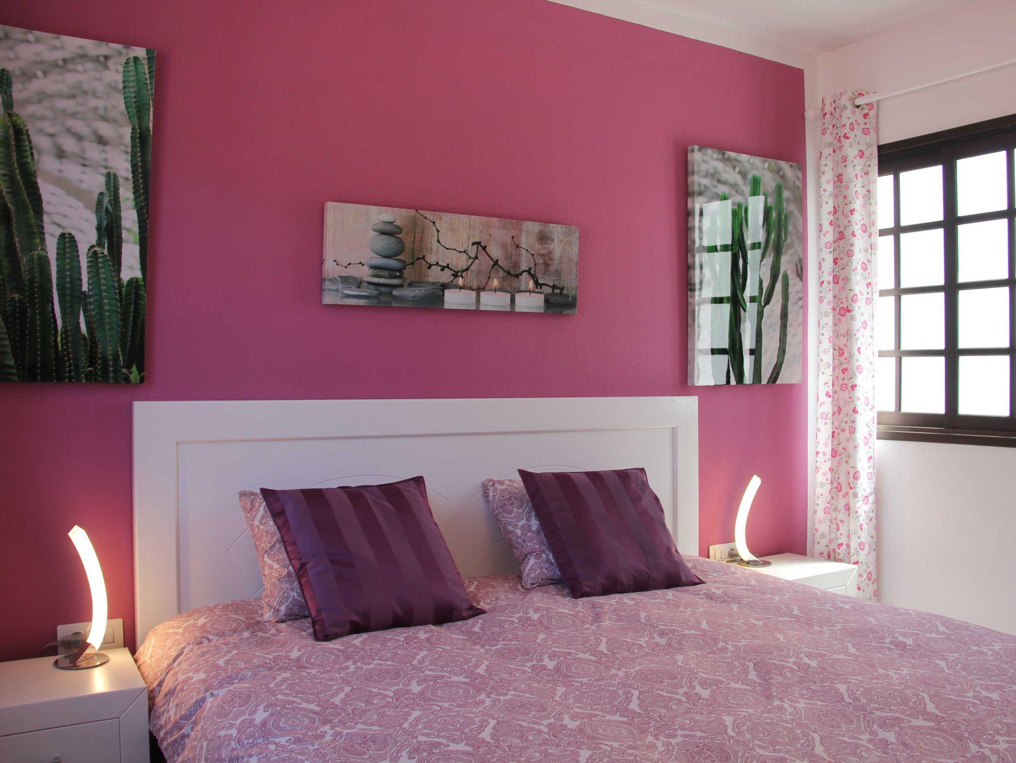 Stimmungsvolle Beleuchtung, Bilder und dekorative Accessoires sorgen für ein Wohlfühlambiente. In einem großen Einbauschrank findet Ihre Urlaubsgardarobe Platz.