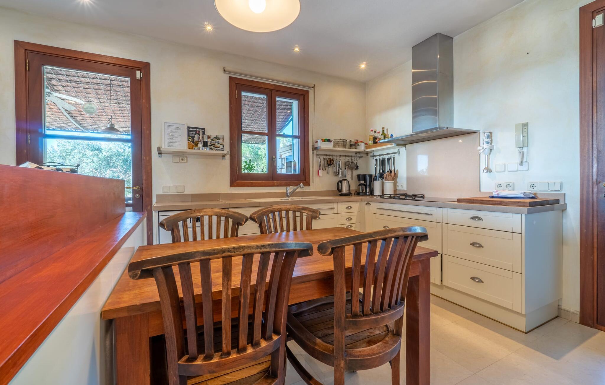 Når du kommer inn i huset, blir du møtt av en eksepsjonelt koselig atmosfære og omsluttet av en estetisk tiltalende stueatmosfære. Elegante enkeltelementer og materialer av høy kvalitet overrasker i en svært harmonisk kombinasjon. En stor stue/spisestue tilbyr et spisebord for åtte personer, samt et ekstremt koselig sofahjørne. Flatskjerm-TV-en er også beleilig plassert i stuen. På kjøligere kvelder kan du til og med slappe av i peisestuen og sitte ved varmen fra en peis. Det lyse og vennlige kjøkkenet er fullt utstyrt med kjøleskap, stekeovn, komfyr, oppvaskmaskin, brødrister, vannkoker og kaffemaskin. Her har du også mulighet til å spise et måltid for fire. Ekstra spise- og oppholdsrom utfyller på mange måter den foregående beskrivelsen, slik at selv en stor gruppe reisende enkelt kan nyte sin egen private retrett. Soverommene (alle de fem dobbeltrommene har eget bad, hvorav tre har badekar med hydromassasje) er romslige, utstyrt med møbler av høy kvalitet og elegant utformet. Fraværet av distraherende tilbehør gir rommene et lyst og raffinert utseende som utvilsomt innbyr til en behagelig hvil. Den smakfulle designen kommer også til sin rett i soverommene. Disse er innredet i en ultramoderne stil, er svært funksjonelle og sjenerøst proporsjonert.