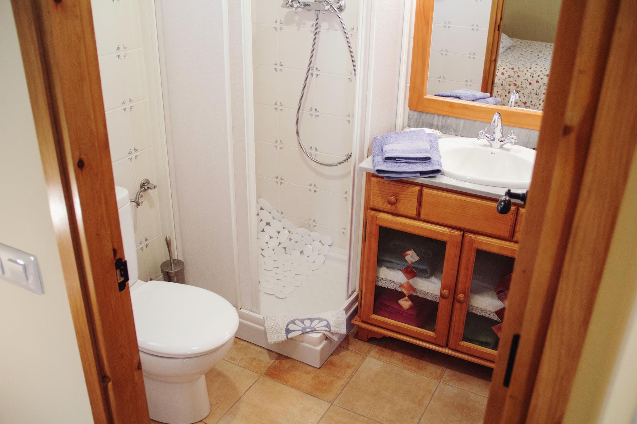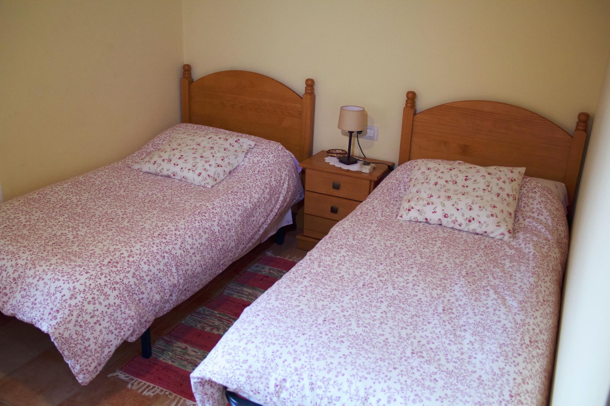 I 2. etasje: (åpent kjøkken(komfyr(keramisk), stekovn, mikrobølgeovn, oppvaskmaskin), Stue/spisestue(TV, peisen), Sovrum med badrum(liten dobbeltseng, dusj, håndvask, toalett), Sovrum med badrum(2x enkeltseng, badekar, håndvask, toalett), WC(håndvask, toalett)) 1 persons sammenleggbar seng, vaskemaskin(deles med andre gjester), oppvarming(sentral), gårdhave(deles med andre gjester), hagemøbler, svømmebasseng(deles med andre gjester, 6 x 5 m.), bordtennis, babyseng/sprinkelseng(på forespørsel), høy barnestol(på forespørsel)