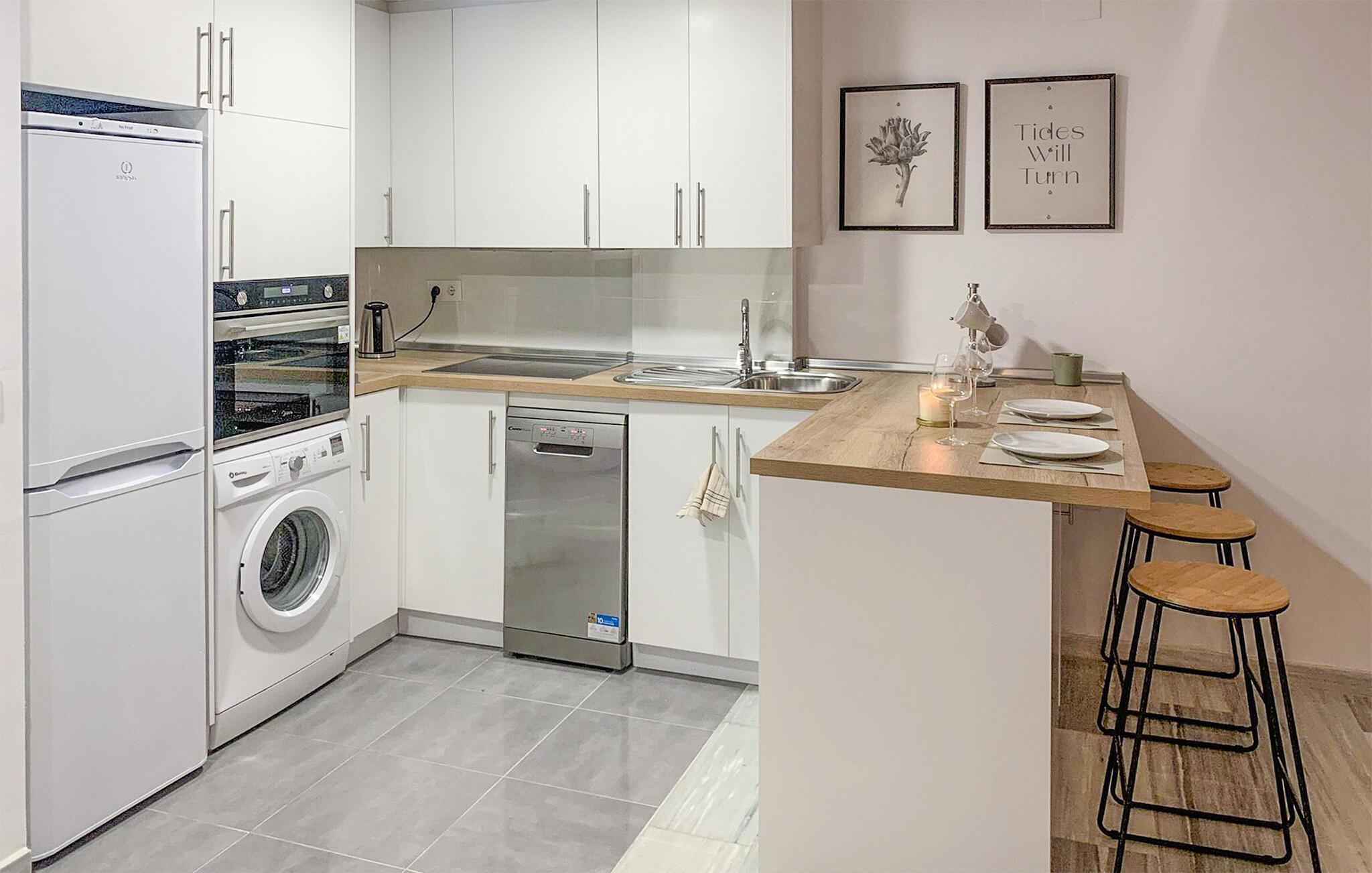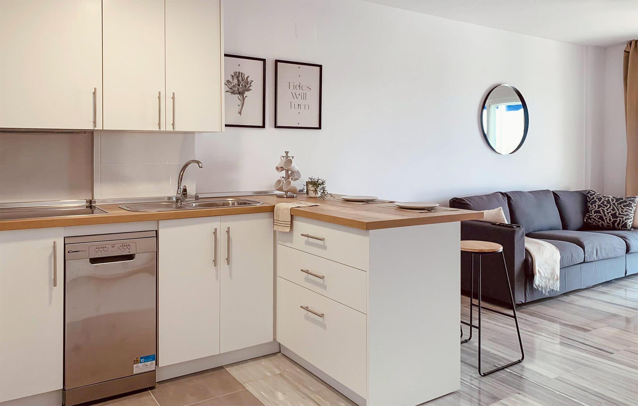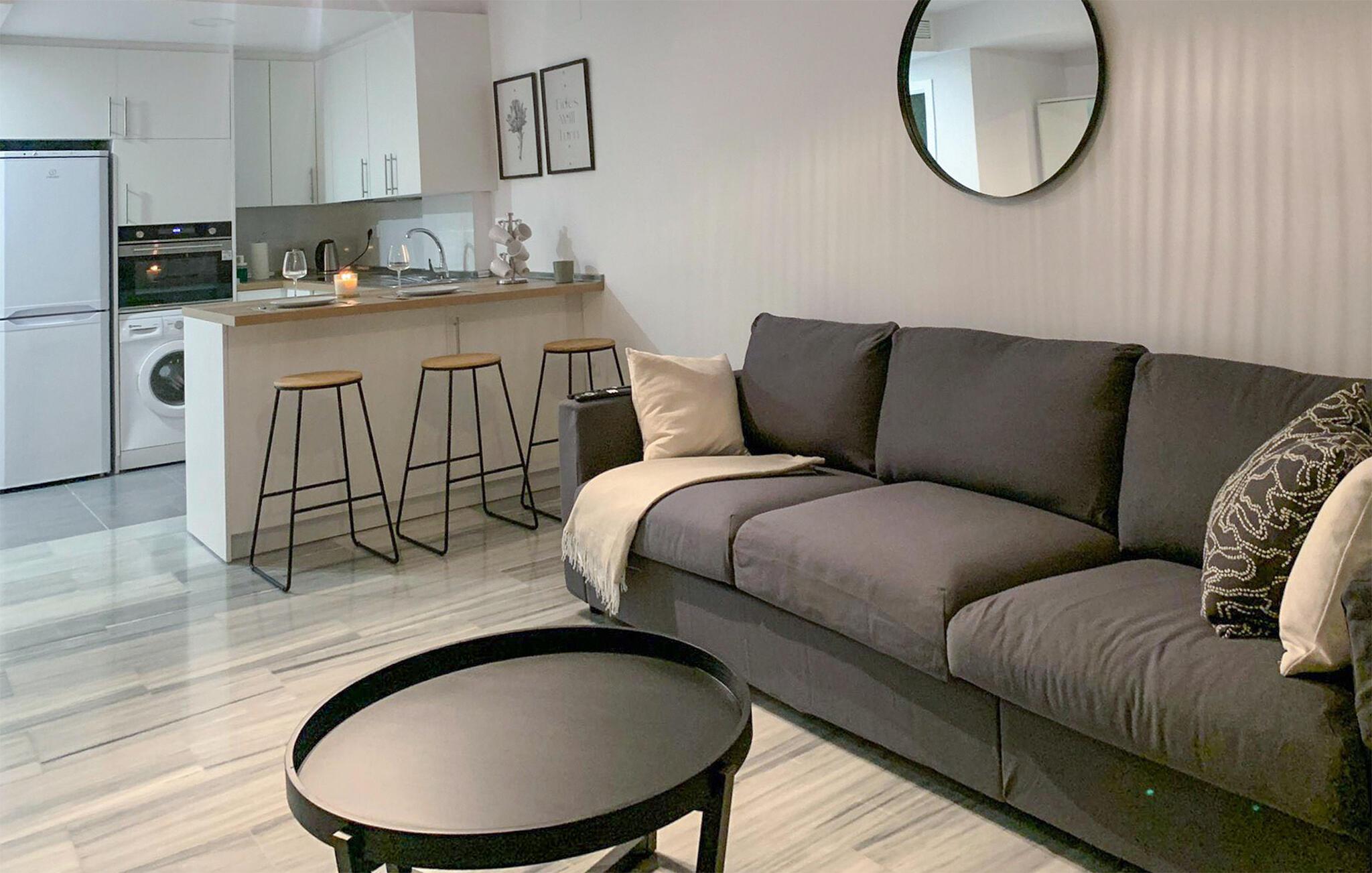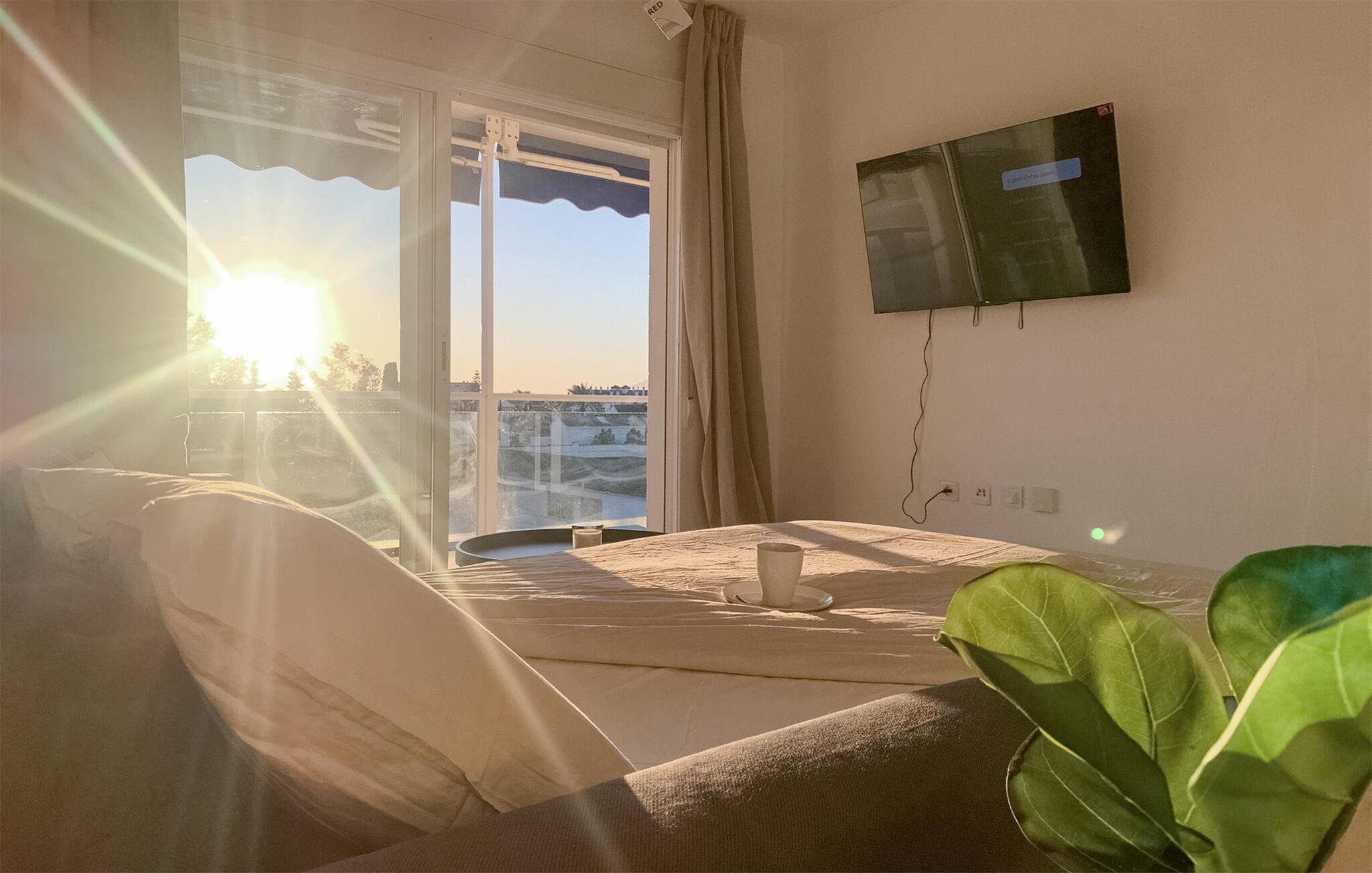 Den praktisk innredede leiligheten har alle fasiliteter du trenger for et avslappende opphold i Marbella. Start dagen på en avslappet måte med frokost på balkongen, hvor du kan nyte den fantastiske utsikten over havet. Nyt dette pittoreske bakteppet og gled deg til en dag med svømmeglede. Stuen i leiligheten er smakfullt innredet og gir plass til koselige stunder.