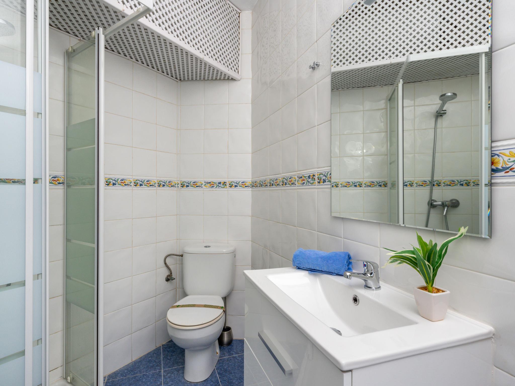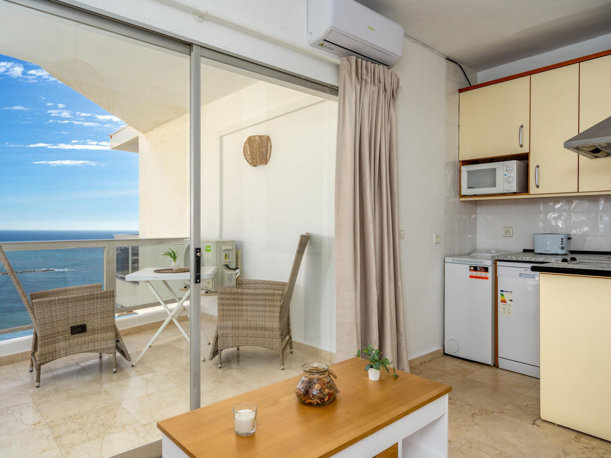 "Palm Beach", 1-room apartment 30 m2 on 8th floor. Beautiful and cosy furnishings: living room with digital TV, air conditioning and forced-air heating. 1 room with 1 bed (150 cm, length 200 cm). Kitchenette (dishwasher, 2 ceramic glass hob hotplates, toaster, microwave, electric coffee machine). Shower/WC. Terrace roofed. Terrace furniture. Very beautiful view of the sea. Facilities: washing machine, iron, hair dryer. Internet (WiFi, free). VUT/MA/38308 // Reg. Nr.: ESFCTU0000290290000706410000000000000000VUT/MA/383081