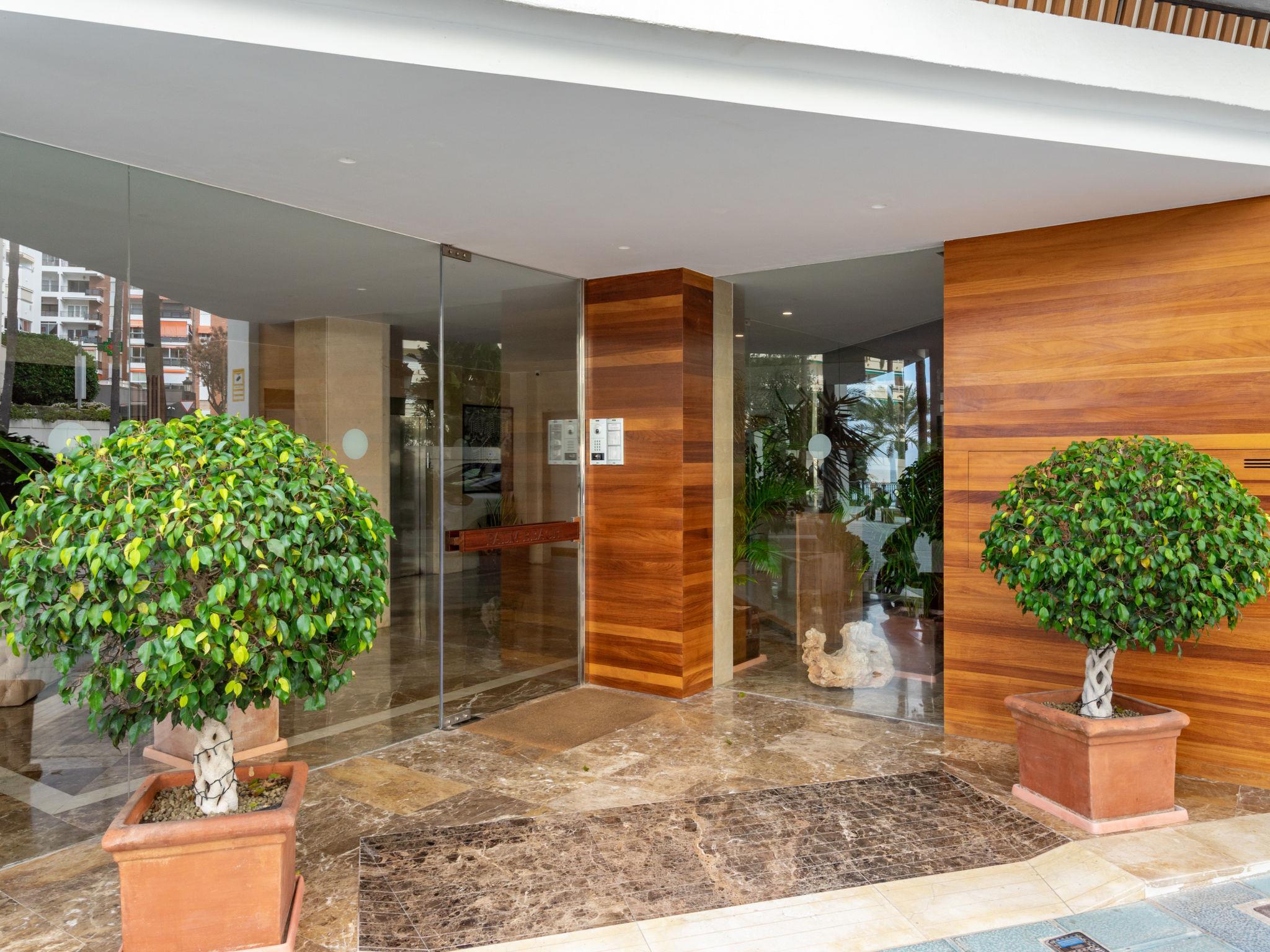 Cosy apartment block "Palm Beach". In the centre of Marbella, excellent location: right in the centre but still quiet, 50 m from the sea, from the beach, direct access to the beach. For shared use: swimming pool (seasonal availability: 01.Apr. - 31.Oct.). Shower/WC in the pool area. In the complex: lift. Public car park at 200 m, extra. Short-stay parking zone (fee). Shop 10 m, supermarket 200 m, restaurant, bar, pedestrian zone, pub garden 10 m, bus stop "Centro de Salud Marbella" 450 m, sandy beach 20 m.