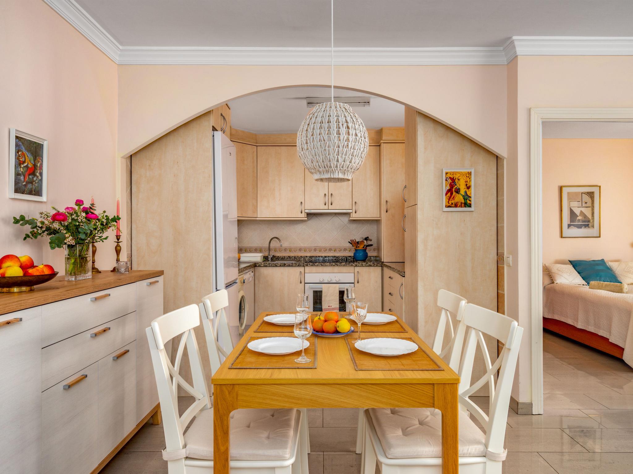 "Caracas de Marbella", 3-room apartment 72 m2 on 1st floor. Comfortable and beautiful furnishings: living/dining room with digital TV, air conditioning and forced-air heating. Exit to the balcony. 1 room with 2 beds (90 cm, length 190 cm), air conditioning and forced-air heating. 1 room with 1 french bed (135 cm, length 190 cm), air conditioning and forced-air heating. Open kitchen (oven, dishwasher, 3 ceramic glass hob hotplates, toaster, kettle, microwave, freezer, electric coffee machine). Bath/WC, shower/WC. Balcony 5 m2. Balcony furniture. Partial view of the sea. Facilities: washing machine, iron, baby cot, hair dryer. Internet (WiFi, free). Please note: non-smokers only. VUT/MA/21929 // Reg. Nr.: ESFCTU0000290290003781360000000000000000VUT/MA/219298