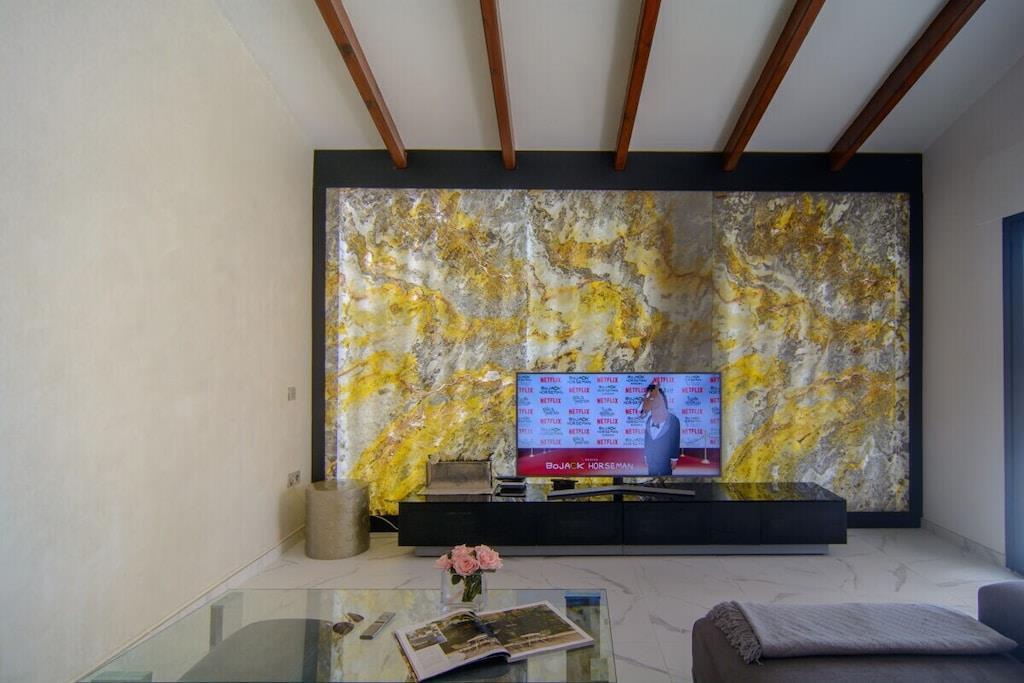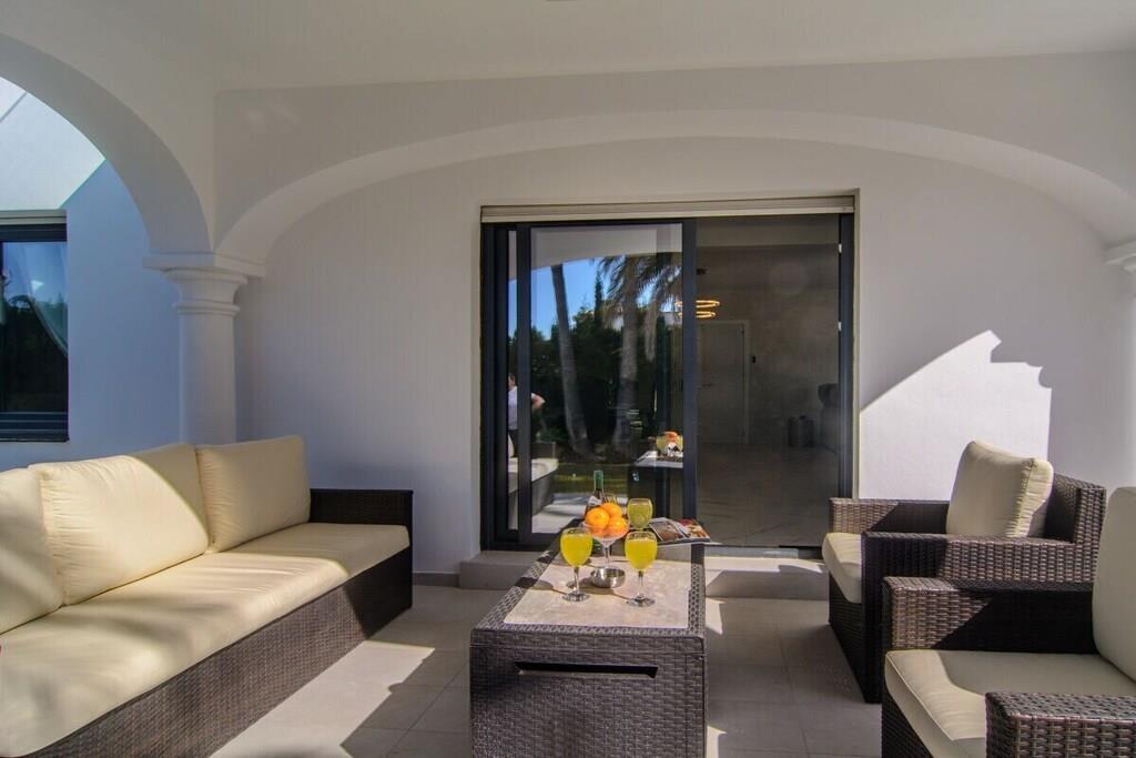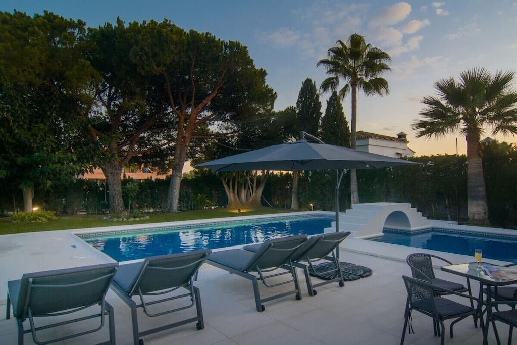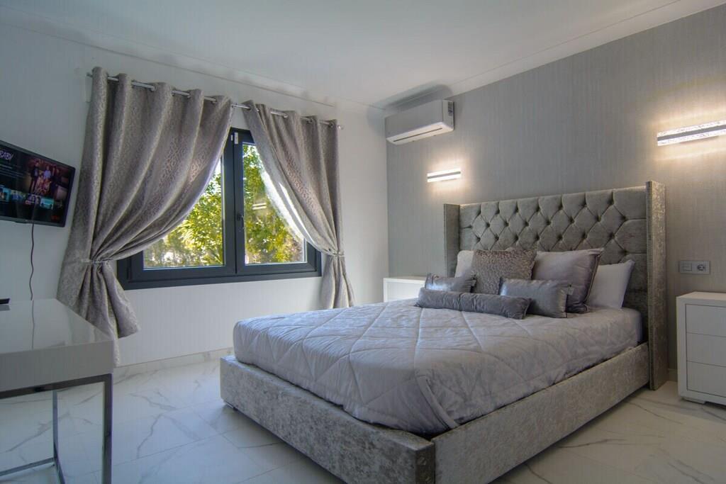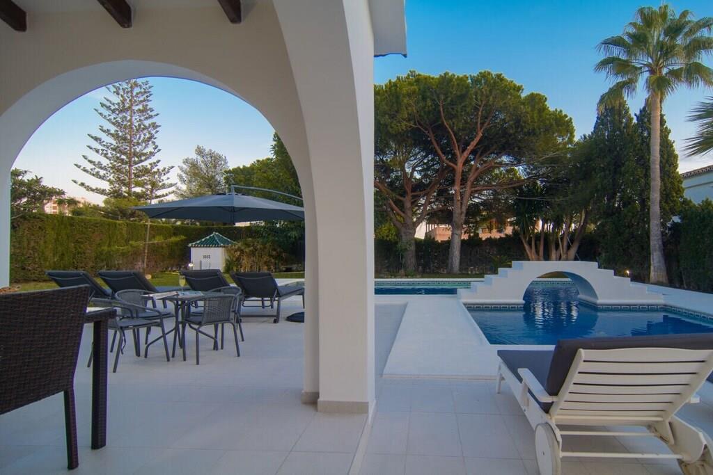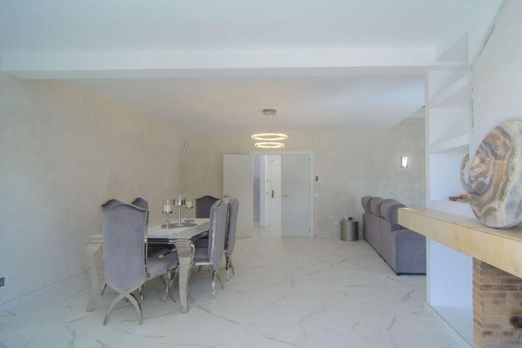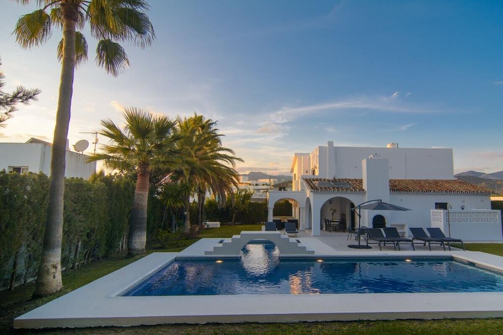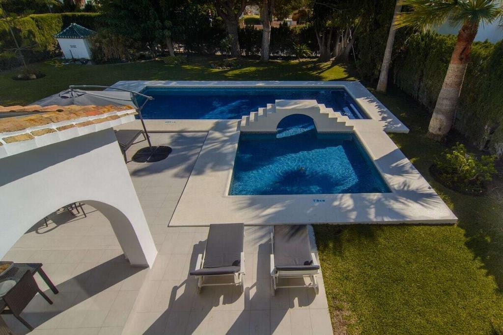 Sind Sie auf der Suche nach einem Urlaubsort, der die andalusische Tradition mit dem Bedürfnis nach modernem Design perfekt verbindet? Besuchen Sie unsere schöne Villa und alle Ihre Erwartungen werden erfüllt werden! Dieses nach Süden ausgerichtete Stadthaus mit 5 Schlafzimmern (300m2) befindet sich auf einem großzügigen Grundstück (1000m2), hat eine mediterrane Vegetation, einen besonderen L-förmigen Pool mit römischer Treppe (der Hauptteil ist 9mx4m, das Kinderbecken ist 3m x 3m), Sonnenliegen, Terrassen, Grillplatz, einen wunderschönen Blick auf das Meer und die Berge, ein gepflegtes und sorgfältig durchdachtes Design, moderne und doch sehr stilvolle Möbel und Dekorationen. ~ Innen Im Erdgeschoss befinden sich das Wohnzimmer, zwei Schlafzimmer, eine Küche und ein Familienbad. Das Wohnzimmer besteht aus zwei verschiedenen Bereichen: dem Sitz- und dem Essbereich. Die schönen Marmorböden und das gepflegte Design, die Holzbalken und die exquisite Dekoration machen Ihren Aufenthalt so angenehm wie möglich. In der Sitzecke steht ein bequemes Sofa vor einem Flachbildfernseher (iptv mit internationalen Kanälen). Der Kamin vervollständigt die heimelige Atmosphäre. Der Essbereich verfügt über einen eleganten Esstisch für sechs Personen mit bequemen gepolsterten Stühlen. Von hier aus können Sie durch eine Schiebetür auf die Hauptterrasse gelangen. Im Erdgeschoss befinden sich zwei Schlafzimmer, die sich ein Familienbad teilen. Eines der Schlafzimmer hat zwei Einzelbetten (2x90x200cm), geräumige Kleiderschränke, einen Flachbildfernseher (iptv mit internationalen Kanälen), zwei Wandlampen und einen Nachttisch. Das Familienbadezimmer hat eine begehbare Dusche, Waschbecken, Toilette und ein Fenster für natürliches Licht. Das zweite Schlafzimmer hat ein Doppelbett (160x200cm), zwei Nachttische, Wandlampen, große Schränke, einen Tisch, der ideal ist, wenn Sie an Ihrem Laptop arbeiten, und einen Flachbildfernseher (iptv mit internationalen Kanälen). Neben der kleinen Eingangshalle befindet sich die Küche, die sehr praktisch ist und über alle notwendigen Geräte verfügt: Ceranfeld, Backofen, Mikrowelle, Nabe, Kühlschrank, Toaster, Wasserkocher. Sie hat auch zwei Barhocker, die die moderne Atmosphäre vervollständigen. Im Obergeschoss befinden sich drei Schlafzimmer, ein Bad en suite, ein Familienbad und eine Terrasse, von der aus Sie den schönen Garten mit Pool, das Meer und die Berge bewundern können. Das Hauptschlafzimmer hat ein Doppelbett (180x200cm), zwei Nachttische, einen geräumigen Kleiderschrank, eine Kommode, zwei Hocker und einen Flachbildfernseher (iptv mit internationalen Kanälen). Das Badezimmer hat ein sehr ansprechendes Design und eine perfekte Ausstattung mit Wandlampen, zwei Spiegeln, einer begehbaren Dusche mit Regenkopf, Waschbecken und Toilette. Das zweite Schlafzimmer im Obergeschoss hat ein Doppelbett (160x200cm) mit Nachttisch, einen geräumigen Kleiderschrank und sichtbare Holzbalken. Das dritte Schlafzimmer im Obergeschoss verfügt über ein Doppelbett (140x200cm), einen geräumigen Kleiderschrank, einen Nachttisch, einen Tisch für den Laptop und einen Flachbildfernseher (iptv mit internationalen Kanälen). Diese beiden Schlafzimmer teilen sich ein Familienbadezimmer mit einer begehbaren Dusche mit Regendusche, Waschbecken, Toilette und Fenster. Alle Schlafzimmer sind klimatisiert. ~Terrassen und Garten Die schöne, geräumige Terrasse, die vom Wohnzimmer aus zugänglich ist, ist mit einem Rattan-Esstisch für sechs Personen ausgestattet und hat Zugang zu einem großen Kühlschrank. Von hier aus können Sie die schöne mediterrane Vegetation des großen Gartens (1000m2) und den Pool bewundern. Der gepflegte Garten, der den Pool umgibt, ist mit schönen Palmen bepflanzt und ein grüner Zaun verleiht diesem Raum Intimität. Ein kleiner Esstisch für vier Personen steht neben dem Pool, mit einem Sonnenschirm für die heißen Sommertage. Der Grillplatz ermöglicht es Ihnen, an kühlen Abenden besondere Mahlzeiten zuzubereiten. Wenn Sie keine Lust haben, zum Meer zu laufen, können Sie sich am Pool auf einer der sechs Sonnenliegen entspannen, die hier für Ihren Komfort aufgestellt sind. Das L-förmige Schwimmbad hat zwei verschiedene Bereiche: der Hauptteil ist 9mx4m, das Kinderbecken ist 3m x 3m groß, eine Schwimmbrücke trennt die beiden Bereiche und eine römische Treppe. Die obere Terrasse (12m2) im ersten Stock bietet einen schönen Blick auf das Meer, den Pool, den Garten, die Urbanisation und die Berge. Der kleine Rattan-Couchtisch ermöglicht es Ihnen, die perfekte Aussicht zu genießen, während Sie Ihren Morgenkaffee trinken. Dienstprogramme: TV (6), Zentralheizung, Kamin, Klimaanlage, Ventilatoren, Toaster, Bügeleisen, Geschirrspüler, Backofen, Mikrowelle, Kühlschrank, Gefrierschrank, Waschmaschine, Trockner, Kaffeemaschine, Wasserkocher, BBQ. Räume: 5 Schlafzimmer, 3 Bäder, Wohnzimmer mit Essbereich und Sitzecke, 1 Küche. Möblierung: Einzelbetten (2), Doppelbetten (4), Sofas, Außensofa und Sessel mit Sitzgelegenheiten (6), Sonnenliegen (4), Esstisch (4), Esstisch auf Terrasse (6), Esstisch auf Terrasse (4). Jedes Schlafzimmer hat einen Kleiderschrank. Sonstiges: Bettwäsche und Handtücher inklusive. Kostenloses Internet WIFI verfügbar. Draußen: Große Terrasse, privater Außenpool, privater Garten, Grillplatz.