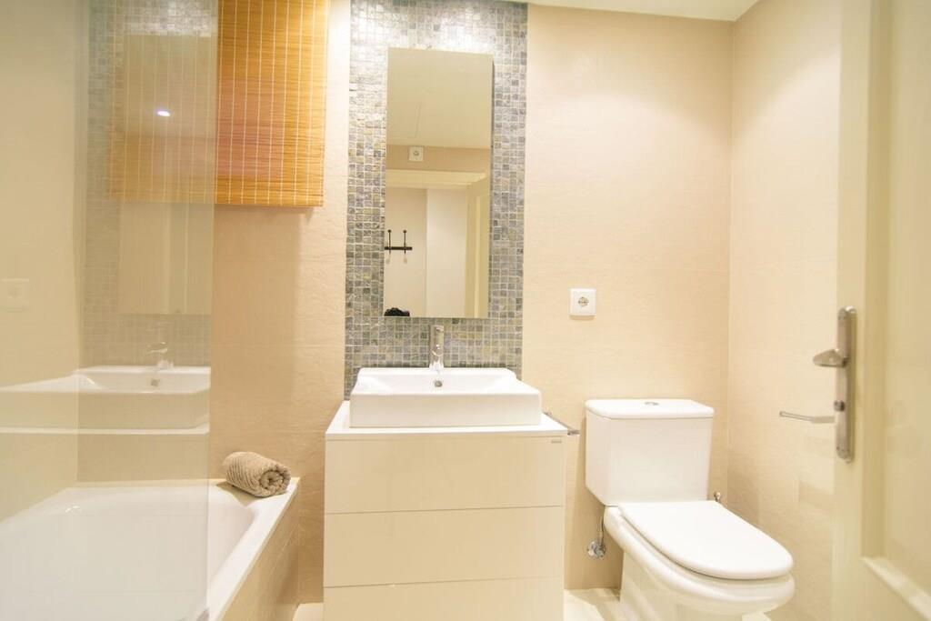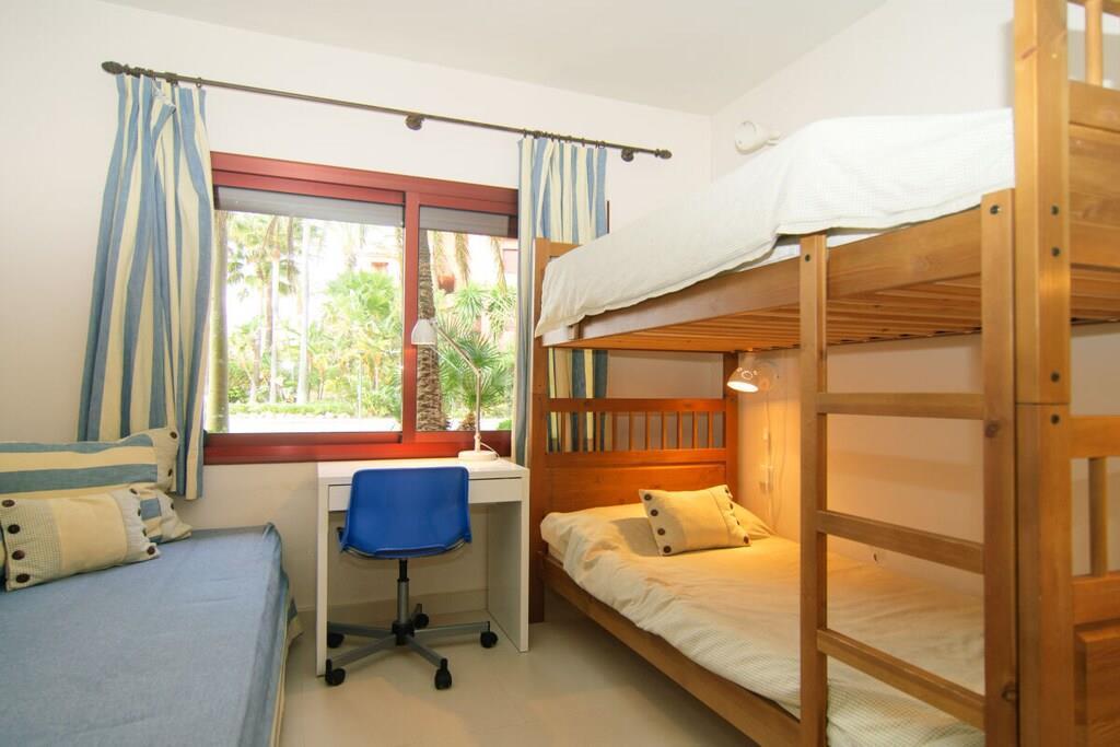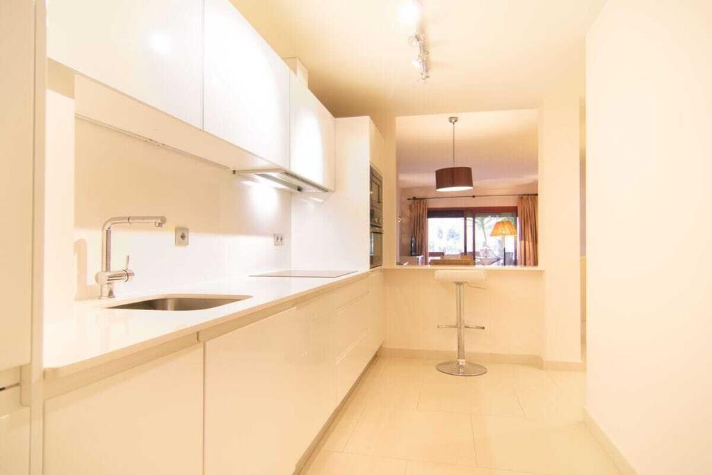 Renovierte Erdgeschosswohnung (85m2) mit zwei Schlafzimmern, Terrasse (10m2) und direktem Ausgang zum Pool, gelegen in der privaten Urbanisation Alicate Playa, nur 150m vom Sandstrand, Restaurants und Chiringuitos entfernt. ~ Innen Das große Wohnzimmer, ausgestattet mit einem 4-Sitzer-Sofa, Couchtisch und Flachbildfernseher, beherbergt auch einen Essbereich mit einem runden Tisch für vier Personen. Der Essbereich ist durch ein Durchgangsfenster mit der modernen, voll ausgestatteten Küche verbunden. Die Küche verfügt über alle neuen Teka-Geräte und Utensilien für einen komfortablen Aufenthalt: Backofen, Mikrowelle, Kaffeemaschine, Geschirrspüler, Kühlschrank, Gefrierschrank, Vitrokeramik, Toaster, Waschmaschine/Trockner. Ein kleiner Flur führt Sie zu den beiden Schlafzimmern. Das Hauptschlafzimmer hat ein bequemes Doppelbett (150x190cm), geräumige Kleiderschränke, ein großes Fenster mit Blick auf den Poolbereich und eine Glastür, die auf die private Terrasse führt. Das Hauptschlafzimmer verfügt über ein modernes Bad mit Glasduschkabine. Das Gästeschlafzimmer hat ein Etagenbett (2 90x190cm) und ein Einzelbett (90x190cm), geräumige Kleiderschränke und ein großes Fenster mit Blick auf den Garten. Das Gästebad mit Badewanne befindet sich direkt neben dem Gästezimmer. ~ Terrasse Vom Wohnzimmer und vom Hauptschlafzimmer aus haben Sie Zugang zu einer schönen Terrasse (10m2), die direkt in den Garten führt. Sie bietet Ihnen genügend Platz, um Ihre Mahlzeiten im Freien zu genießen und von hier aus haben Sie direkten Zugang zum Gemeinschaftsgarten und Pool. Dienstprogramme: TV, zentrale Klimaanlage warm/kalt, Toaster, Backofen, Kaffeemaschine, Bügeleisen, Geschirrspüler, Vitrokeramik, Mikrowelle, Kühlschrank, Gefrierschrank, Waschmaschine/Trockner, Haartrockner. Räume: 2 Schlafzimmer, 2 Bäder, großes Wohn- und Esszimmer, 1 Küche. Möbel: Doppelbetten (1), Etagenbetten (2), Einzelbetten (1), Sofa, Außentisch (4), Esstisch (4). Beide Schlafzimmer haben Kleiderschränke. Sonstiges: Internet, Bettwäsche und Handtücher sind im Preis inbegriffen, ebenso wie ein privater Parkplatz (1). Draußen: Terrasse mit Sitzsofa, gemeinsamer Pool, gemeinsamer Garten, privater Parkplatz (1), Parkplatz auf der Straße, Paddle Tennis. Übersetzt mit www.DeepL.com/Translator (kostenlose Version)