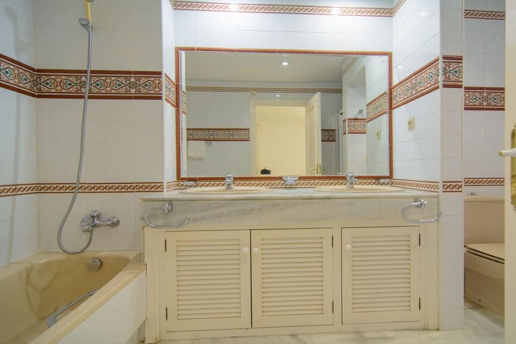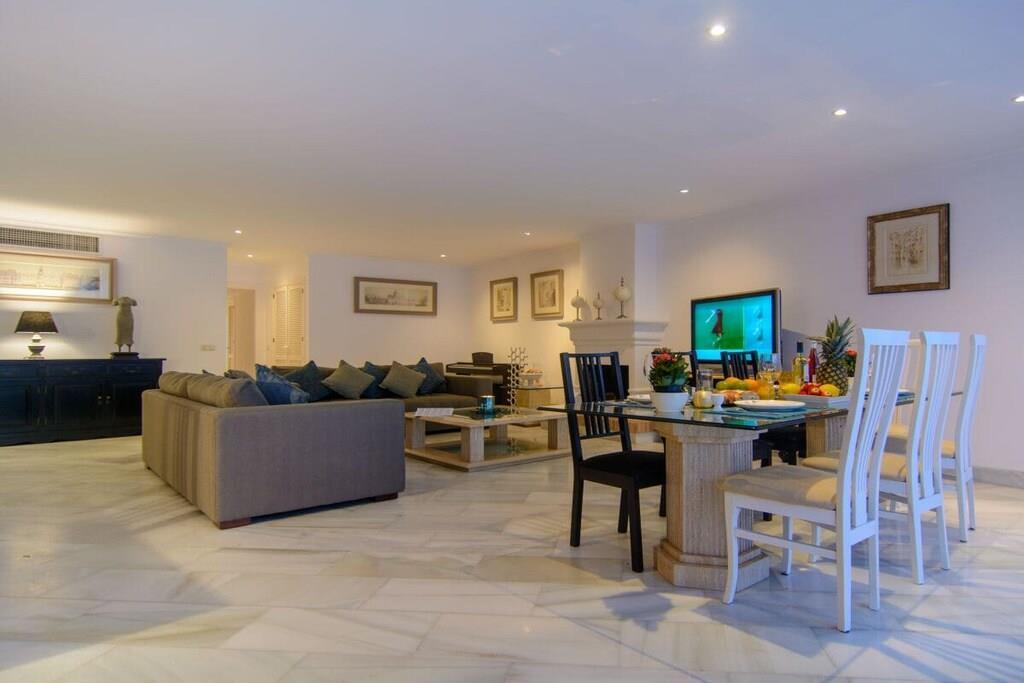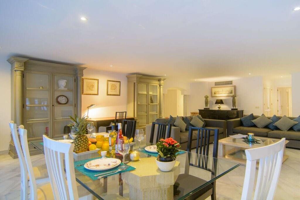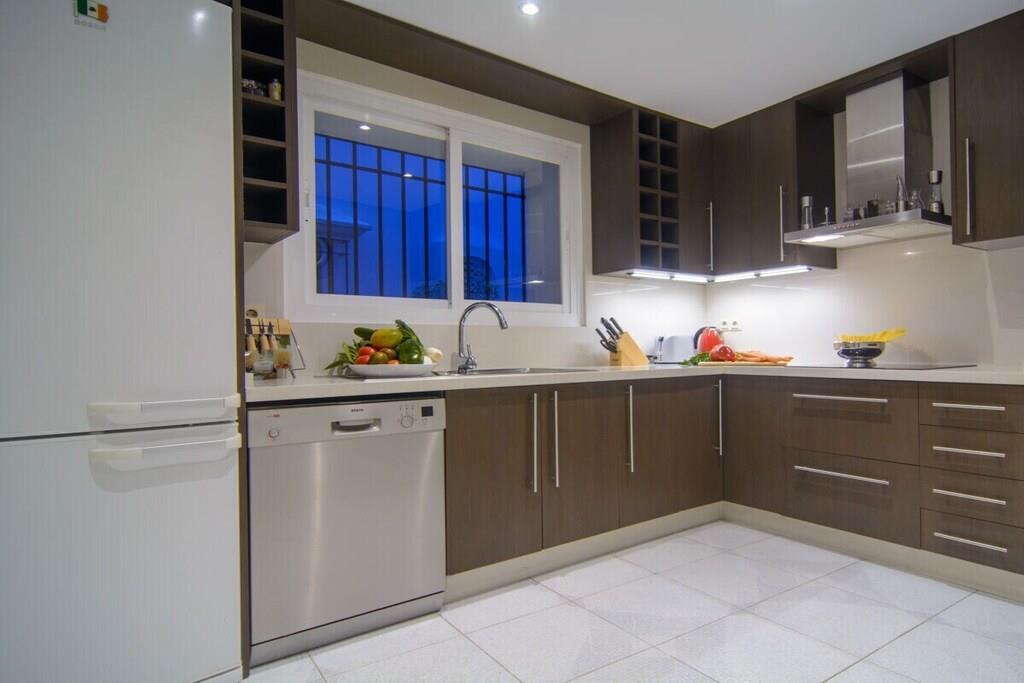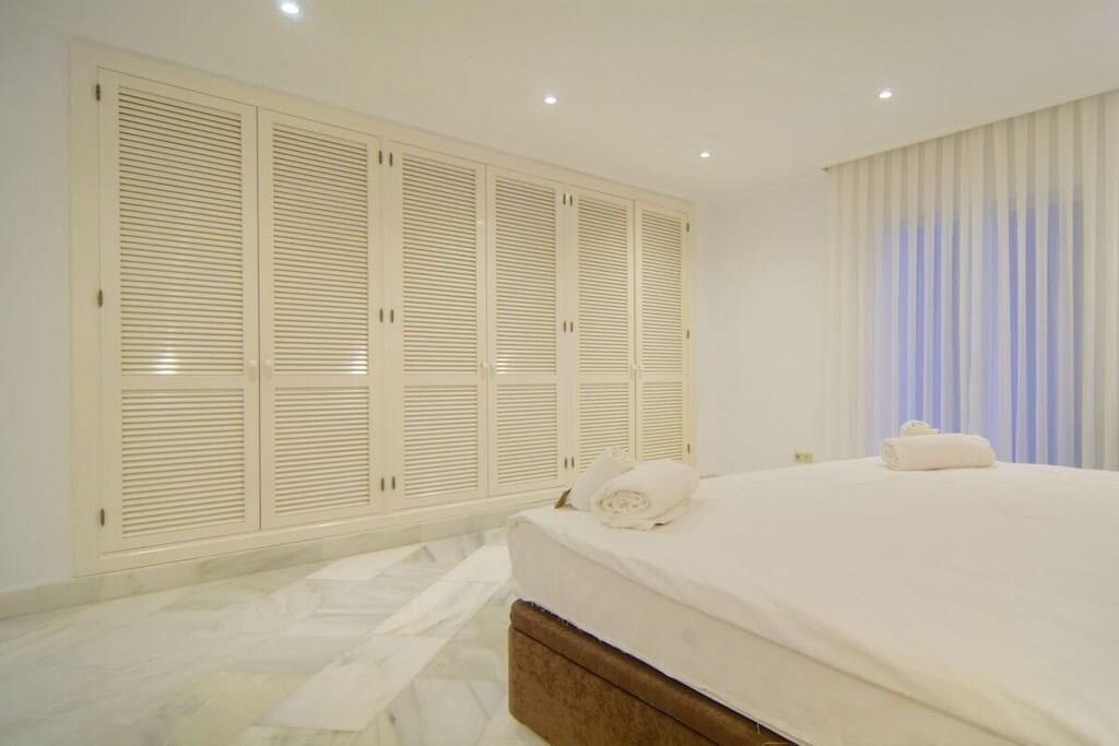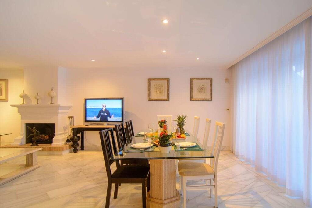 Genießen Sie die Vorteile einer exquisiten Unterkunft nur 150 Meter von Playa de la Vibora in der erstaunlichen White Pearl Beach Urbanisation mit drei Pools und Garten platziert. Die Wohnung ist geräumig (180m2) es hat drei Schlafzimmer (zwei von ihnen mit eigenem Bad), ein geräumiges Wohnzimmer mit einem Sitz- und einem Essbereich, eine saubere Küche und eine große Terrasse (75m2) mit Grill. ~ Innen Diese elegante Wohnung (180m2) verfügt über ein geräumiges Wohnzimmer mit einer Sitzecke und einem Essbereich. In der Sitzecke stehen zwei große bequeme Sofas neben einem Couchtisch vor einem Flachbildfernseher. Der Essbereich hat einen Glastisch für acht Personen und bietet einen schönen Blick auf die Terrasse. Die Fenster von Wand zu Wand und die Tür zur Terrasse lassen viel Licht in das Wohnzimmer eindringen. Der Glastisch steht auf eleganten Marmorsäulen. Die Sitzecke hat einen eleganten Marmortisch mit Glas und zwei bequeme große Sofas. Das Design ist elegant, Marmorfliesenböden, schöne und dezente gerahmte Grafiken, antike Möbel. In diesem Bereich gibt es einen Tisch, der ideal für einen Laptop ist, falls Sie während Ihres Aufenthalts arbeiten möchten. Das Hauptschlafzimmer ist mit einem bequemen Bett (180x200cm) ausgestattet und verfügt über große Schränke, Rattan-Schubladen, Spiegel und Lampen mit Lampenschirmen. Das voll ausgestattete Badezimmer hat eine Badewanne, ein Doppelwaschbecken und eine begehbare Dusche. Das zweite Schlafzimmer hat ein Doppelbett (150x190cm) und ein Einzelbett (90x190cm), große Kleiderschränke und Zugang zu einem Familienbad mit begehbarer Dusche. Das dritte Schlafzimmer hat zwei Einzelbetten (2x105x190cm), Nachttische, einen Spiegel und bietet Zugang zu einem eigenen Bad mit Badewanne, Doppelwaschbecken, begehbarer Dusche und Toilette. Die Küche verfügt über alle Geräte (Backofen, Mikrowelle, Ceranfeld, Kühlschrank, Gefrierschrank, Geschirrspüler, Kaffeemaschine, Toaster, Wasserkocher) und Zubehör für einen komfortablen Aufenthalt. Es gibt auch eine Waschküche mit Waschmaschine und Bügelbrett. ~ Terrasse Vom Wohnzimmer aus haben Sie Zugang zu einer unglaublichen 75m2 großen Terrasse mit herrlichem Blick auf den Garten und die Pools. Hier gibt es einen großen Esstisch für sechs Personen und eine Sitzecke mit einem großen Sofa, bequemen Sesseln und einem Couchtisch. Auf der Terrasse befindet sich auch ein Gasgrill, so dass Sie die Zeit mit Ihrer Familie und Ihren Freunden in vollen Zügen genießen können. Die zwei Sonnenliegen machen den Aufenthalt hier noch angenehmer. Versorgungseinrichtungen: Internet, TV, Klimaanlage, Backofen, Mikrowelle, Vitrokeramik, Kühlschrank, Gefrierschrank, Geschirrspüler, Kaffeemaschine, Toaster, Wasserkocher, Waschmaschine. Räume: 3 Schlafzimmer, 3 Bäder, großes Wohn- und Esszimmer, 1 Küche, Hauswirtschaftsraum. Möblierung: Einzelbetten (3), Doppelbett (2), Esstisch (8), Esstisch im Freien (6), Sitzecke im Freien (6). Alle Schlafzimmer haben Kleiderschränke. Sonstiges: Bettwäsche, Handtücher, Internet und Garagenparkplatz inklusive. Draußen: Terrasse, gemeinsames beheiztes Schwimmbecken, Kinderbecken, gemeinsamer Garten, Garagenstellplatz, Parkplatz auf der Straße.