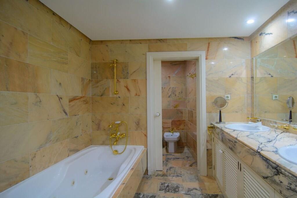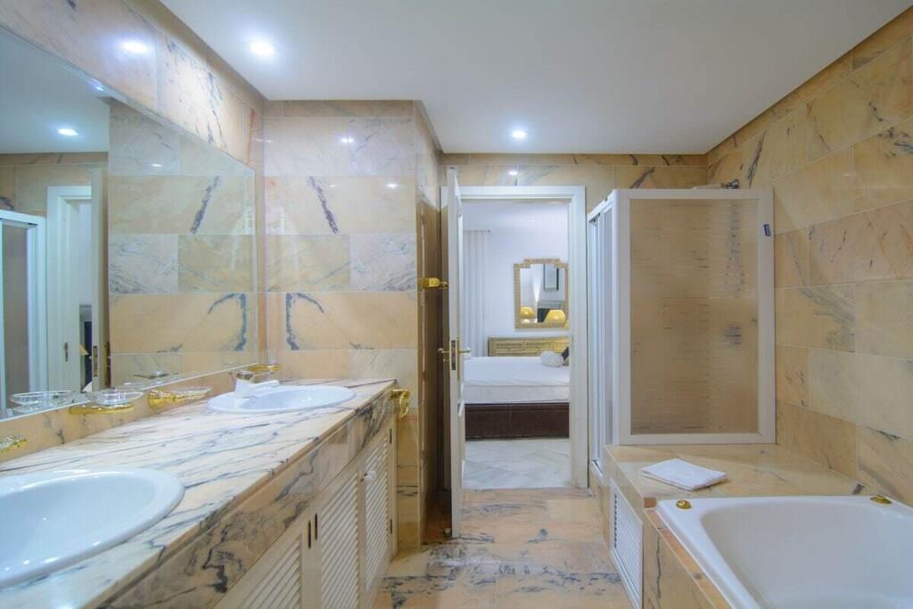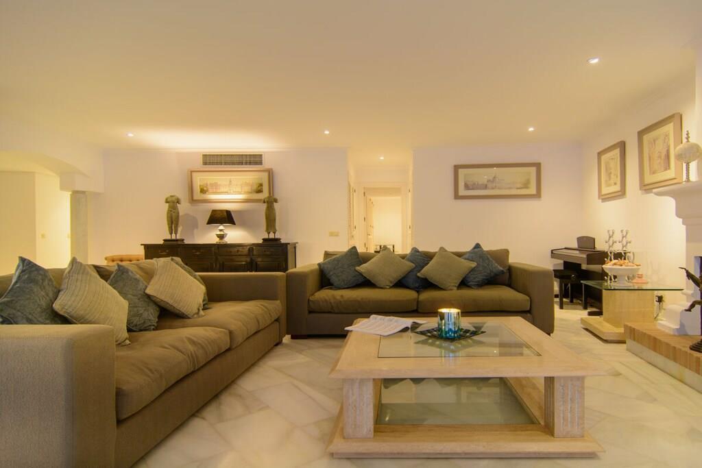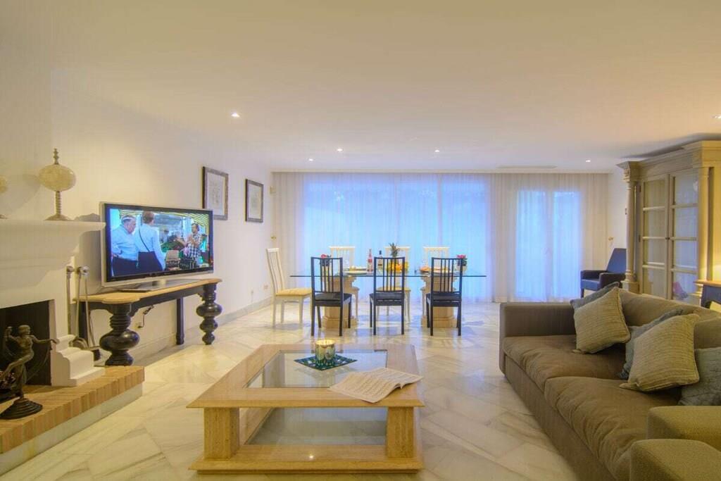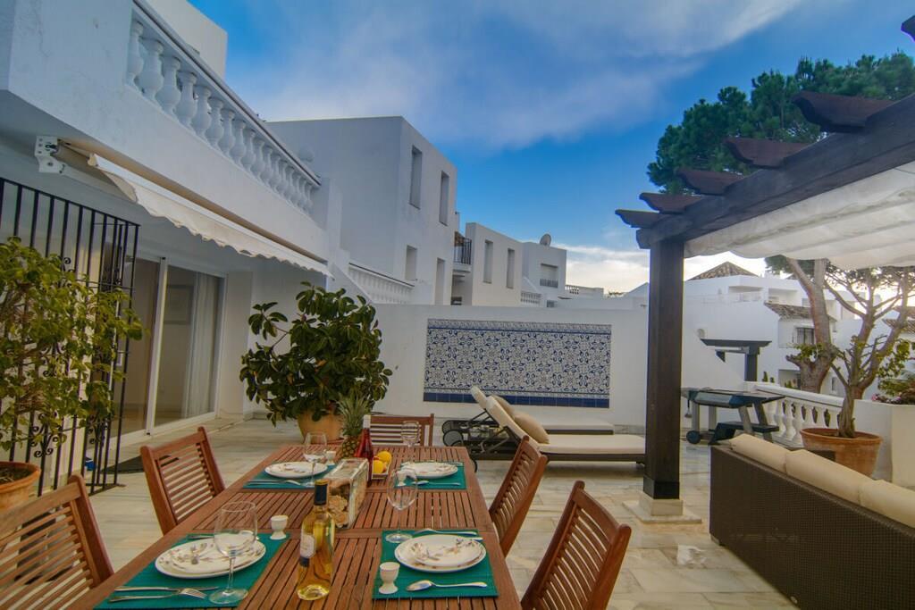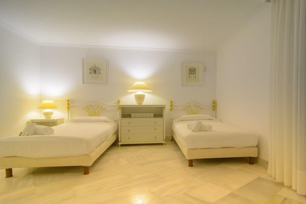 Genießen Sie die Vorteile einer exquisiten Unterkunft nur 150 Meter von Playa de la Vibora in der erstaunlichen White Pearl Beach Urbanisation mit drei Pools und Garten platziert. Die Wohnung ist geräumig (180m2) es hat drei Schlafzimmer (zwei von ihnen mit eigenem Bad), ein geräumiges Wohnzimmer mit einem Sitz- und einem Essbereich, eine saubere Küche und eine große Terrasse (75m2) mit Grill. ~ Innen Diese elegante Wohnung (180m2) verfügt über ein geräumiges Wohnzimmer mit einer Sitzecke und einem Essbereich. In der Sitzecke stehen zwei große bequeme Sofas neben einem Couchtisch vor einem Flachbildfernseher. Der Essbereich hat einen Glastisch für acht Personen und bietet einen schönen Blick auf die Terrasse. Die Fenster von Wand zu Wand und die Tür zur Terrasse lassen viel Licht in das Wohnzimmer eindringen. Der Glastisch steht auf eleganten Marmorsäulen. Die Sitzecke hat einen eleganten Marmortisch mit Glas und zwei bequeme große Sofas. Das Design ist elegant, Marmorfliesenböden, schöne und dezente gerahmte Grafiken, antike Möbel. In diesem Bereich gibt es einen Tisch, der ideal für einen Laptop ist, falls Sie während Ihres Aufenthalts arbeiten möchten. Das Hauptschlafzimmer ist mit einem bequemen Bett (180x200cm) ausgestattet und verfügt über große Schränke, Rattan-Schubladen, Spiegel und Lampen mit Lampenschirmen. Das voll ausgestattete Badezimmer hat eine Badewanne, ein Doppelwaschbecken und eine begehbare Dusche. Das zweite Schlafzimmer hat ein Doppelbett (150x190cm) und ein Einzelbett (90x190cm), große Kleiderschränke und Zugang zu einem Familienbad mit begehbarer Dusche. Das dritte Schlafzimmer hat zwei Einzelbetten (2x105x190cm), Nachttische, einen Spiegel und bietet Zugang zu einem eigenen Bad mit Badewanne, Doppelwaschbecken, begehbarer Dusche und Toilette. Die Küche verfügt über alle Geräte (Backofen, Mikrowelle, Ceranfeld, Kühlschrank, Gefrierschrank, Geschirrspüler, Kaffeemaschine, Toaster, Wasserkocher) und Zubehör für einen komfortablen Aufenthalt. Es gibt auch eine Waschküche mit Waschmaschine und Bügelbrett. ~ Terrasse Vom Wohnzimmer aus haben Sie Zugang zu einer unglaublichen 75m2 großen Terrasse mit herrlichem Blick auf den Garten und die Pools. Hier gibt es einen großen Esstisch für sechs Personen und eine Sitzecke mit einem großen Sofa, bequemen Sesseln und einem Couchtisch. Auf der Terrasse befindet sich auch ein Gasgrill, so dass Sie die Zeit mit Ihrer Familie und Ihren Freunden in vollen Zügen genießen können. Die zwei Sonnenliegen machen den Aufenthalt hier noch angenehmer. Versorgungseinrichtungen: Internet, TV, Klimaanlage, Backofen, Mikrowelle, Vitrokeramik, Kühlschrank, Gefrierschrank, Geschirrspüler, Kaffeemaschine, Toaster, Wasserkocher, Waschmaschine. Räume: 3 Schlafzimmer, 3 Bäder, großes Wohn- und Esszimmer, 1 Küche, Hauswirtschaftsraum. Möblierung: Einzelbetten (3), Doppelbett (2), Esstisch (8), Esstisch im Freien (6), Sitzecke im Freien (6). Alle Schlafzimmer haben Kleiderschränke. Sonstiges: Bettwäsche, Handtücher, Internet und Garagenparkplatz inklusive. Draußen: Terrasse, gemeinsames beheiztes Schwimmbecken, Kinderbecken, gemeinsamer Garten, Garagenstellplatz, Parkplatz auf der Straße.