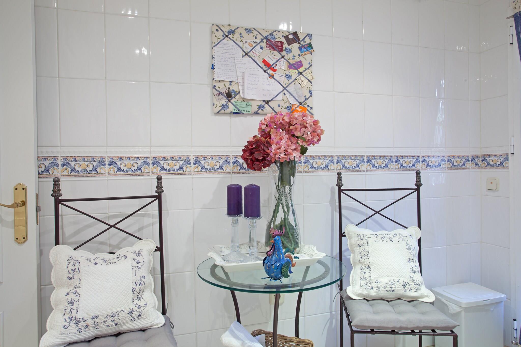 , Kjøkken(brødrister, stekovn), soveværelse(dobbeltseng), soveværelse(enkeltseng, enkeltseng), bad(badekar, badekar, dusj), Internett-tilgang, Internett-tilgang, Hagemøbler, kaffetrakter, mikrobølgeovn, oppvaskmaskin, kjøleskap, fryser, balkon, terrasse, hage, svømmebasseng(deles med andre gjester)