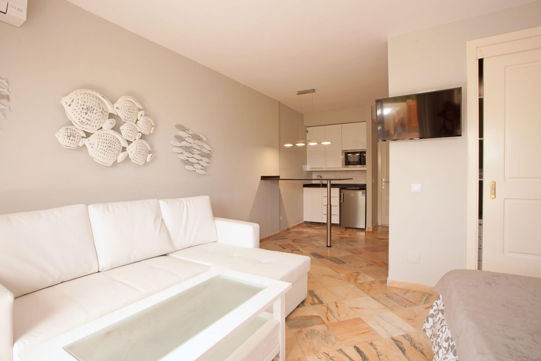 Dette koselige 50 m² store studioet i Marbella er ideelt for 2 personer og tilbyr en perfekt beliggenhet ved stranden. Det ligger kun 30 meter fra sandstranden og innen gangavstand til en rekke lokale fasiliteter. Du finner en restaurant kun 30 meter unna, og et supermarked bare 300 meter fra eiendommen. Offentlig transport er lett tilgjengelig, med en busstasjon 300 meter unna. Studioet ligger også 2 km fra en golfbane, 4 km fra sentrum og 45 km fra nærmeste flyplass. Eiendommen ligger i en rolig sone ved sjøen, og tilbyr en rolig atmosfære for et avslappende opphold. Studioet er utstyrt med moderne fasiliteter for å sikre komfort under oppholdet. Den har en heis for enkel tilgang, sentralvarme og klimaanlegg i hele huset. Du kan slappe av på den 7 m² store terrassen eller nyte det felles svømmebassenget. Andre fasiliteter inkluderer vaskemaskin, strykejern, hårføner og TV for underholdning. Utendørsparkering er tilgjengelig i samme bygning, noe som gjør det praktisk for de som har bil. Det åpne kjøkkenet er fullt utstyrt for alle dine matlagingsbehov, med kjøleskap, mikrobølgeovn, fryser og alt nødvendig servise, bestikk og kjøkkenutstyr. Du kan tilberede måltider med kaffemaskin, brødrister, vannkoker og juicepresse. Dette studioet tilbyr et komfortabelt og praktisk opphold med enkel tilgang til stranden og alle nødvendige fasiliteter for en perfekt ferie i Marbella.