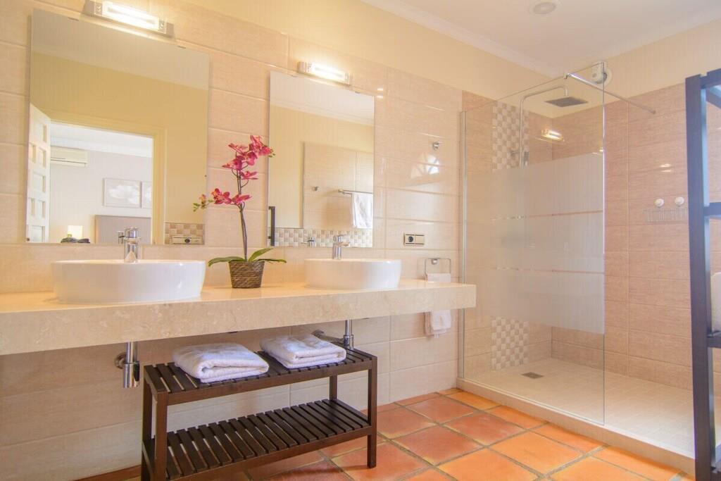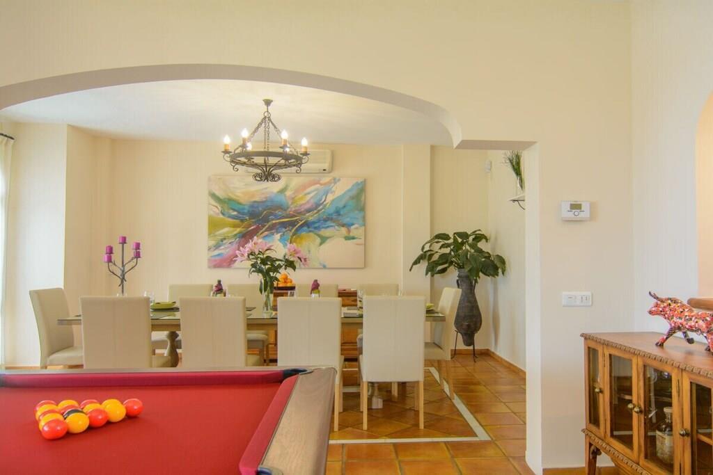 Diese Villa mit sechs Schlafzimmern (395m2) auf einem Grundstück von 700 m2 mit Salzwasser beheizten Pool (9,5mx5m) in der Region Marbella befindet sich am Strand in der traditionellen spanischen Stadt San Pedro de Alcantara in einer ruhigen Wohnanlage. Mit nur 400 Metern zum Strand und 600 Metern zum Stadtzentrum von San Pedro ist es in einer perfekten Lage. Puerto Banus ist gleich um die Ecke, 3 Minuten mit dem Auto und ein 30-minütiger Spaziergang auf der Promenade am Strand, die den ganzen Weg nach Marbella führen. Die Villa bietet 395m2 verteilt auf 3 Etagen, 6 Schlafzimmer, alle mit neuen Betten und TV, 3 Schlafzimmer mit eigenem Bad und 3 mit Zugang zur oberen Terrasse. In dem geräumigen Essbereich können 12 Personen bequem zusammen essen. Das Wohnzimmer hat eine schöne Sitzecke mit Ledersofas rund um den Fernseher und den Kamin und es hat auch einen Billardtisch, die große Unterhaltung für Sie und Ihre Lieben bietet. Von hier aus haben Sie auch Zugang zur Hauptterrasse des Hauses mit großzügigen Sitzgelegenheiten. Die Küche ist im rustikalen spanischen Stil gebaut und dekoriert und bietet moderne Geräte, die für ein schönes Kocherlebnis sorgen. Ein großes Plus ist, dass in der Küche eine Wasseraufbereitungsanlage installiert ist, d.h. das Leitungswasser in der Küche ist zu 100% trinkbar, was Ihnen Geld und ständige Fahrten zum Supermarkt erspart.Im Halbkeller befinden sich 2 Schlafzimmer und ein großer Unterhaltungsbereich mit Tischtennisplatte, Fußballtisch, Fernseher und Playstation. Auf dem Grundstück (700 m2) gibt es einen großen beheizten Salzwasser-Pool (9,5 x 5 m) mit einer Tiefe von 1 m bis 1,9 m, Sonnenliegen und eine große Außenküche mit Grill und Essbereich. ~ Innen Im Erdgeschoss befinden sich das Wohnzimmer, die Küche und ein Service-WC. Vom Flur aus gelangt man über eine Treppe in das Hauptschlafzimmer mit eigenem Bad, drei Gästeschlafzimmer und eine Terrasse. Im Halbkeller befinden sich zwei Gästeschlafzimmer mit jeweils eigenem Bad, ein Aufenthaltsraum und ein Unterhaltungsbereich mit Tischtennisplatte, Fußballtisch, großem Fernseher und Playstation. Das Wohnzimmer ist ein sehr angenehmer Raum, da es durch zwei große Glasschiebetüren mit der Terrasse verbunden ist, von der aus man einen schönen Blick auf den Garten und den privaten Pool hat. Der Billardtisch befindet sich in der Mitte des Wohnzimmers, zwischen der Lounge und dem Essbereich, und bietet Unterhaltung für alle Altersgruppen. Die schmiedeeisernen Kronleuchter verleihen dem Raum einen eleganten Touch. Der Essbereich ist um einen Holztisch für 12 Personen herum aufgebaut und vermittelt durch die Holzmöbel eine warme Atmosphäre. Die Sitzecke besteht aus drei großen bequemen Sofas und einem Couchtisch aus Holz. Von hier aus können Sie Ihre Fernsehsendung auf dem Flachbildfernseher genießen, der hoch an der Ziegelwand angebracht ist. Die beiden Lampen, die hoch an den Ziegelwänden angebracht sind, ermöglichen es Ihnen, den Raum im gedämpften Licht zu genießen. Auf dieser Ebene befindet sich die sehr einladende Küche mit großen Fenstern, durch die natürliches Licht einfällt. Die Holzmöbel und die Backsteinwände verwandeln das Kochen in eine sehr angenehme, gemütliche Tätigkeit. Obwohl die Möbel und das Aussehen der Küche klassisch sind, sind die Geräte alle modern. Die Kücheninsel ist mit Glaskeramik, einem Herd und einem leistungsstarken Dunstabzug ausgestattet. Die Küche ist mit einem Holztisch für vier Personen ausgestattet, falls Sie mit Ihren Liebsten gemütlich frühstücken möchten. Außerdem ist ein Wasserreinigungssystem installiert, so dass das Leitungswasser in der Küche unbedenklich zu trinken ist. Wenn Sie die Treppe hinaufgehen, gelangen Sie auf die erste Ebene der Villa. Hier finden Sie das Hauptschlafzimmer mit eigenem Bad und drei Gästezimmer, die sich ein Familienbad teilen. Das Hauptschlafzimmer hat ein Doppelbett (180x200 cm), sehr geräumige hölzerne Einbauschränke, einen Schminktisch mit Spiegel, eine elegante Holzbank. Durch eine große Schiebetür gelangt man auf die Terrasse im Obergeschoss, von der aus man einen schönen Blick auf die Urbanisation hat. Das eigene Badezimmer verfügt über ein Doppelwaschbecken, eine große begehbare Dusche, eine Toilette und ein Bidet. Das Fenster lässt natürliches Licht herein. Die hölzernen Badezimmermöbel und die eleganten Fliesen verleihen diesem Raum ein traditionelles Ambiente. Zwei der Gästeschlafzimmer haben jeweils zwei Einzelbetten (90x200cm). Das erste Gästeschlafzimmer bietet einen Ausgang zur Terrasse im ersten Stock. Durch die Fenster dieses Schlafzimmers können Sie die schöne Urbanisation sowie den Garten und den Poolbereich bewundern. Sie haben viel Stauraum, da das Schlafzimmer über geräumige Einbauschränke verfügt. Die Nachttische mit Lampen vervollständigen den modernen Look dieses Gästezimmers. Das zweite Gästeschlafzimmer hat drei große Fenster, die einen weiten Blick auf die exotische Vegetation bieten. Dieses Schlafzimmer hat eine Kommode mit einem großen Spiegel darüber und einen Nachttisch mit Lampe mit Schirm. Das dritte Gästezimmer hat einen Schminktisch mit Spiegel, Nachttische mit Lampen und einen geräumigen Einbauschrank. Von diesem Schlafzimmer aus haben Sie Zugang zur Terrasse mit Blick auf das Grundstück und die Urbanisation. Das Familienbadezimmer, das von diesen Schlafzimmern gemeinsam genutzt wird, verfügt über eine geräumige, begehbare Dusche, ein Doppelwaschbecken, eine Toilette und ein Bidet. Die Möbel sind aus Holz, die Fliesen sind traditionell. Im Halbkeller befinden sich zwei Gästeschlafzimmer mit je einem Bad en suite. Das erste Gästezimmer hat zwei Einzelbetten (90x200cm), einen Flachbildfernseher, Nachttische mit Lampen, ein kleines Fenster und Einbauschränke. Das zweite Gästeschlafzimmer hat zwei Einzelbetten (90x200cm). Die zwei Nachttische mit Lampen, der Flachbildfernseher, das Fenster und der Einbauschrank m