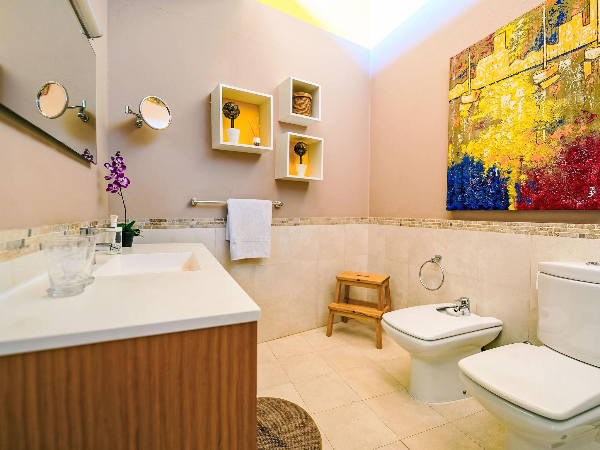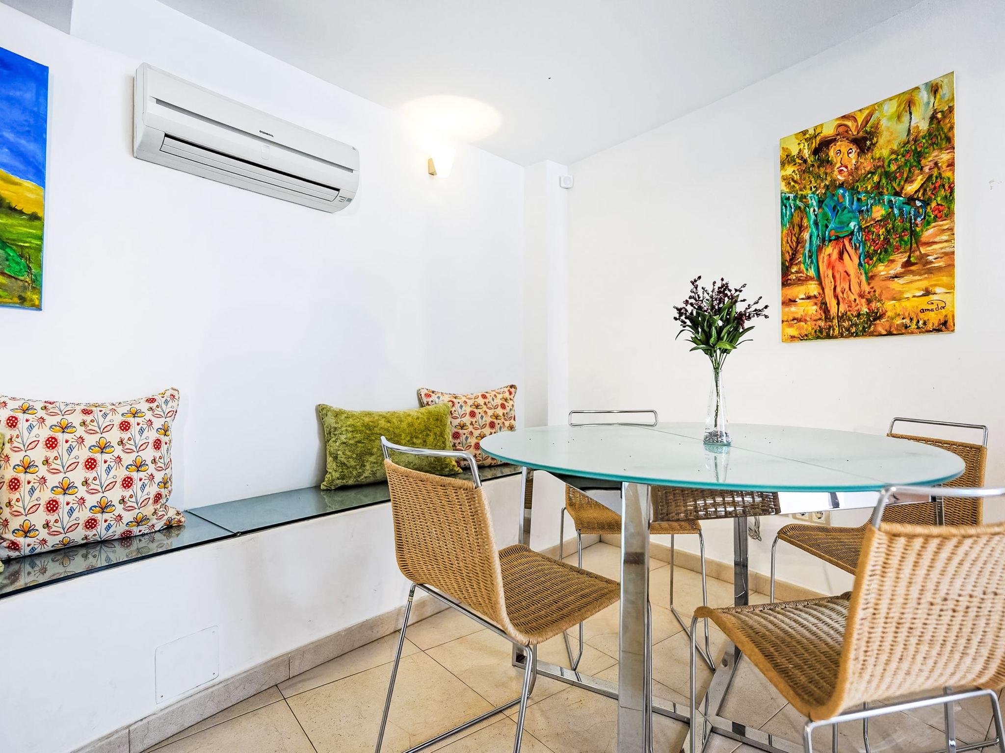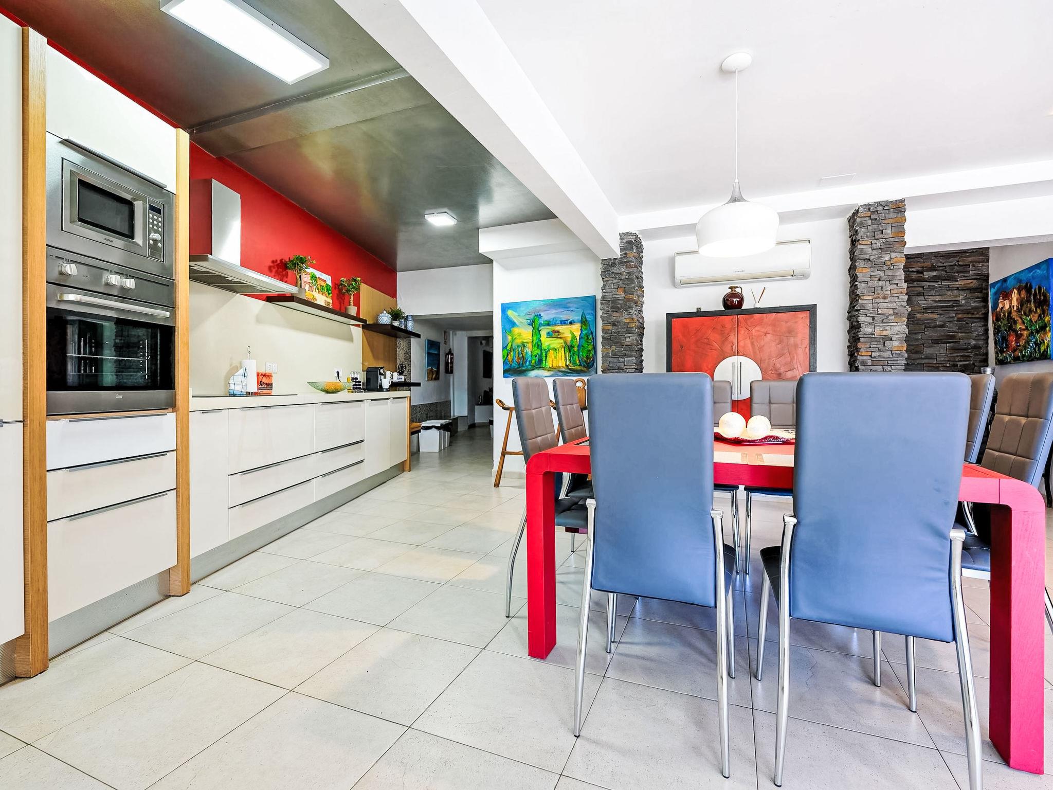 7-room house 280 m2 on 3 levels. Modern and luxurious furnishings: living/dining room with dining nook, satellite TV, digital TV, radio, DVD and air conditioning. Exit to the garden. 1 room with 1 french bed, shower/WC and air conditioning. 1 room with 1 double bed, 1 pull-out bed and shower/WC. 1 room with 2 beds, satellite TV and digital TV. Open kitchen (oven, dishwasher, 4 ceramic glass hob hotplates, toaster, kettle, microwave, freezer, electric coffee machine) with dining nook. On the lower ground floor: 2 rooms, each room with 1 french bed. Patio. Terrace furniture, barbecue, deck chairs. Facilities: washing machine, dryer, safe, iron, children's high chair, baby cot for up to 2 year olds, hair dryer. Internet (WiFi, free). Parking (fenced). Please note: suitable for families. Non-smoking house. VV-35-1-0001177 // Reg. Nr.: ESFCTU0000350150009969690000000000000VV-35-1-00011776