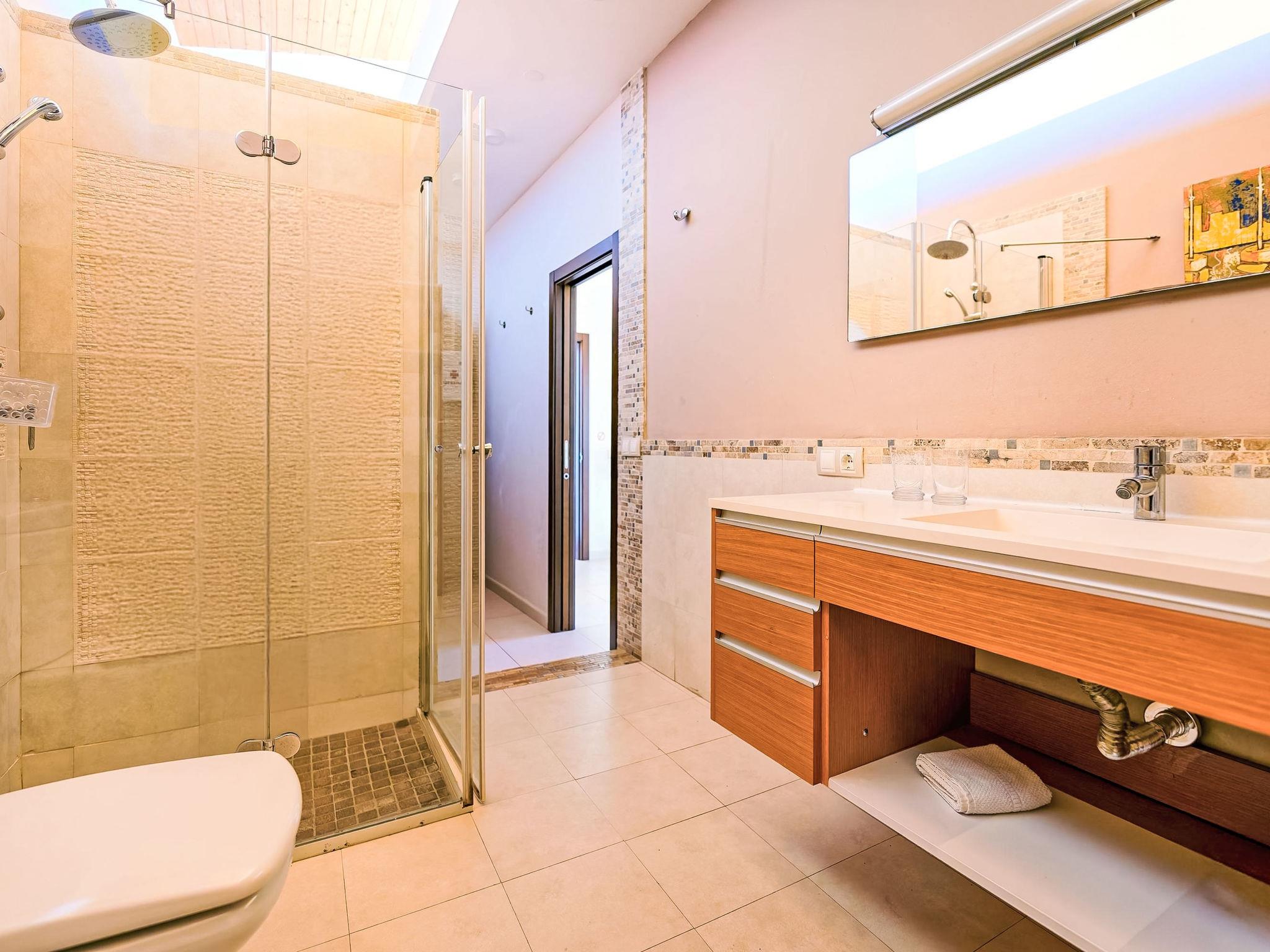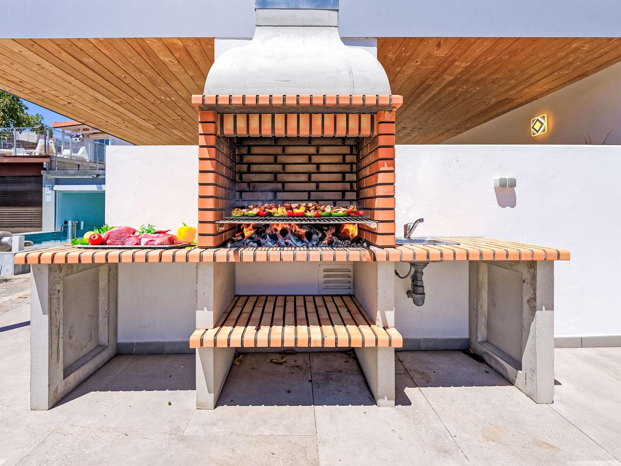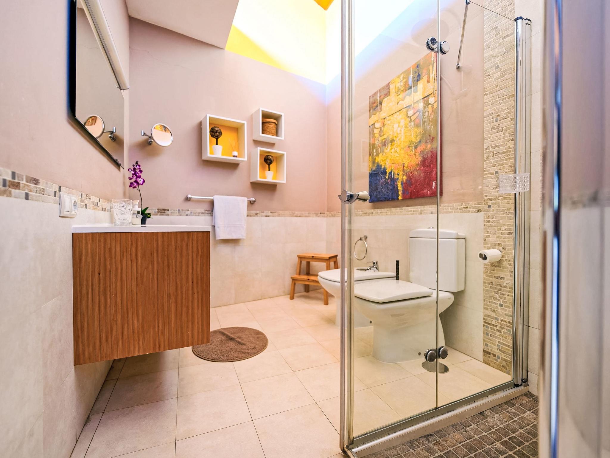 7-room house 280 m2 on 3 levels. Modern and luxurious furnishings: living/dining room with dining nook, satellite TV, digital TV, radio, DVD and air conditioning. Exit to the garden. 1 room with 1 french bed, shower/WC and air conditioning. 1 room with 1 double bed, 1 pull-out bed and shower/WC. 1 room with 2 beds, satellite TV and digital TV. Open kitchen (oven, dishwasher, 4 ceramic glass hob hotplates, toaster, kettle, microwave, freezer, electric coffee machine) with dining nook. On the lower ground floor: 2 rooms, each room with 1 french bed. Patio. Terrace furniture, barbecue, deck chairs. Facilities: washing machine, dryer, safe, iron, children's high chair, baby cot for up to 2 year olds, hair dryer. Internet (WiFi, free). Parking (fenced). Please note: suitable for families. Non-smoking house. VV-35-1-0001177 // Reg. Nr.: ESFCTU0000350150009969690000000000000VV-35-1-00011776