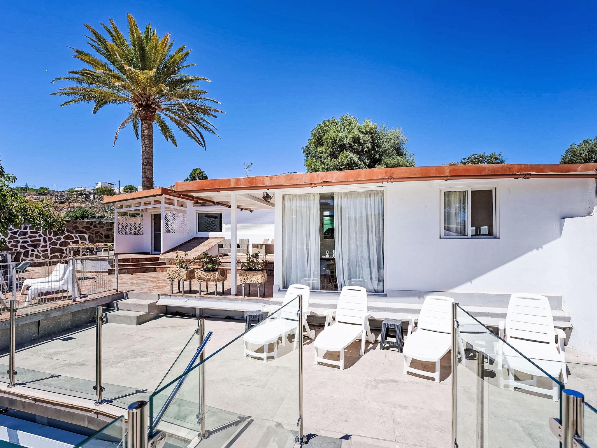 The number of open rooms will depend on the number of adults involved in the reservation. For example, 4 persons for 3D two rooms, 6 persons for 3D 3 bedrooms. Large, modern, luxurious villa "Villa Parralito Ingenio", surrounded by trees. In the centre of Ingenio, in a quiet, sunny position. Private: park, garden, orchard, swimming pool (6 x 2 m, seasonal availability: 01.Jan. - 31.Dec.). Outdoor shower, barbecue. In the house: WiFi, playroom, air conditioning, washing machine, tumble dryer. Parking (for 3 cars). Shop, grocery, supermarket 100 m, restaurant 600 m, bus stop "Salida del Sequero" 900 m, sandy beach "5000". Golf course (18 hole) 35 km. Please note: car recommended. Baby equipment on request. The owner does not accept any youth groups. Neighbourhood highly sensitive to noise. Quietness and good behaviour expected.