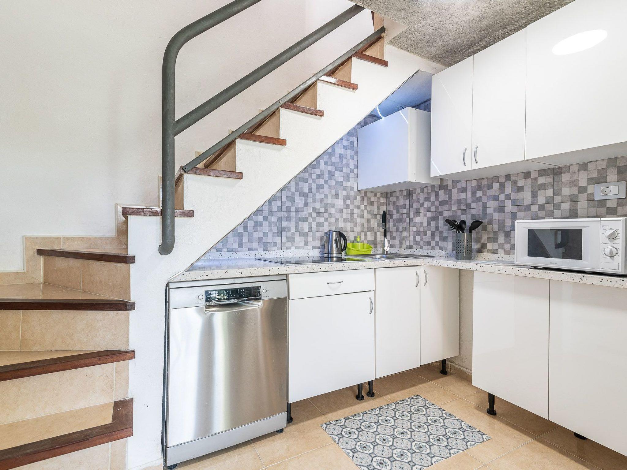 Inside, a newly renovated duplex awaits you, equipped with all the amenities to make your stay as comfortable as possible. In addition to satellite TV and WiFi access, a capsule coffee machine, dishwasher, kettle and mini oven are also available. A fan is available to keep the rooms at a pleasant temperature. There is also a washing machine for your sole use to make your everyday life easier.
