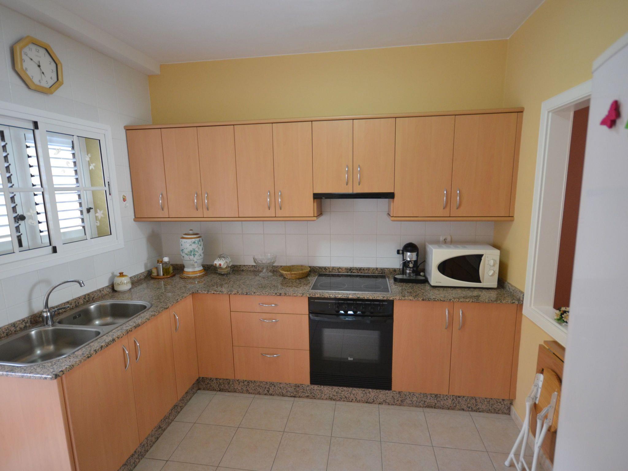 Equipped with two terraces, a balcony on the upper floor, private sunbeds, electric awning on the front terrace and manual awning on the back terrace, tables and chairs on the terraces. TV with international channels in the main bedroom. Also the other TV in living room, ground floor is Smart TV with access also to Movistar TV and Neftlix included, wifi throughout the house quality, the kitchen has large fridge with freezer, hob, oven, microwave, coffee maker, kettle, toaster, crockery etc etc etc.