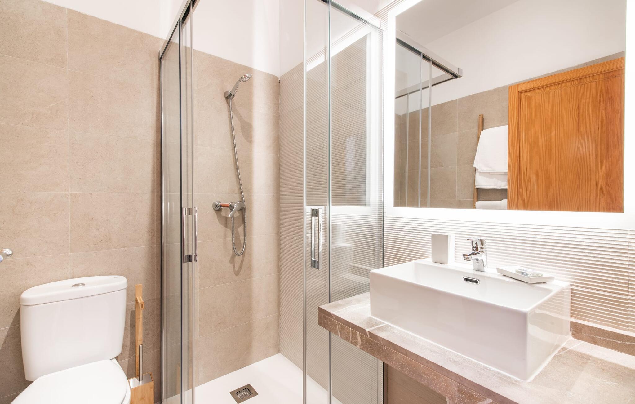- WC med varmt og kaldt vann, Dusj