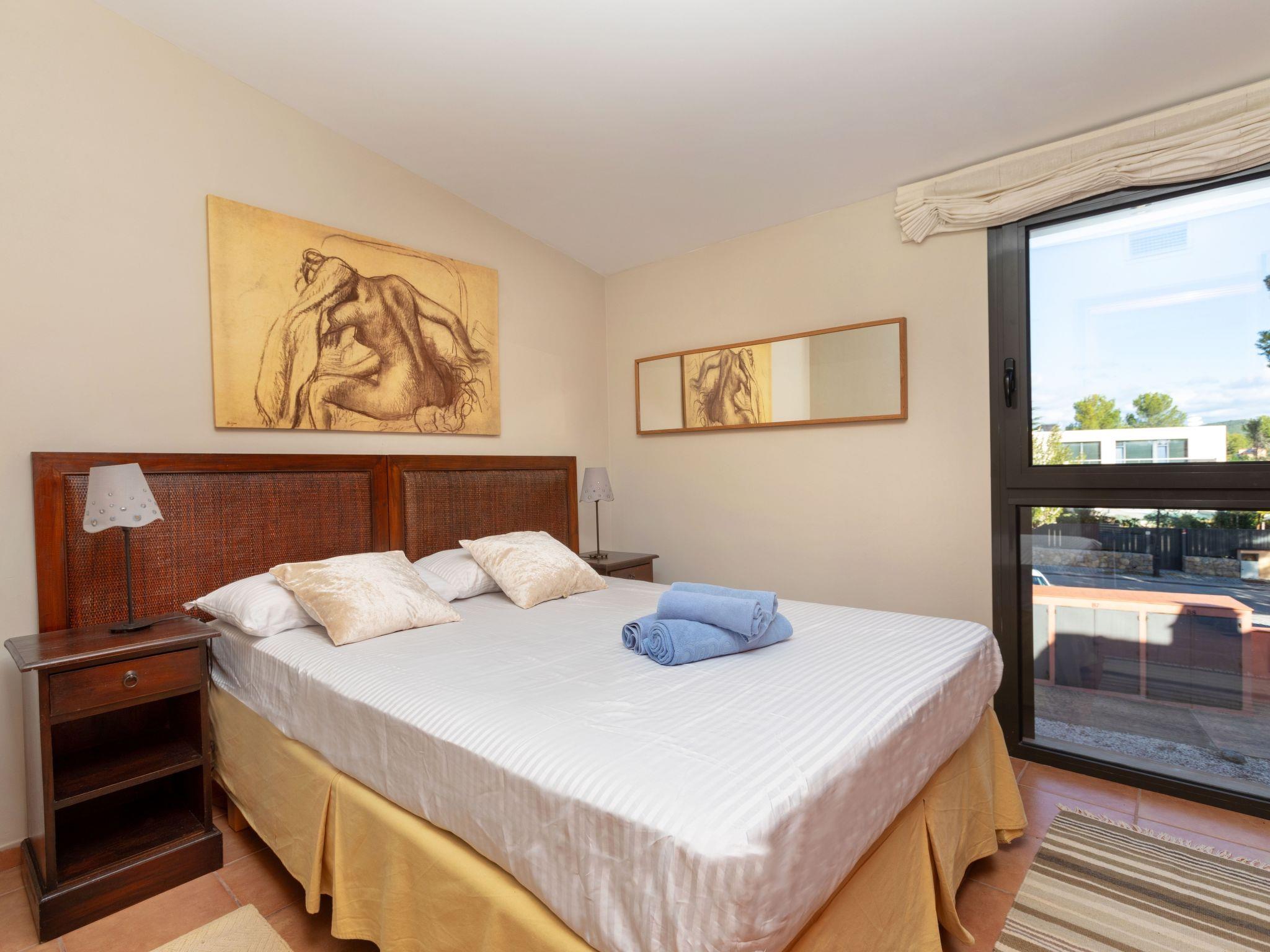 "Bonmont II", 4-room apartment 97 m2. Comfortable and cosy furnishings: living/dining room with dining table and digital TV. Exit to the terrace. 1 room with 1 french bed (150 cm, length 190 cm), bath/shower/WC and TV. 1 room with 2 beds (90 cm, length 190 cm). 1 room with 1 french bed (140 cm, length 190 cm). Kitchen (oven, dishwasher, 4 ceramic glass hob hotplates, toaster, kettle, microwave, electric coffee machine). Bath/WC. Air-conditioning. No heating option. Terrace. Terrace furniture, barbecue. Beautiful view of the countryside. Facilities: washing machine, iron, hair dryer. Parking at the house. Please note: no lift. HUTT-005923 // Reg. Nr.: ESFCTU00004303200013631600000000000000000HUTT-0059233