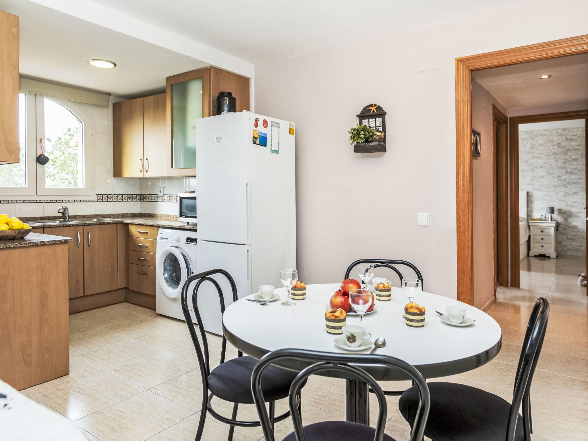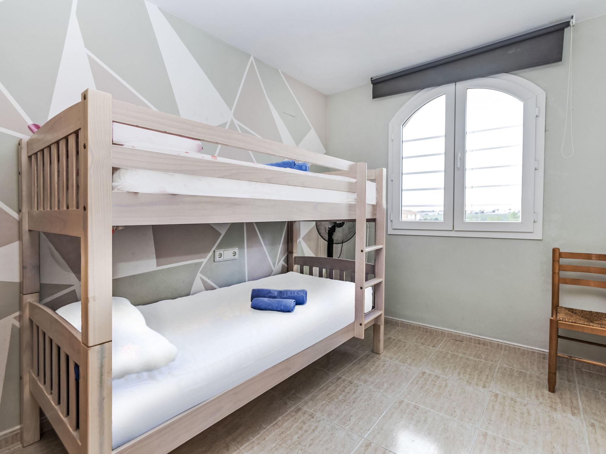 "Rodoreda", 3-room apartment 80 m2. Simple and practical furnishings: living/dining room with dining table, digital TV and air conditioning. Exit to the terrace. 1 room with 1 french bed (150 cm), shower/bidet/WC and air conditioning. Exit to the balcony. 1 room with 1 x 2 bunk beds (90 cm). Kitchen (3 ceramic glass hob hotplates, toaster, kettle, microwave, electric coffee machine). Shower/WC. No heating option. Terrace furniture. Facilities: washing machine, iron, hair dryer. Parking. Please note: no lift. HUTT-008180 // Reg. Nr.: ESFCTU00004303200011844200000000000000000HUTT-0081807