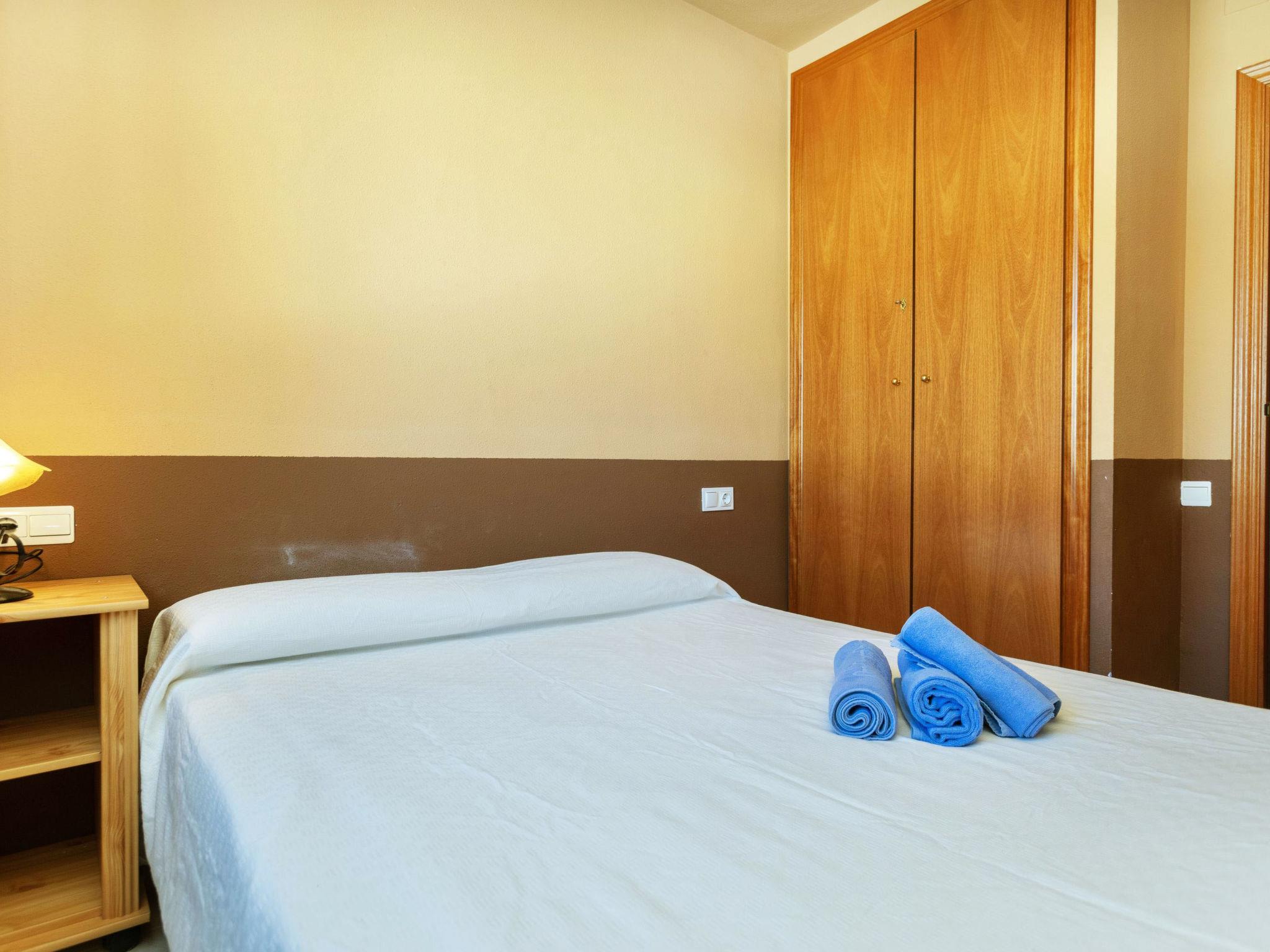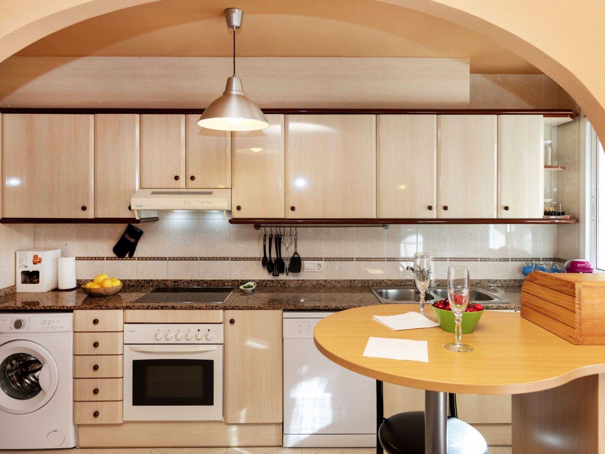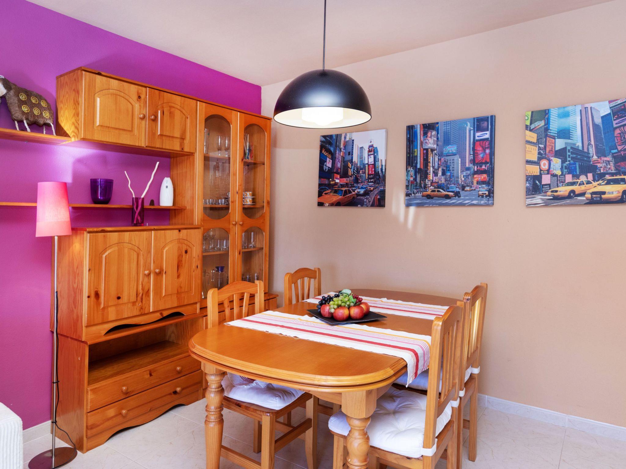"Miami Dorada II", 3-room apartment 72 m2. Comfortable and cosy furnishings: living/dining room with dining table, digital TV and fan. Exit to the balcony. 1 room with 1 double bed (135 cm), electric heating and fan. 1 room with 1 x 2 bunk beds (90 cm), electric heating and fan. Open kitchen (oven, dishwasher, 4 ceramic glass hob hotplates, toaster, kettle, microwave, electric coffee machine, combination microwave). Bath/bidet/WC. Large balcony. Balcony furniture. View of the swimming pool. Facilities: washing machine, iron, children's high chair, hair dryer. Internet (WiFi, free). Parking space n 12 (1 car) at the house. Please note: suitable for families. TV only ES. No lift. HUTT-013598 // Reg. Nr.: ESFCTU00004303200011747600000000000000000HUTT-0750303