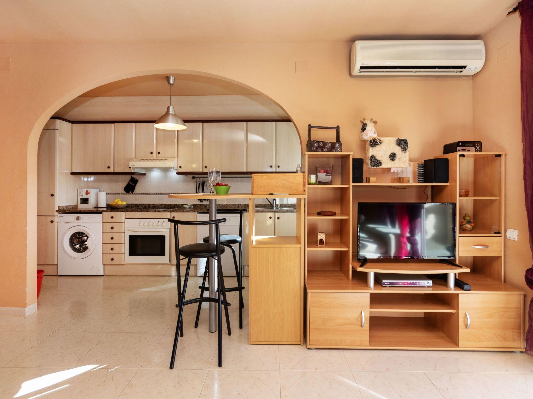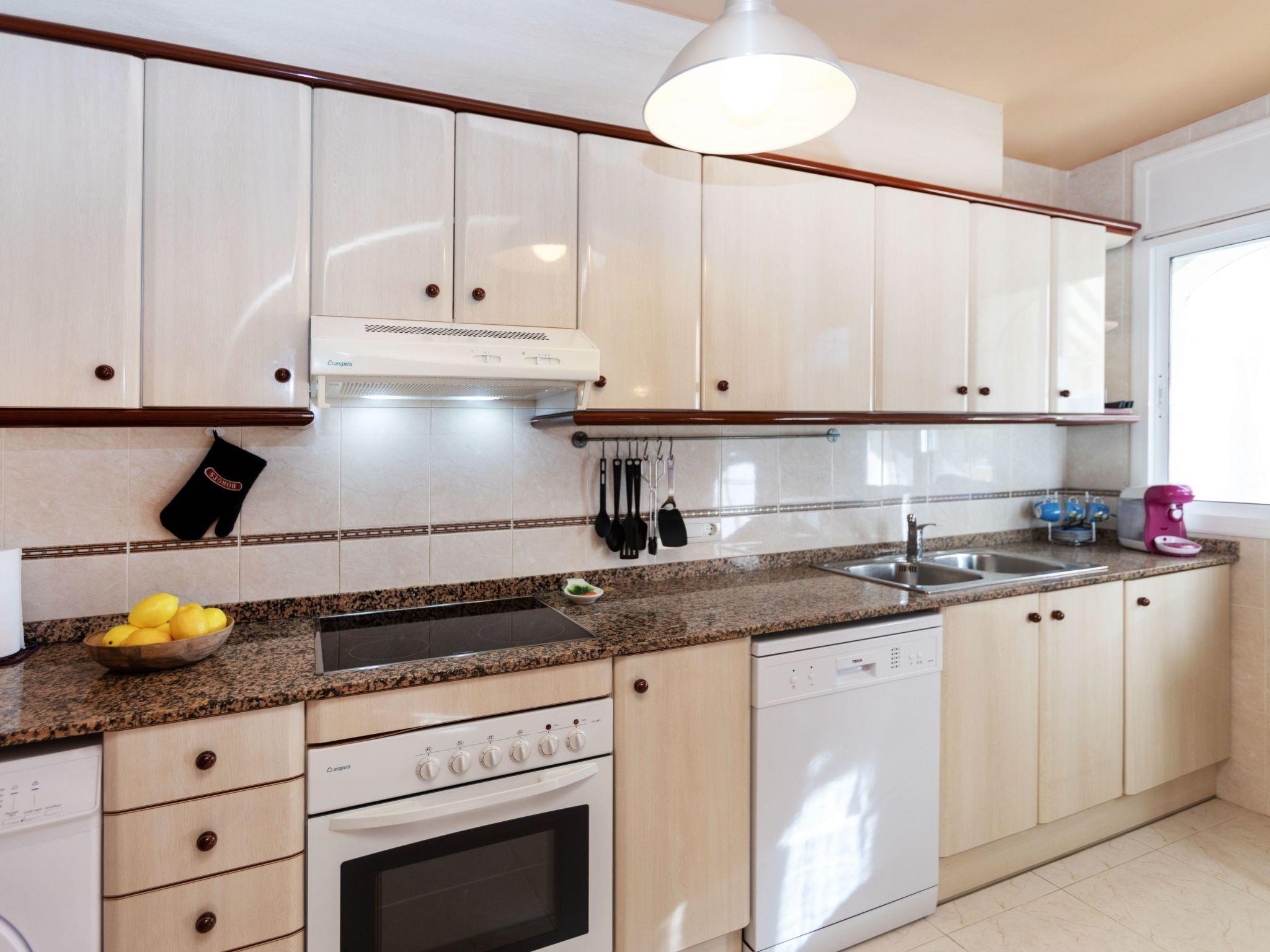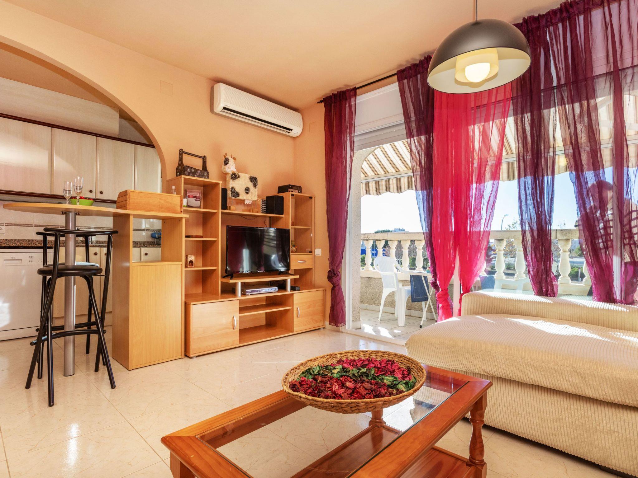"Miami Dorada II", 3-room apartment 72 m2. Comfortable and cosy furnishings: living/dining room with dining table, digital TV and fan. Exit to the balcony. 1 room with 1 double bed (135 cm), electric heating and fan. 1 room with 1 x 2 bunk beds (90 cm), electric heating and fan. Open kitchen (oven, dishwasher, 4 ceramic glass hob hotplates, toaster, kettle, microwave, electric coffee machine, combination microwave). Bath/bidet/WC. Large balcony. Balcony furniture. View of the swimming pool. Facilities: washing machine, iron, children's high chair, hair dryer. Internet (WiFi, free). Parking space n 12 (1 car) at the house. Please note: suitable for families. TV only ES. No lift. HUTT-013598 // Reg. Nr.: ESFCTU00004303200011747600000000000000000HUTT-0750303