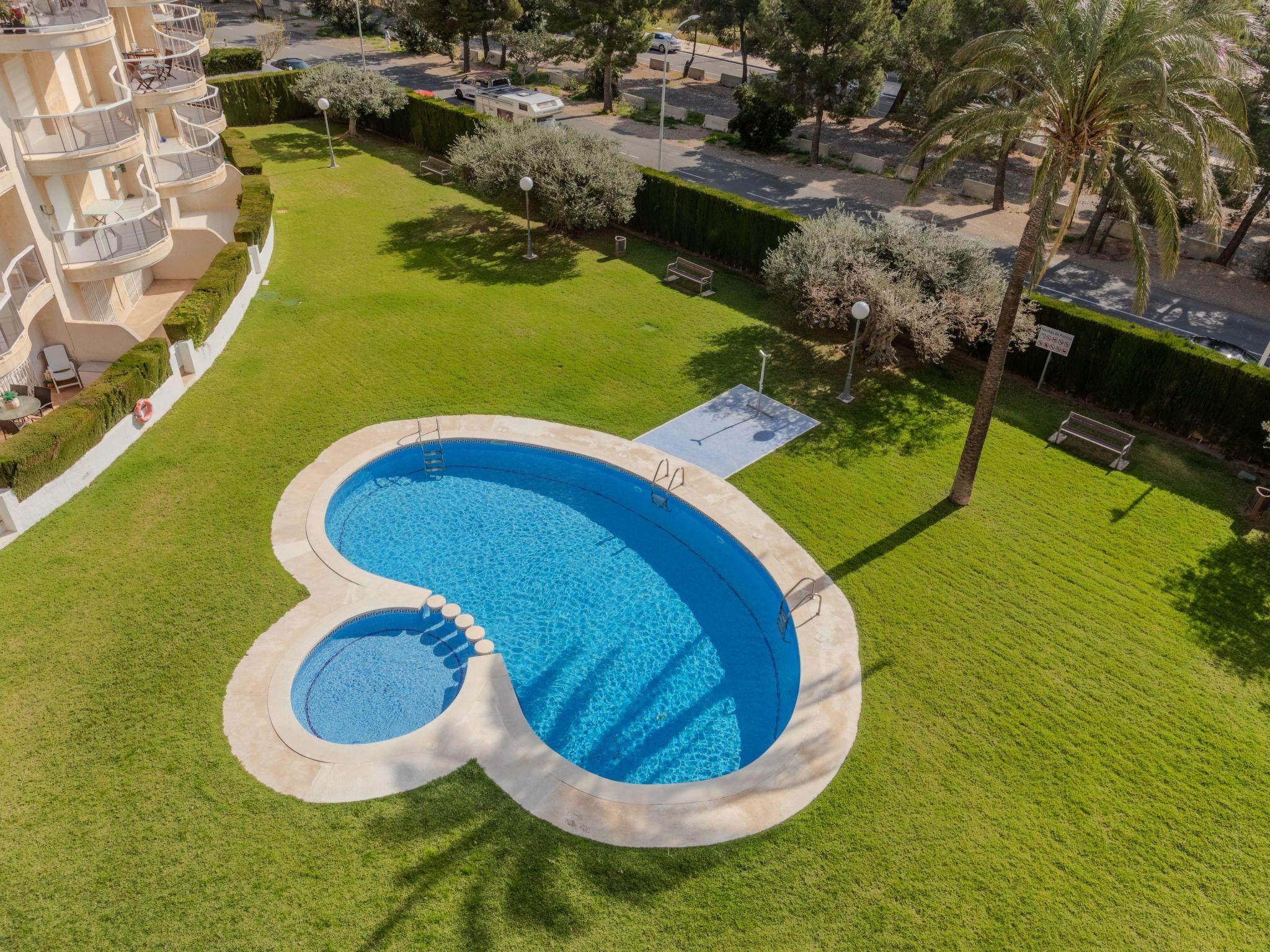 Beautiful, cosy apartment block "Malibu Canales". In the centre of Miami Platja, 500 m from the sea. For shared use: property, garden with lawn 70 m2, swimming pool angular (15 x 6 m). Outdoor shower, parking. Supermarket 250 m, restaurant 50 m, bus stop 2 km, swimming bay 500 m. Golf course (18 hole) 5 km. Please note: railway line 2 km from the property.