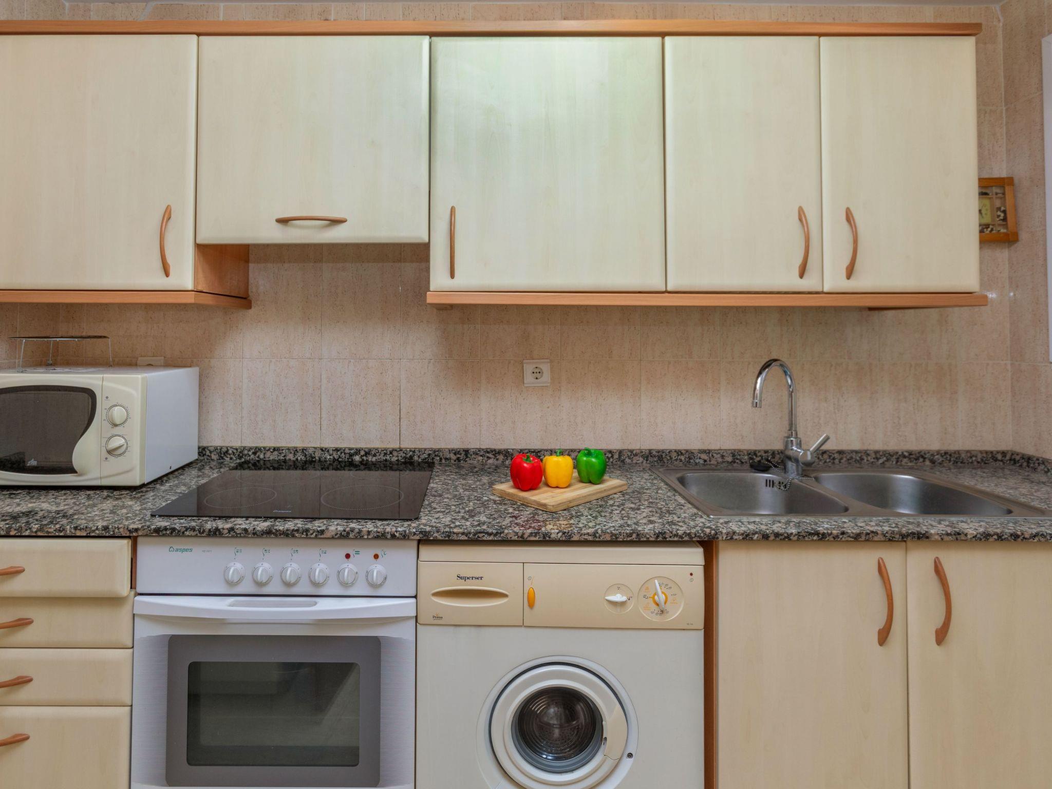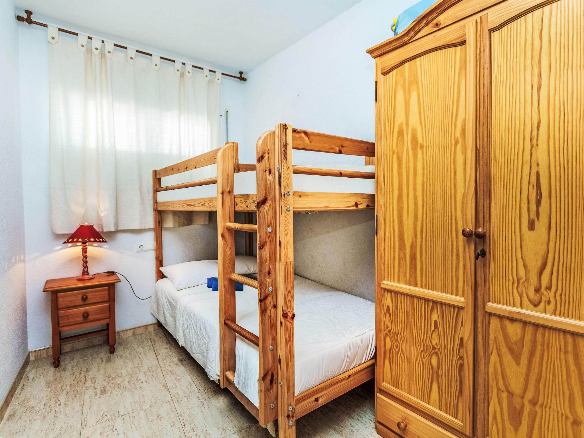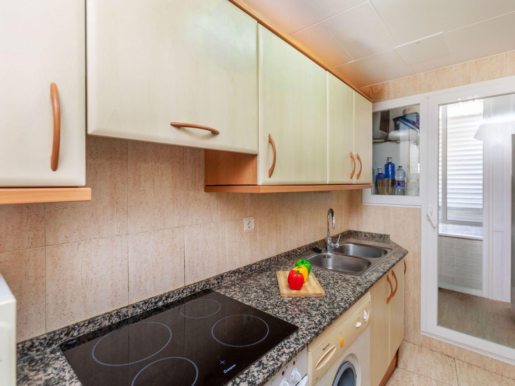 "Malibu Canales", 3-room apartment 60 m2 on 4th floor. Comfortable and modern furnishings: living/dining room 18 m2 with dining table and digital TV. Exit to the terrace. 1 room with 1 french bed (135 cm), fan. 1 room, 1 bunk beds (90 cm). Kitchen (oven, 4 ceramic glass hob hotplates, toaster, kettle, microwave). Bath/bidet/WC. No heating option. Large terrace 5 m2. Terrace furniture. View of the sea. Facilities: washing machine, dryer, iron, hair dryer. Internet (WiFi, free). Garage space n 23. Maximum 1 small pet/ dog allowed. HUTT-071405 // Reg. Nr.: ESFCTU00004303200007344400000000000000HUTT-071405-242