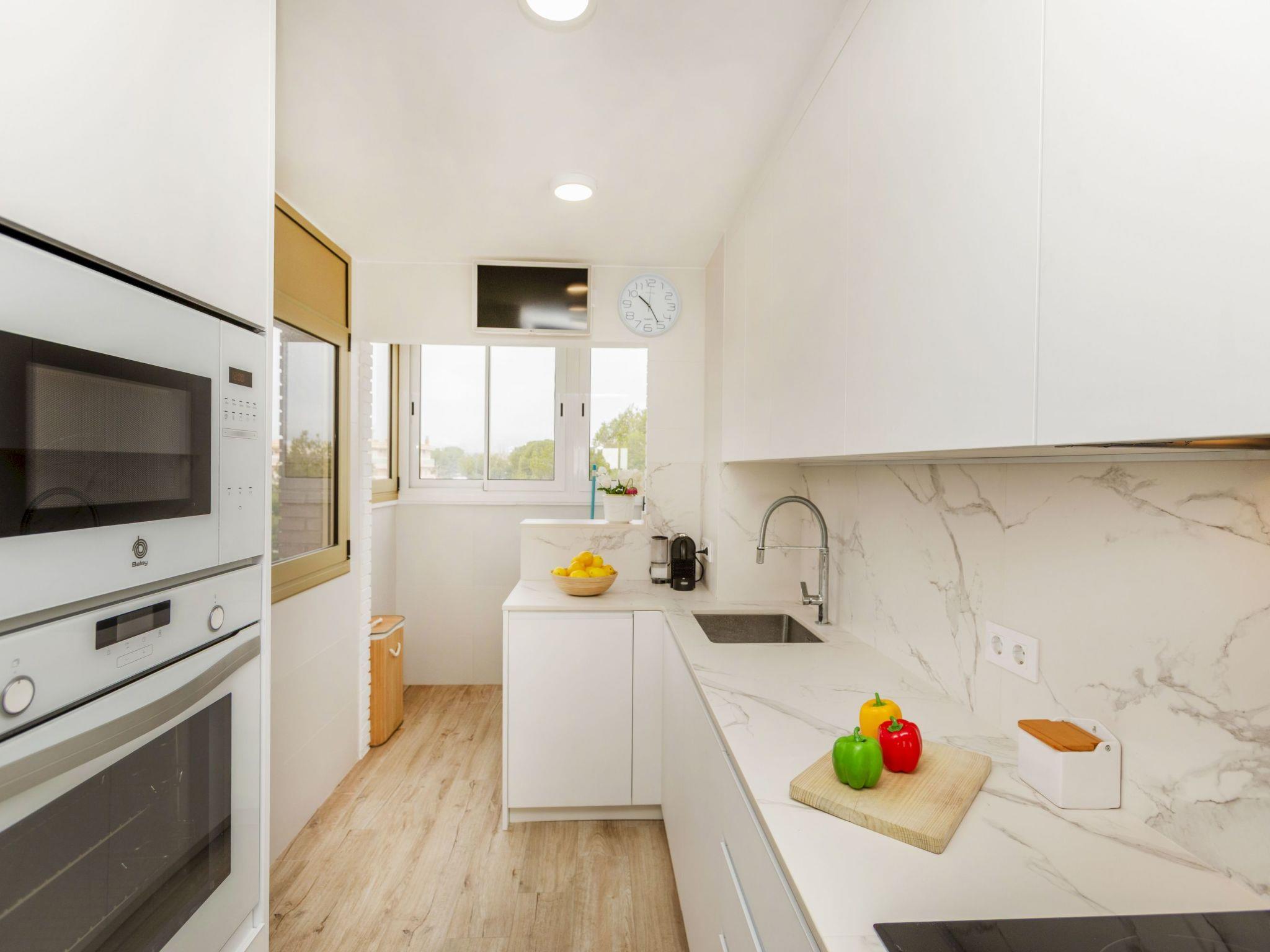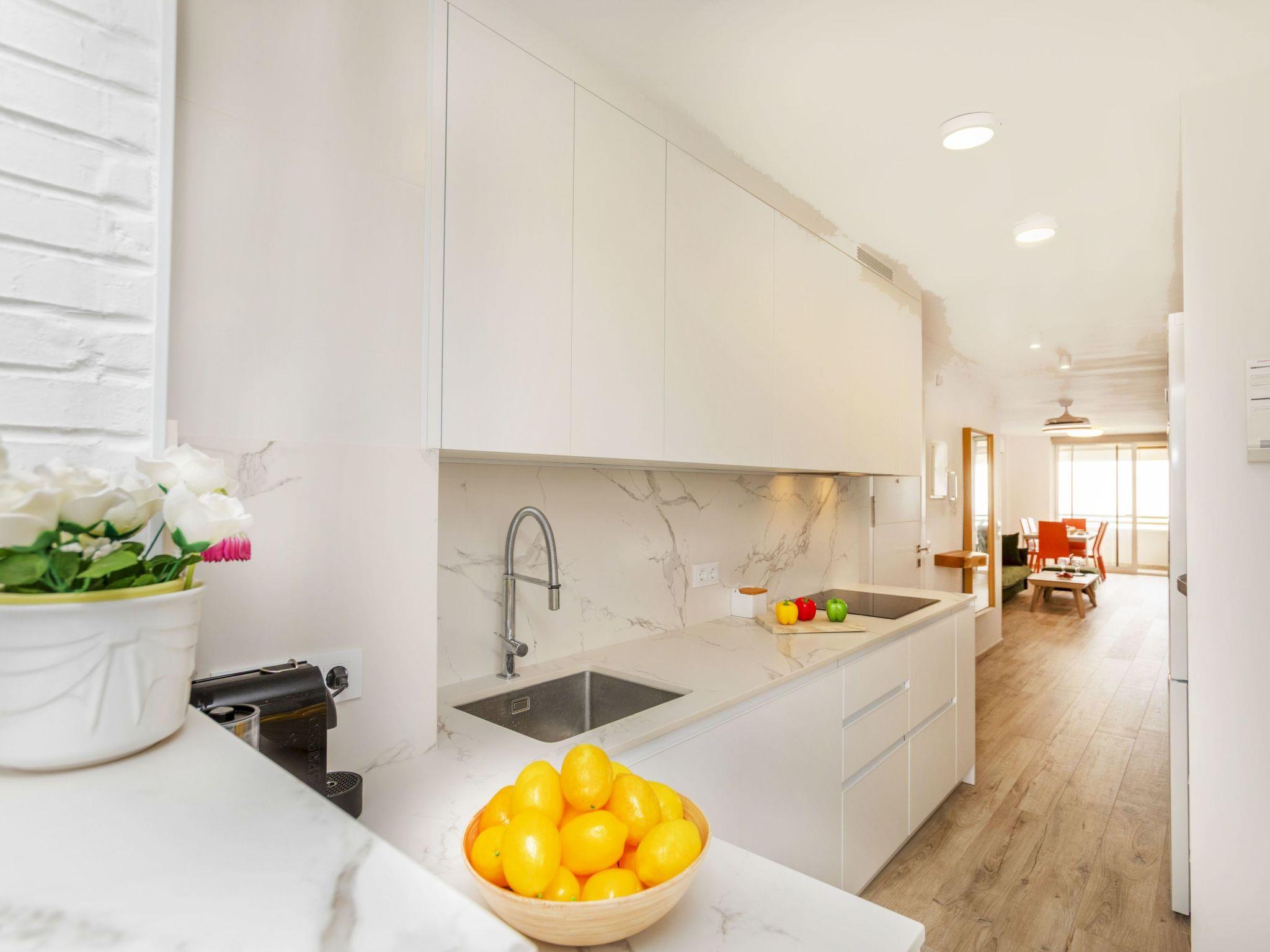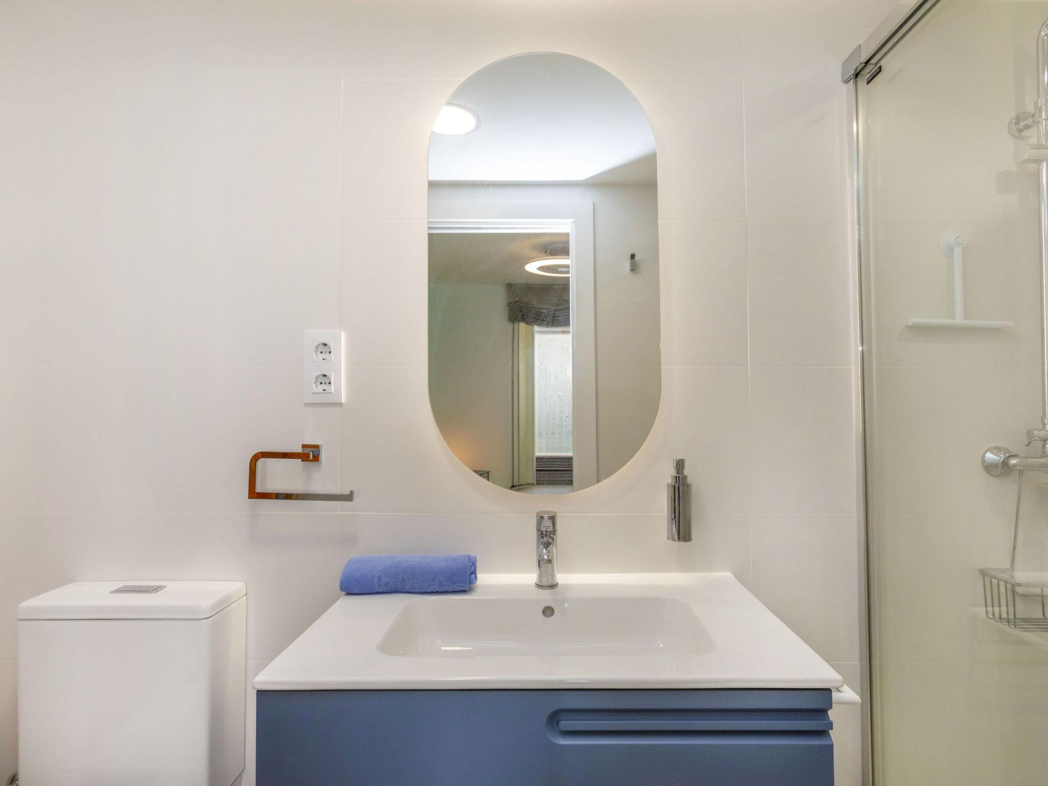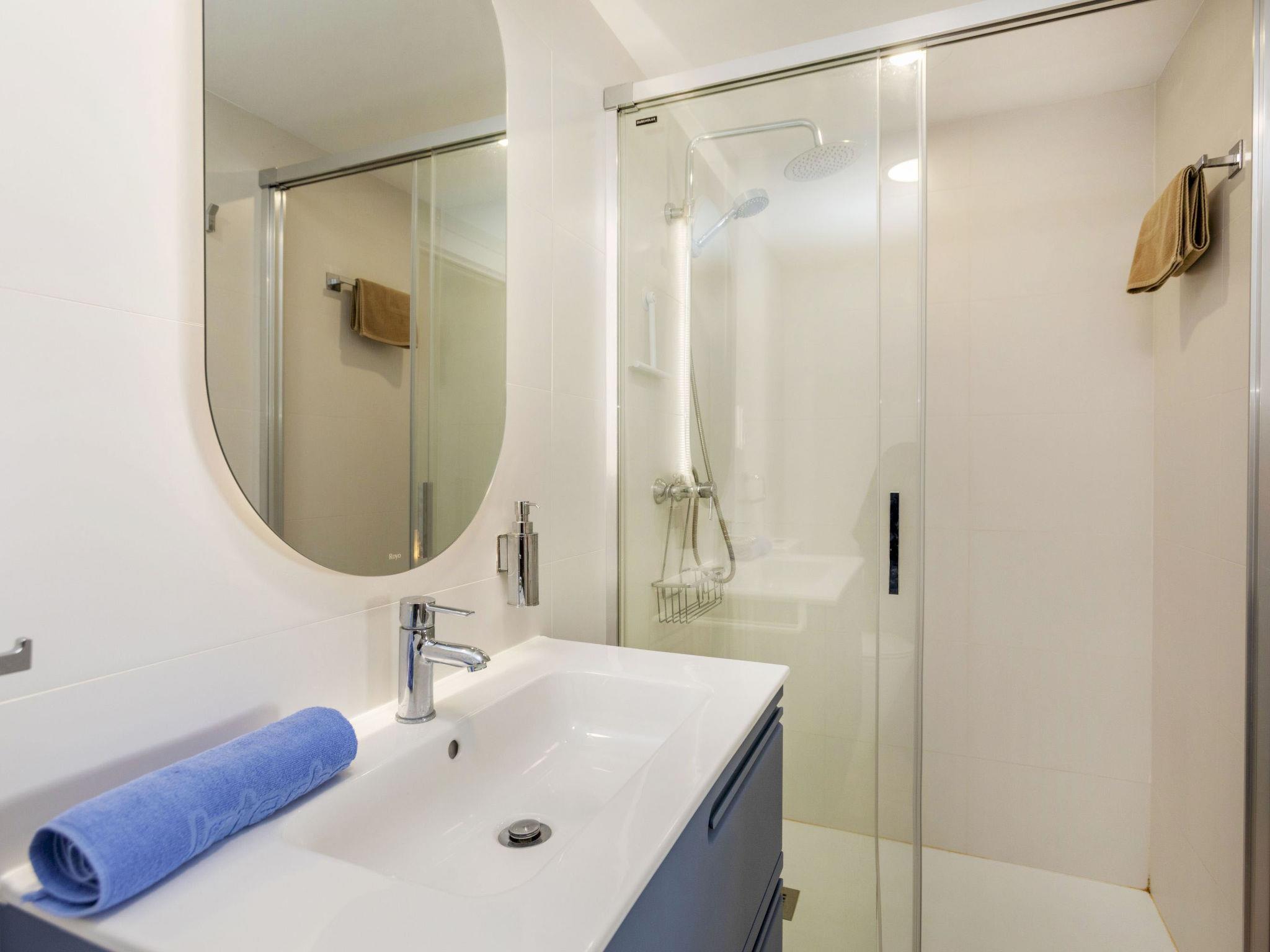 "Los Delfines", 3-room apartment 70 m2 on 9th floor. Practical and comfortable furnishings: living/dining room with digital TV and air conditioning. Exit to the terrace. 1 room with 1 french bed (150 cm, length 190 cm), shower/WC, digital TV, air conditioning and fan. 1 room with 2 beds (90 cm, length 190 cm), 1 wall-trunk bed (140 cm, length 190 cm). Kitchen (oven, dishwasher, 3 ceramic glass hob hotplates, toaster, kettle, electric coffee machine). Shower/WC. Air-conditioning, forced-air heating. Terrace. Terrace furniture. Facilities: washing machine, dryer, iron, hair dryer. Internet (WiFi, free). Parking space n s/n no asignada (fenced) at the house. Please note: non-smokers only. HUTT-010989 // Reg. Nr.: ESFCTU00004303200003602900000000000000HUTT-010989-789