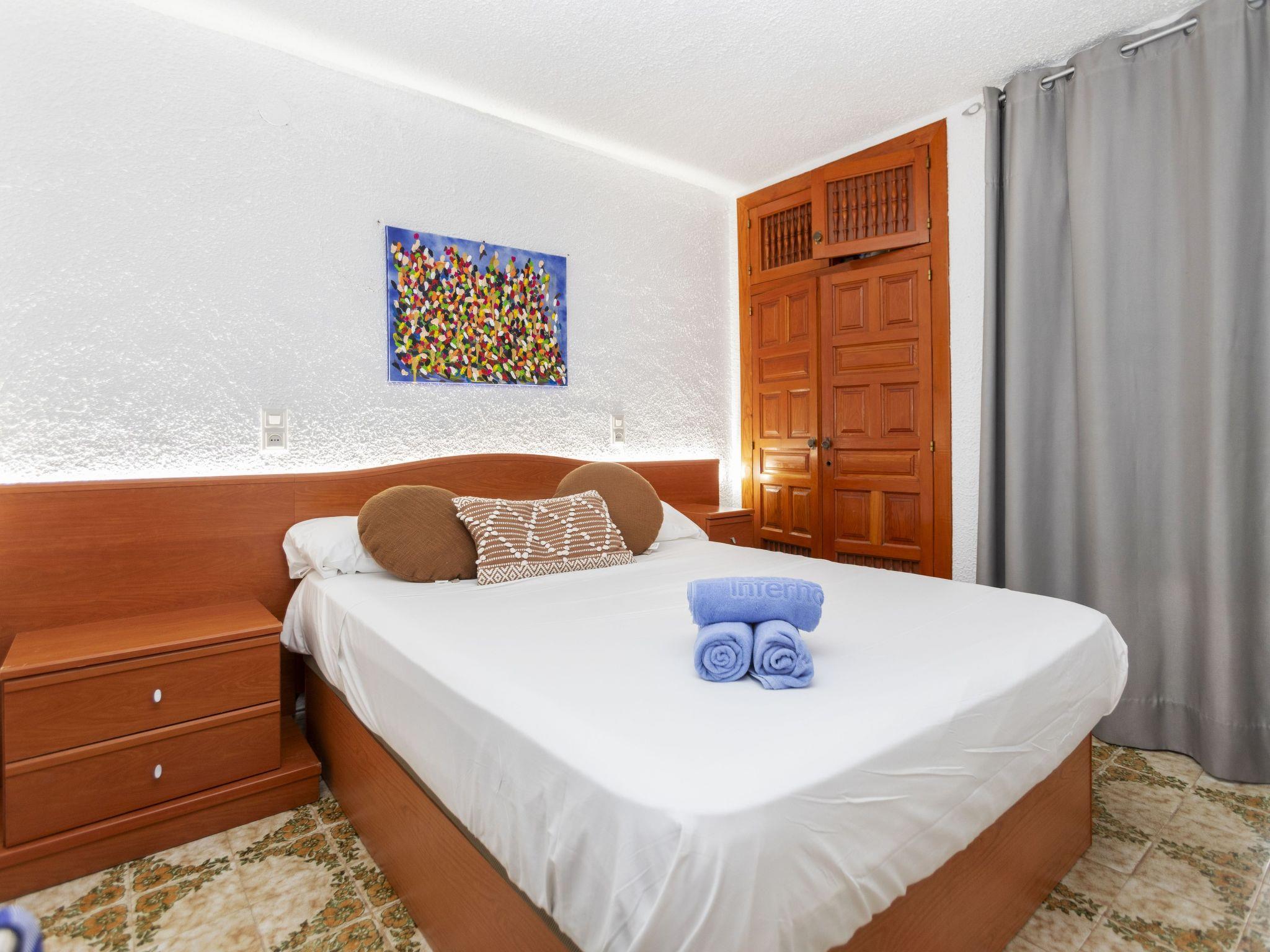 "Miami Palace", 2-room apartment 50 m2, on the lower ground floor. Living/dining room with 1 sofabed (135 cm), dining table, TV and air conditioning. Exit to the terrace. 1 room with 1 french bed (135 cm). Kitchen (oven, dishwasher, 4 ceramic glass hob hotplates, toaster, kettle, microwave, electric coffee machine). Shower/bidet/WC. No heating option. Terrace. Terrace furniture. View of the sea. Facilities: washing machine, iron, children's high chair, baby cot, hair dryer. Parking space n 57. HUTT-068812 // Reg. Nr.: ESFCTU00004303200026914400000000000000000HUTT-0688125