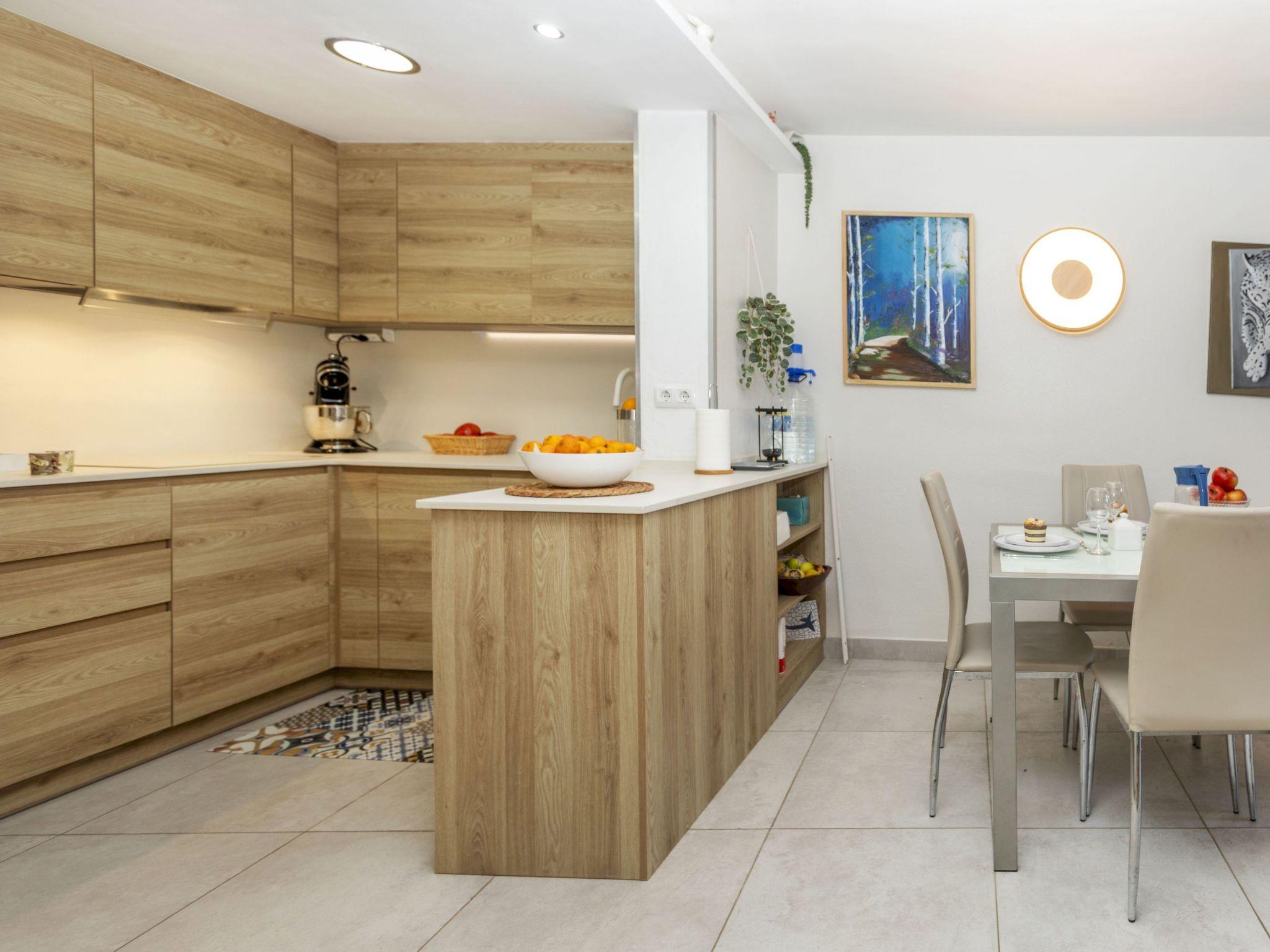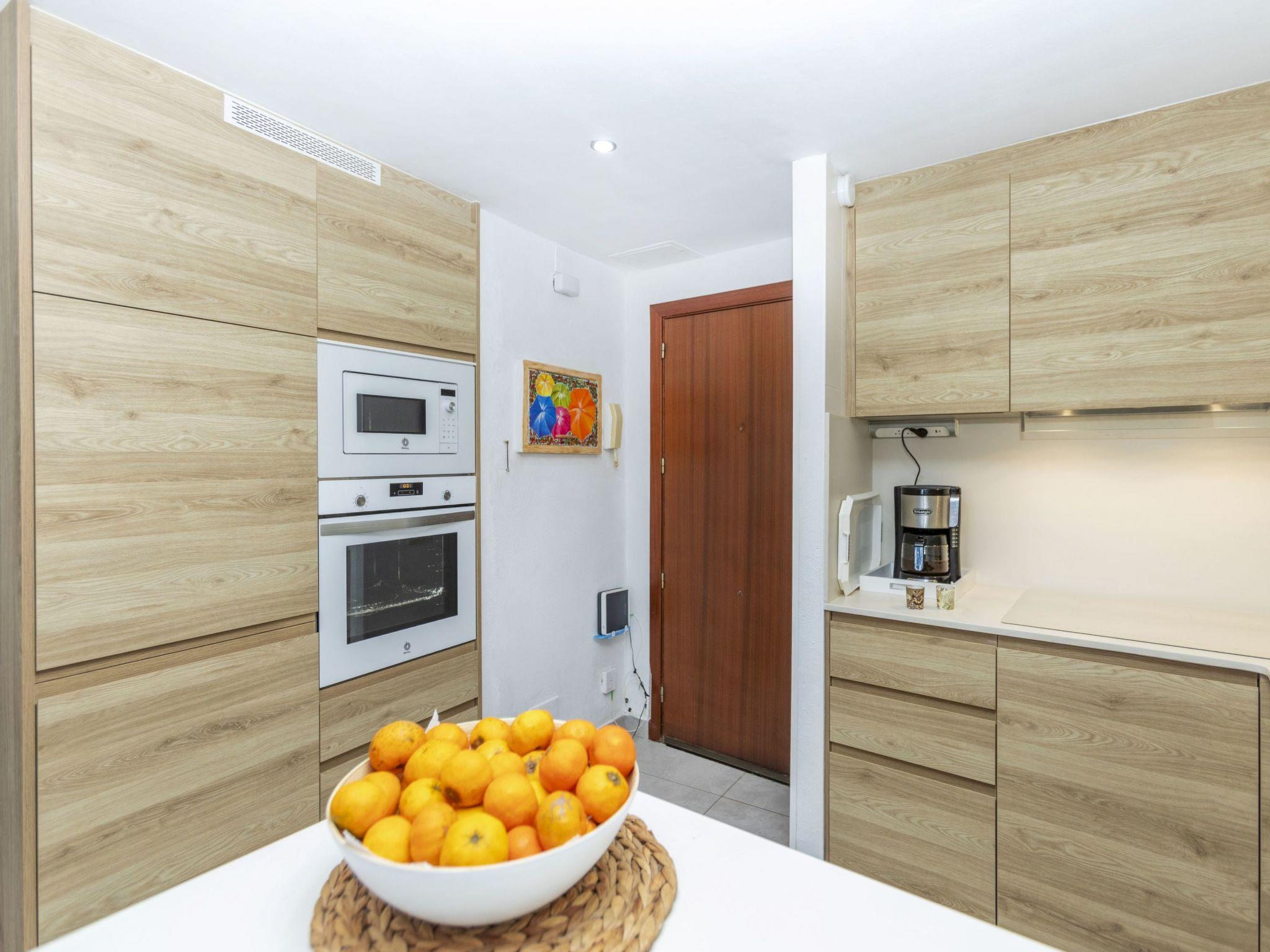 "Los Pelicanos", 3-room apartment 63 m2. Practical and comfortable furnishings: living/dining room with dining table, TV, satellite TV, digital TV, air conditioning and forced-air heating. Exit to the balcony. 1 room with 1 bed (135 cm, length 190 cm), air conditioning and forced-air heating. 1 room with 2 beds (90 cm), fan. Exit to the terrace. Open kitchen (oven, dishwasher, 4 induction hot plates, toaster, kettle, microwave, freezer, electric coffee machine). Shower, sep. WC. Balcony, terrace. Terrace furniture. View of the sea and the swimming pool. Facilities: washing machine, iron, baby cot, hair dryer. Internet (WiFi, free). Please note: non-smokers only. HUTT-0921679 // Reg. Nr.: ESFCTU000043032000060659000000000000000HUTT-009216794