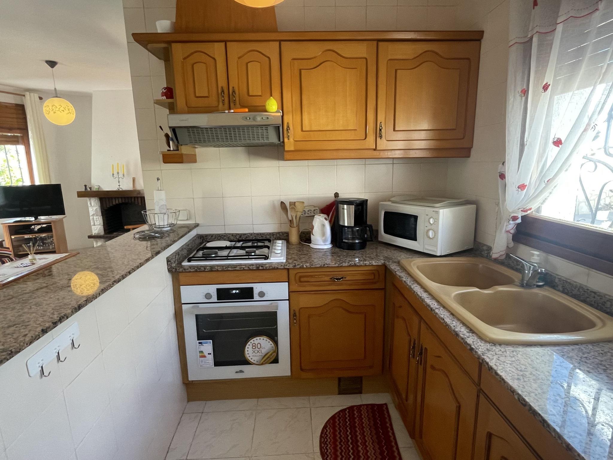 "Zaragoza", 3-room house 66 m2. Bright, practical furnishings: living/dining room with open-hearth fireplace, dining table, satellite TV and DVD. Exit to the terrace. 1 room with 2 beds (90 cm, length 190 cm). 1 room with 1 french bed (135 cm, length 190 cm). Open kitchen (1 hot plate, oven, 3 gas rings, microwave, freezer, electric coffee machine). Bath/WC. No heating option. Terrace roofed. Terrace furniture, barbecue, deck chairs (4). Facilities: washing machine, baby cot (extra). Maximum 1 pet/ dog allowed. HUTT001550